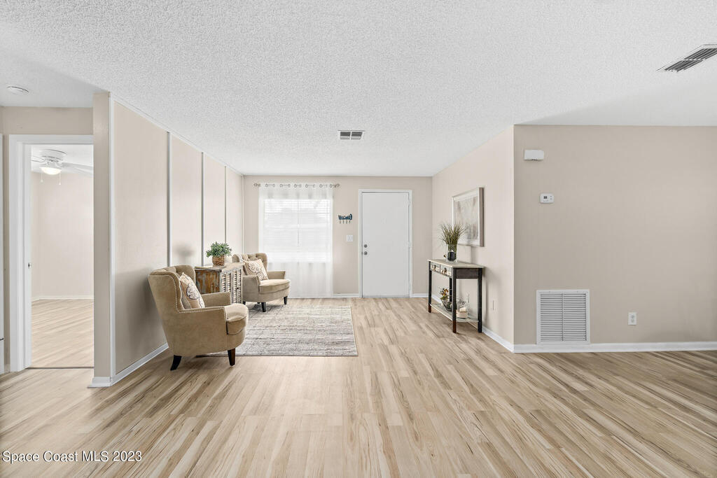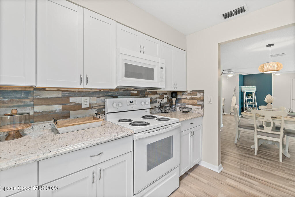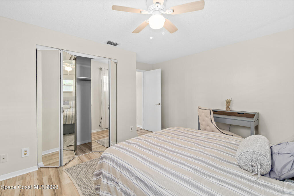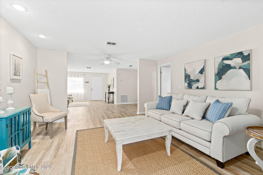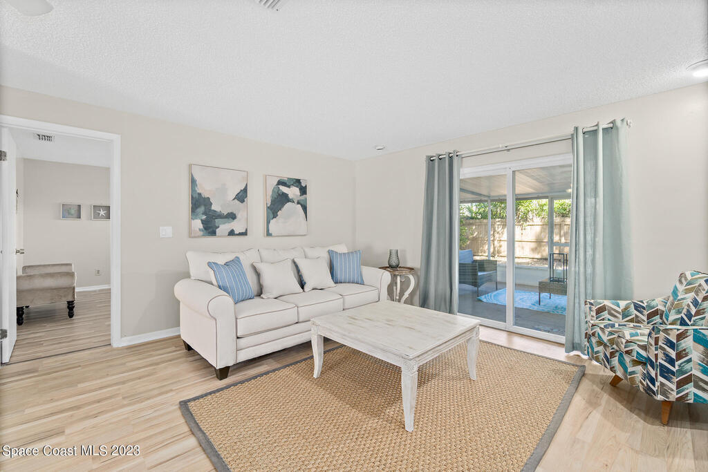 Welcome to your new home-sweet-home in the charming neighborhood of Buckingham at Levitt Park with community park with a playground, jogging trails, picnic areas. Adorable SPLIT PLAN home with a nice Open Floor Plan. Newer Features Include New Laminate Wood Plank Flooring, Kitchen Cabinets & Countertop replaced in the last few years, New Dishwasher,New Vanity in the Master Bathroom and Newer Vanity and Wallpaper in the Guest Bath, Updated Fans, Fixtures, Lighting, Freshly Painted Interior and Exterior, Roof 2022, A/C 2016, Hot Water Heater 2023, Updated Electrical Panel. Spacious 240 Sq Ft Screened Patio overlooking Paver Patio & Mature Trees. Great Location to Restaurants, Shopping, I-95, US HWY 1, 45 Min to Orlando International Airport and 20 Min to Beaches. Can close quickly!