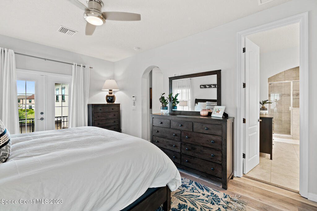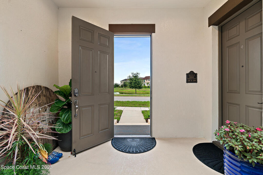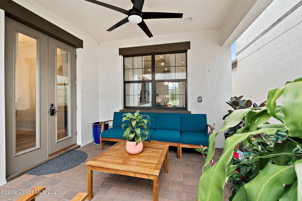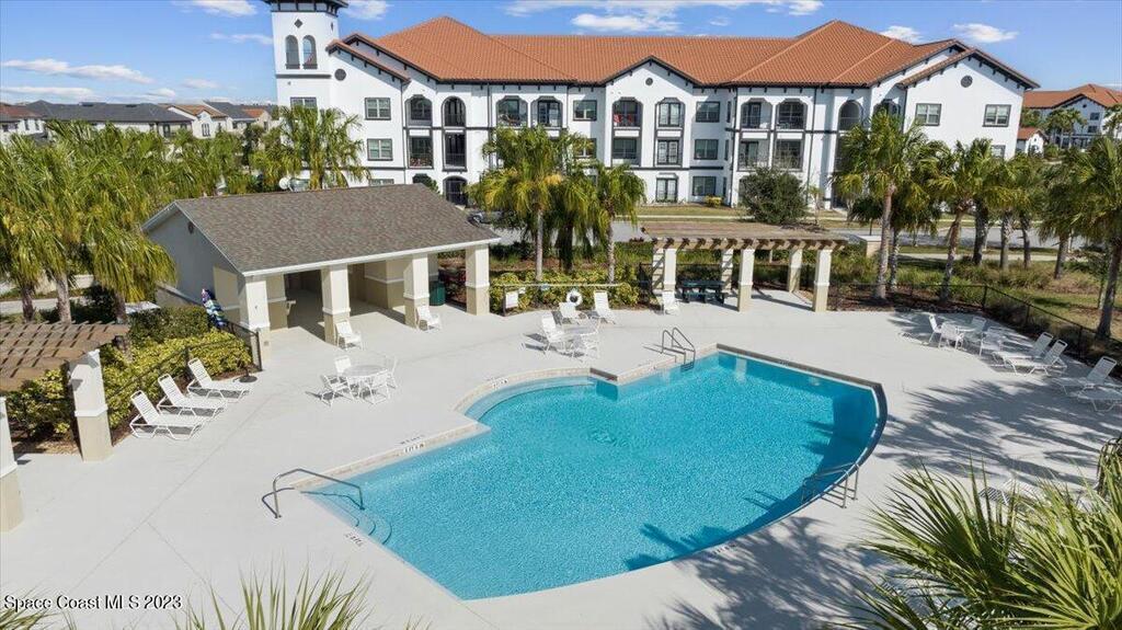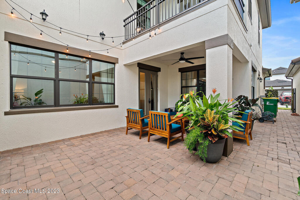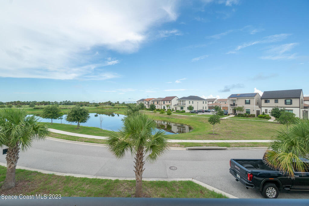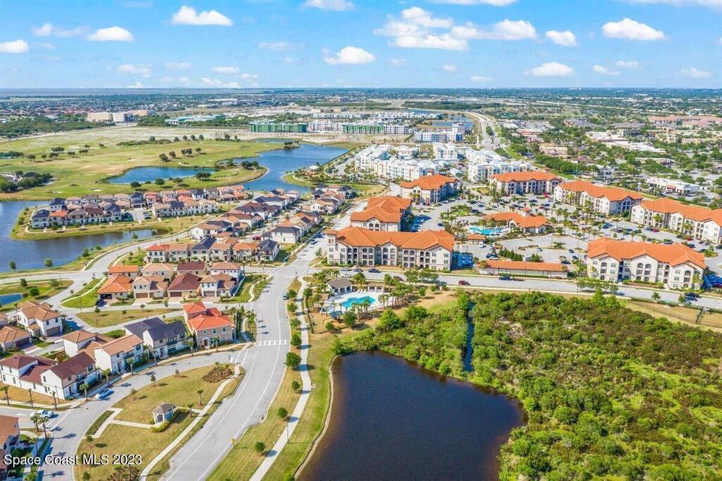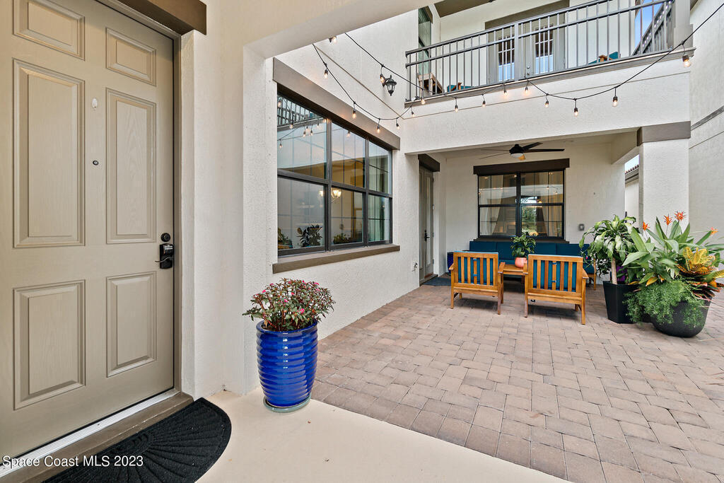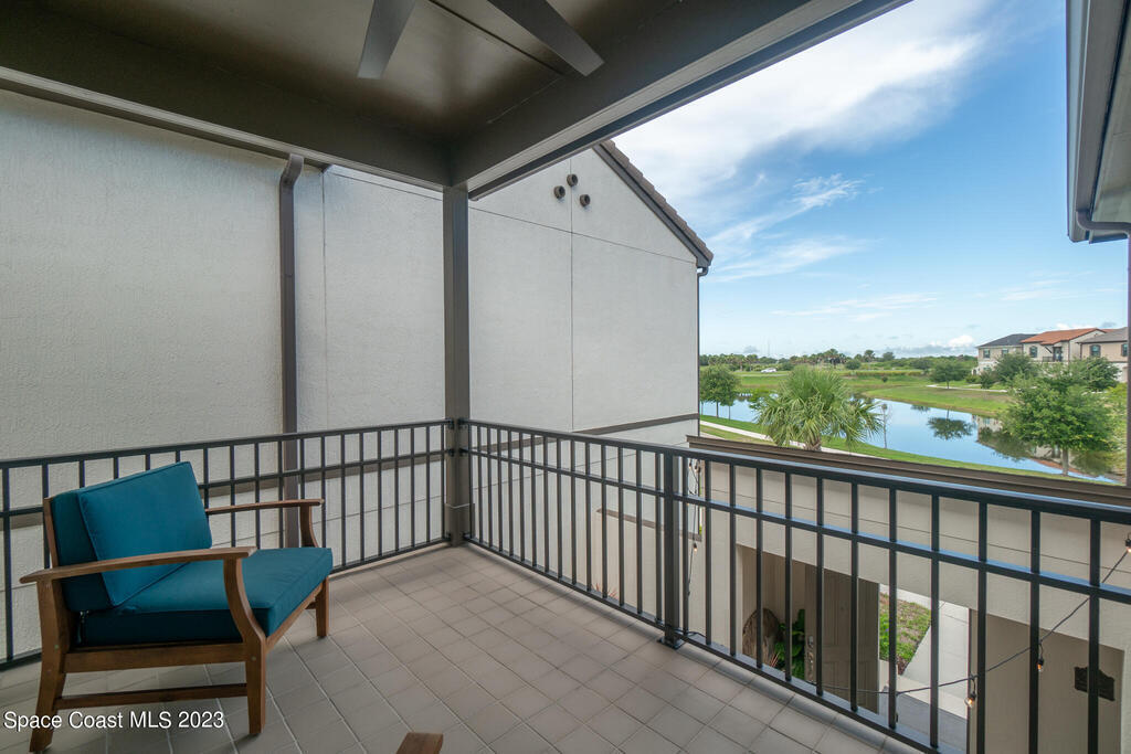 Located within steps to Duran Golf Club and the Avenue sits Arrivas Village a beautiful community of Spanish Colonial architecture homes. It offers its own pool and dog park, a rarity in Viera. This Cabrera floor plan offers breathtaking water & golf course views which become even more stunning while soaking in the sunsets from its two balconies. Upon entry to the expansive courtyard you truly appreciate the private aspect of these homes. Once inside you see how spacious the home is with its large great room & dining room. Beautiful wood look tile runs throughout the first floor. The kitchen even has space for a nook overlooking your courtyard. Laundry, half bath, key drop and a large storage room completes the first floor. Serenity awaits you in the upstairs master suite with its own