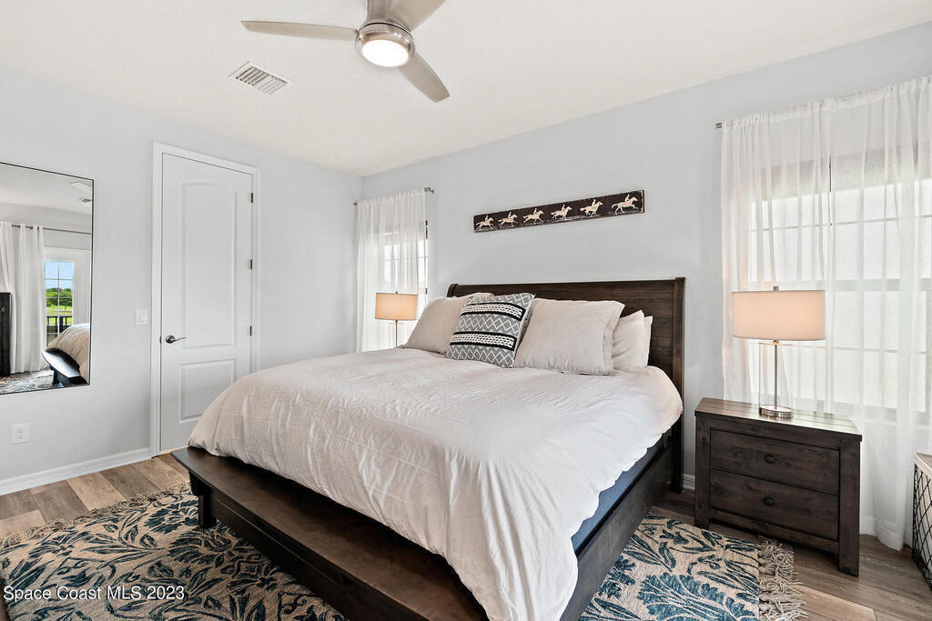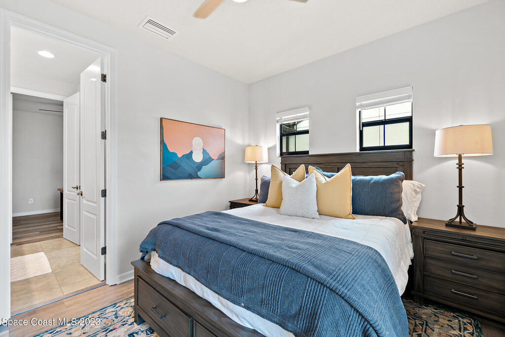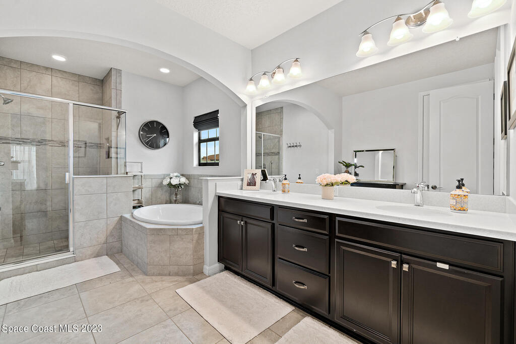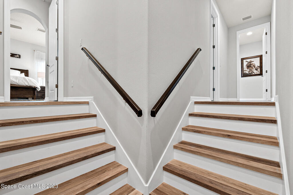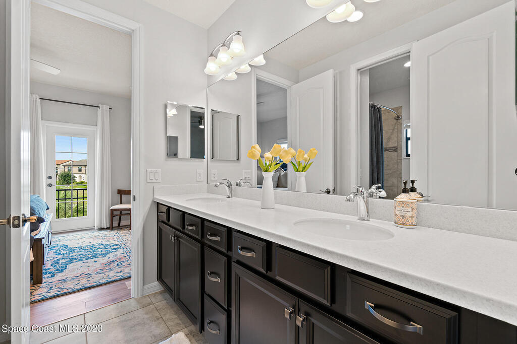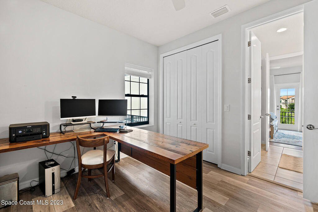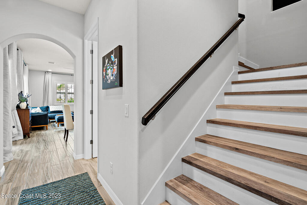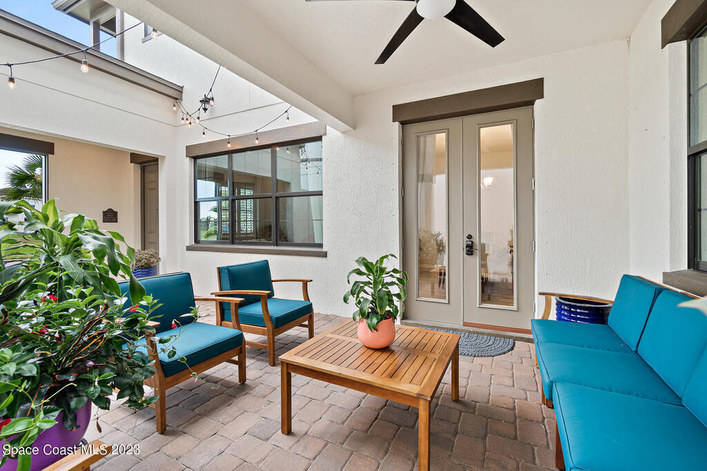 Located within steps to Duran Golf Club and the Avenue sits Arrivas Village a beautiful community of Spanish Colonial architecture homes. It offers its own pool and dog park, a rarity in Viera. This Cabrera floor plan offers breathtaking water & golf course views which become even more stunning while soaking in the sunsets from its two balconies. Upon entry to the expansive courtyard you truly appreciate the private aspect of these homes. Once inside you see how spacious the home is with its large great room & dining room. Beautiful wood look tile runs throughout the first floor. The kitchen even has space for a nook overlooking your courtyard. Laundry, half bath, key drop and a large storage room completes the first floor. Serenity awaits you in the upstairs master suite with its own