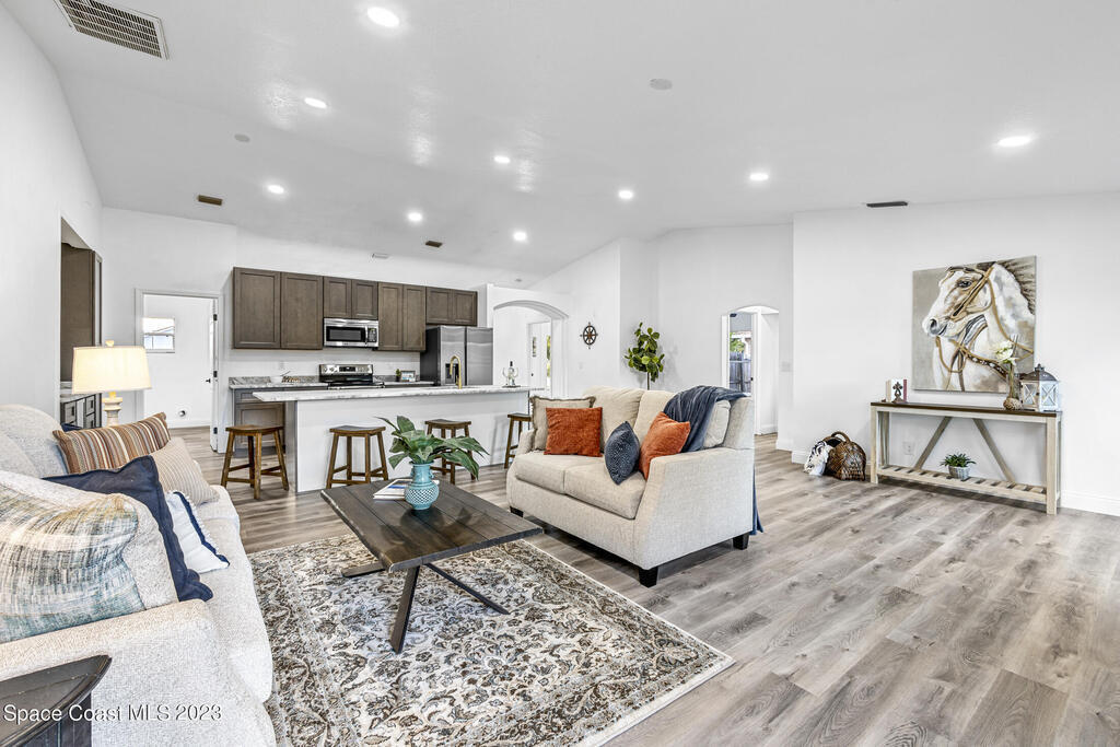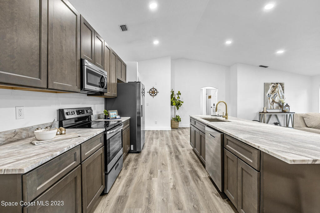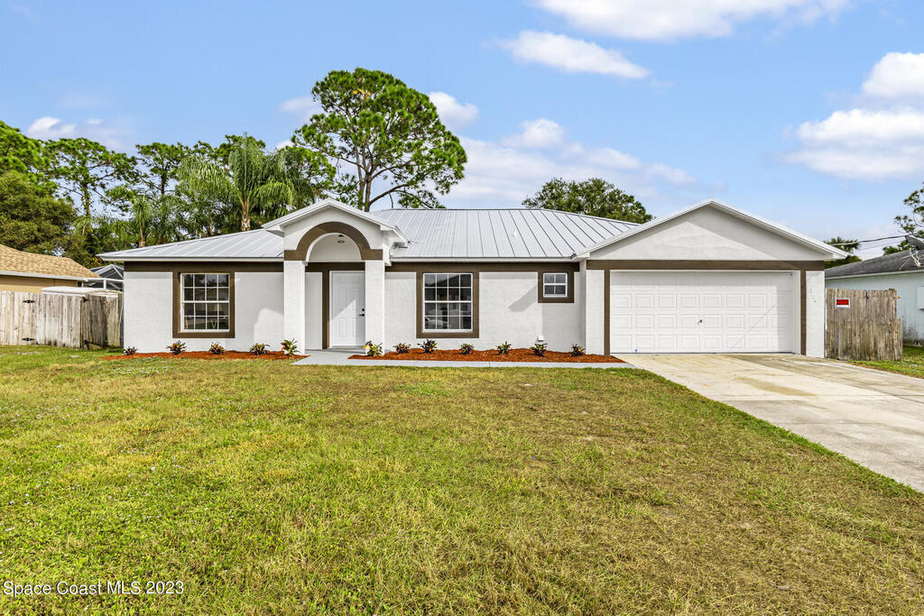 No expense spared on this 4 bed/2 bath/ 2 car garage and 2,000 sqft home. Brand new standing seam Metal Roof with transferable warranty is being installed right now. Brand new 5 ton AC system. Brand new water heater. Light and bright open floor plan, high ceilings and large chefs kitchen with designer finishes; Custom cemento shaker cabinetry, soft close doors and drawers, leather finish granite countertops, and stainless steel appliances. Huge 9 ft island that can accommodate 6 bar stools. Brand new LVP flooring throughout the entire house. No carpet! Renovated bathrooms with custom vanities,granite countertops, new lighting and plumbing fixtures. Large laundry room. Brand new garage door opener and much more.