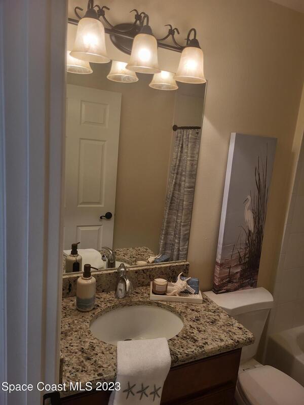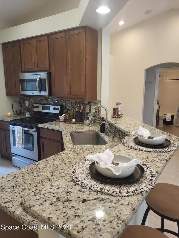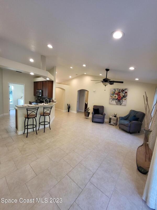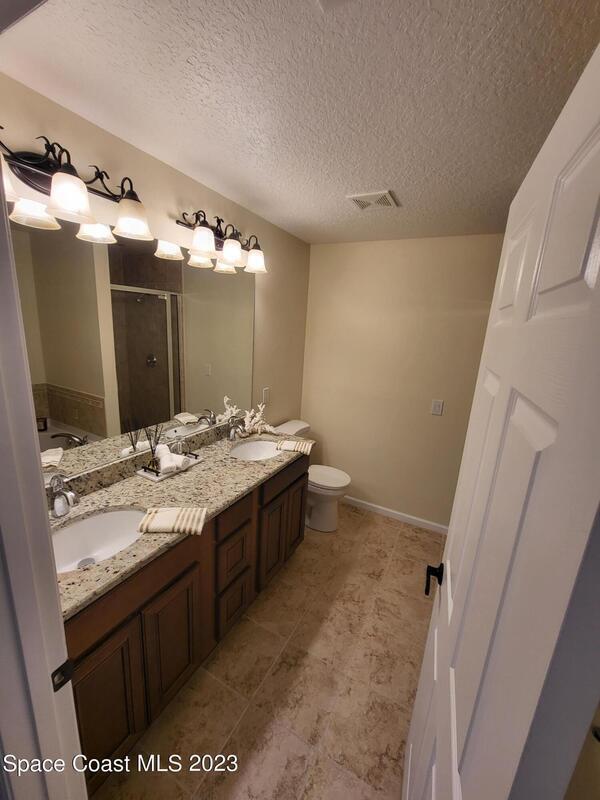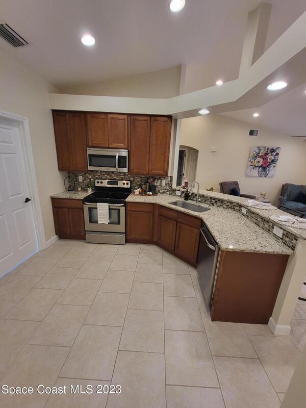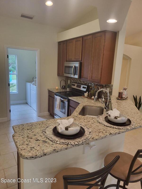 Motivated sellers bring offers! Exceptionally, maintained home with open split floor plan. Home shows like new. Cathedral ceilings. 42'' wood cabinets. Granite counter tops in Kitchen and baths. Home has been freshly painted inside and out. Spacious master bedroom. Master bath has dual sinks and separate soaking tub and shower, new builders not offering these features!. Oversized covered patio, perfect for outdoor entertaining in your spacious backyard. The location is convenient, with proximity to shopping, schools, and even the beaches. Furthermore, Orlando is just under an hour away, making it easy access to airport and visiting theme parks.