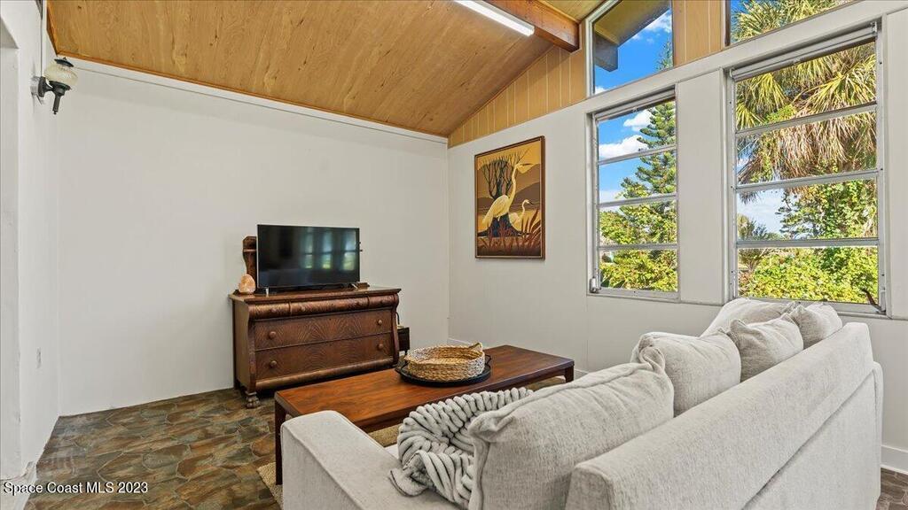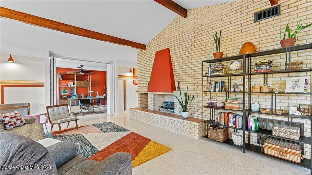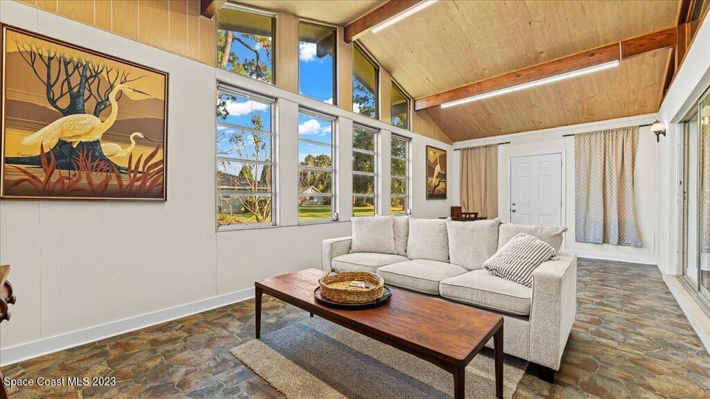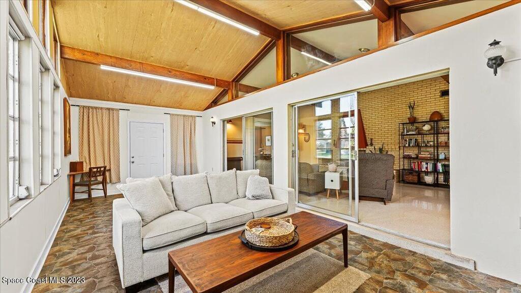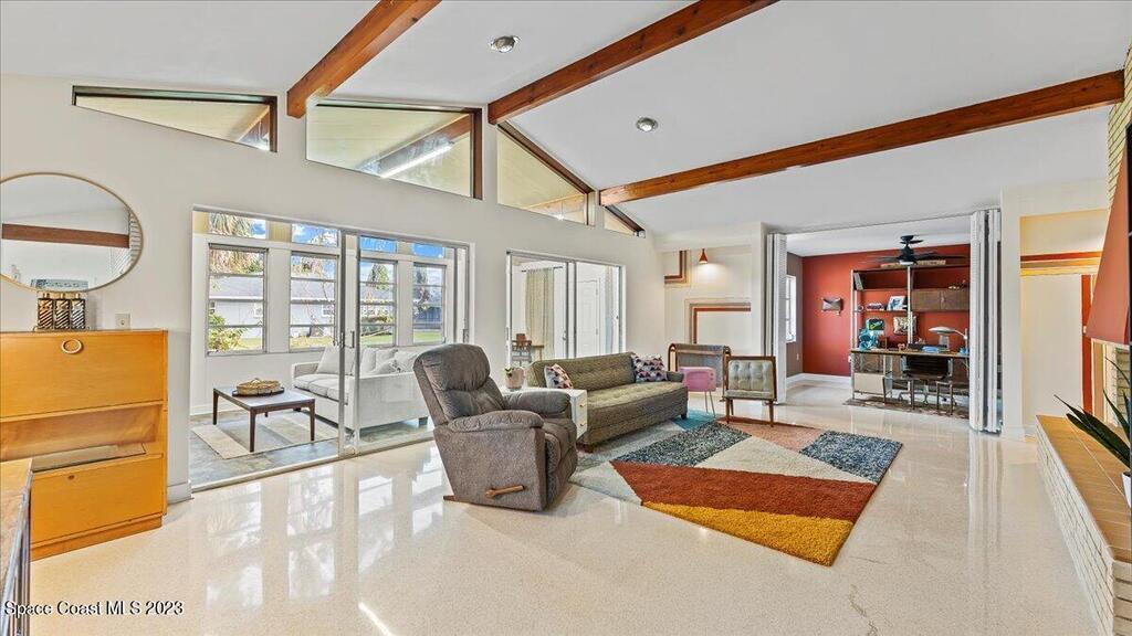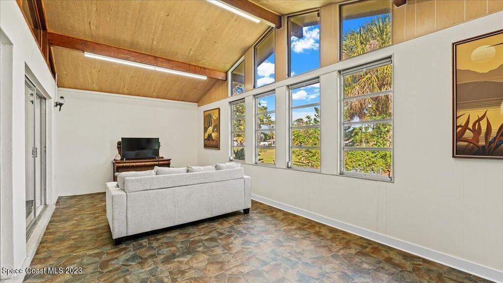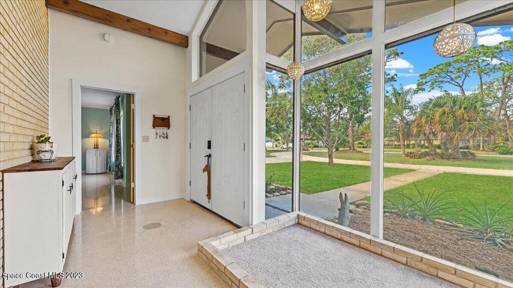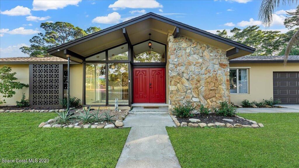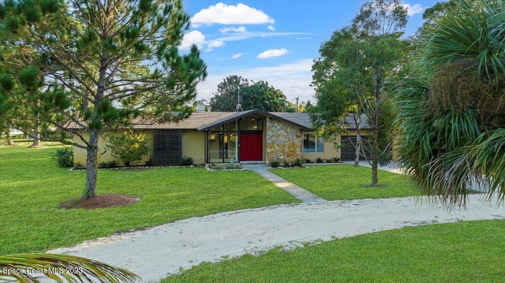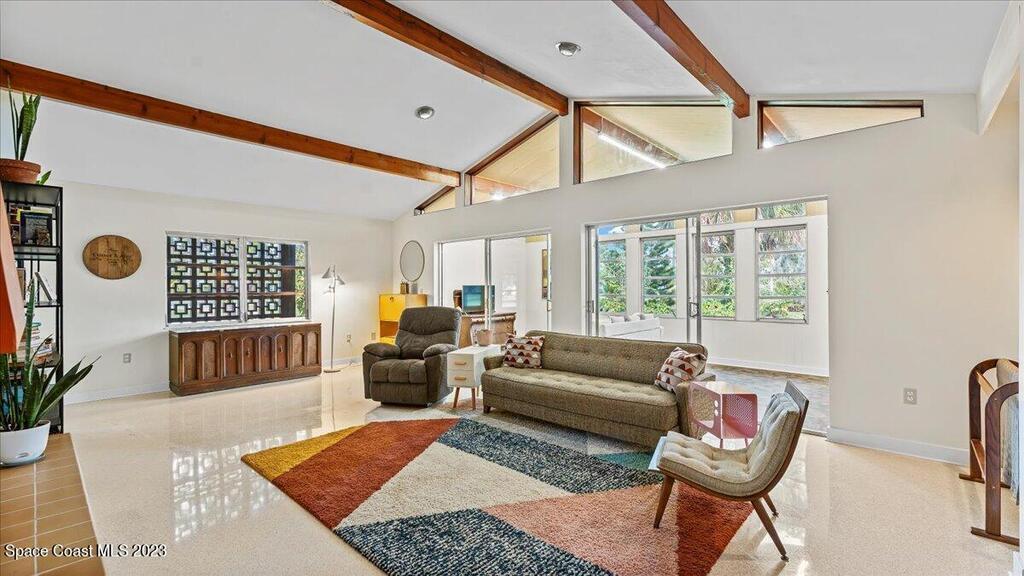 Nothing cookie-cutter about this home and in all the BEST WAYS! This Mid-century property has new condition vibes with all the restoration of the original components. Vaulted ceilings adorn the large open spaces. This home has straight lines, sleek structures, and oversized windows that bring the outside in. The restored terrazzo flooring is STUNNING! All new birch doors, casings, and hardware as well as new trim and new paint throughout. Electrical updated also! A/C 2018, new ductwork 2019, attic insulation 2019. Whole house lead abatement and warranty! Don't overlook that this incredibly unique home sits on over an acre and has a beautiful screened in porch overlooking the pool. You also have access to the community ramp on Indian River