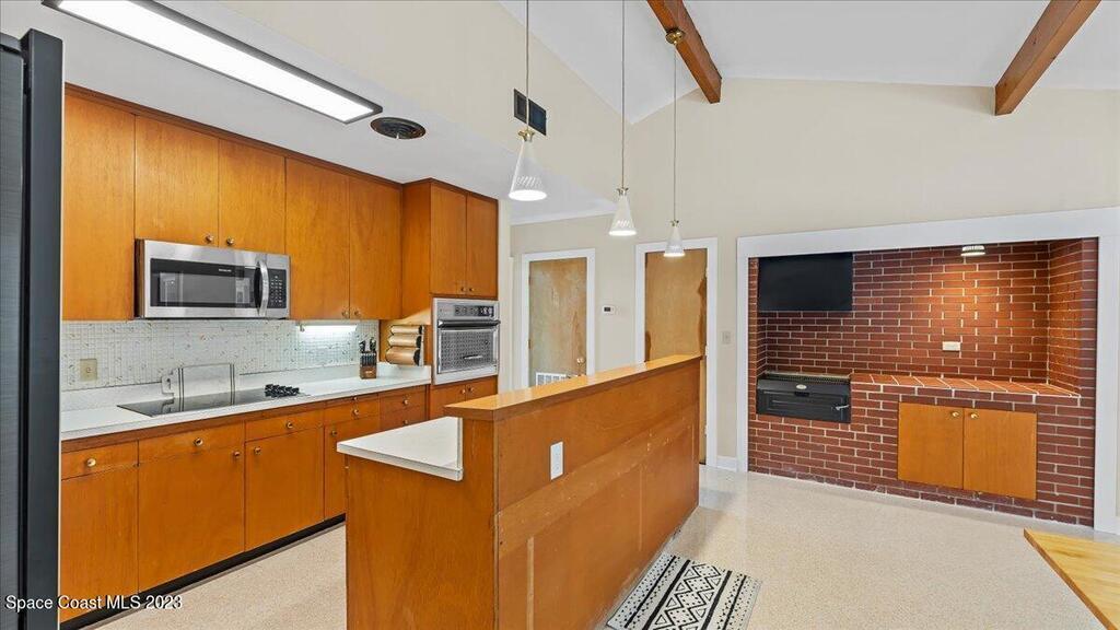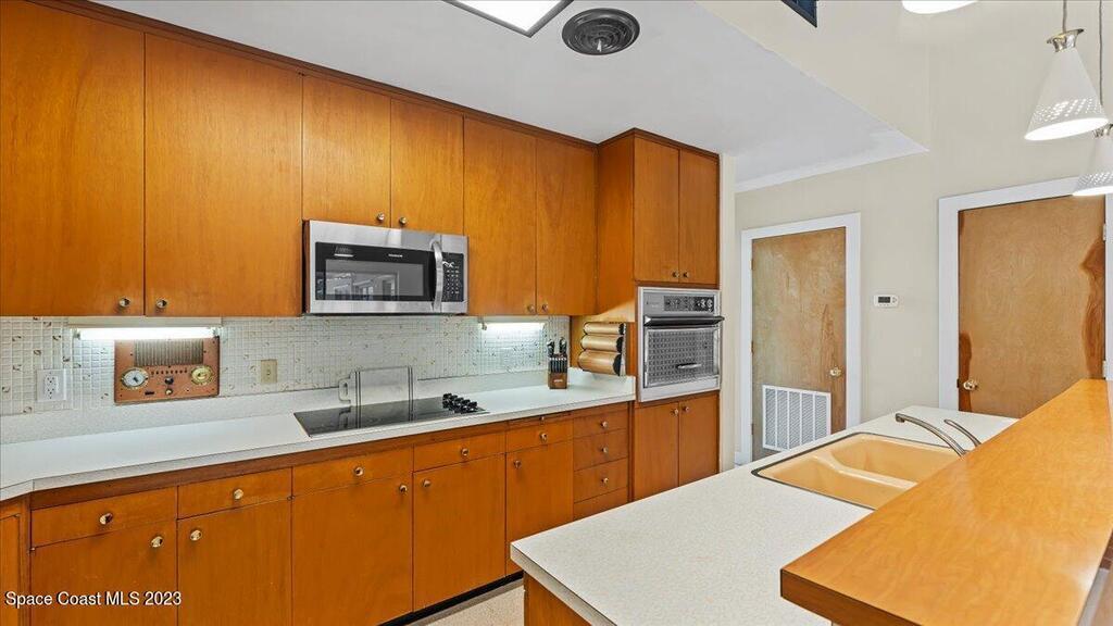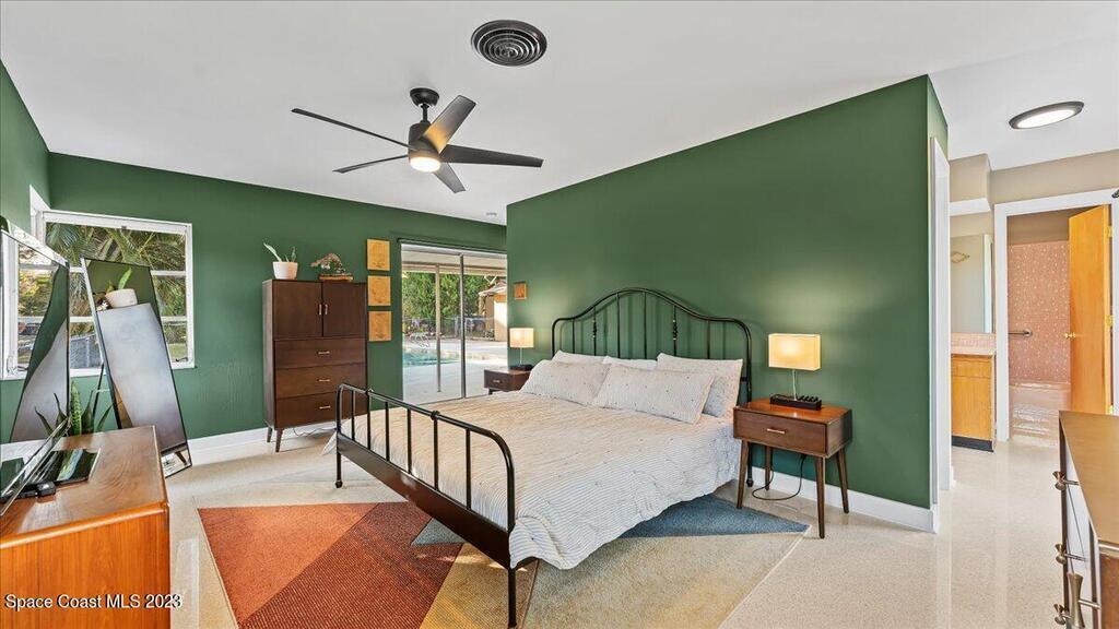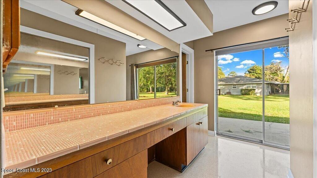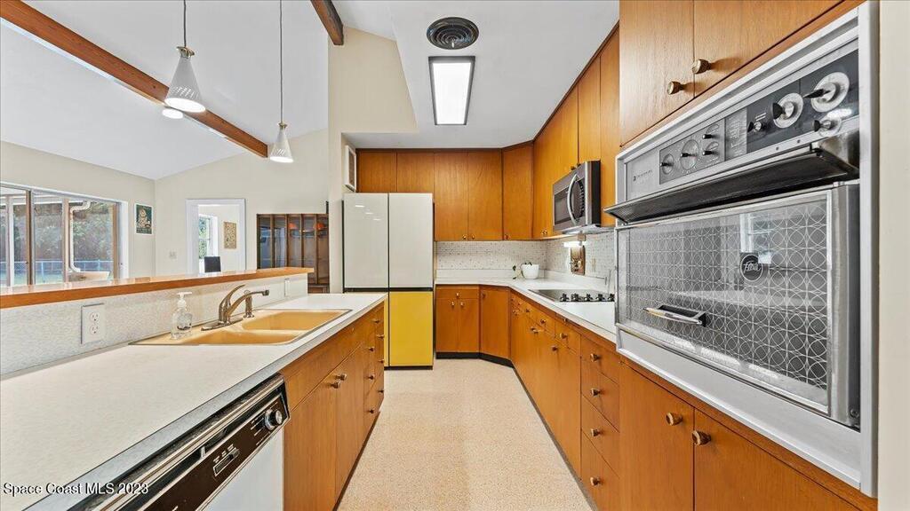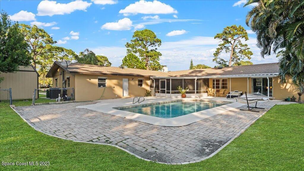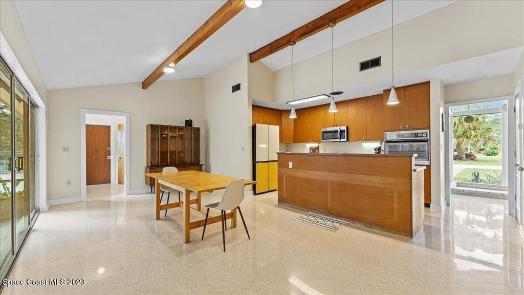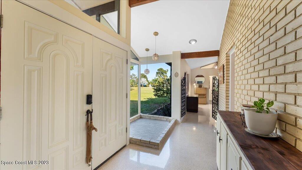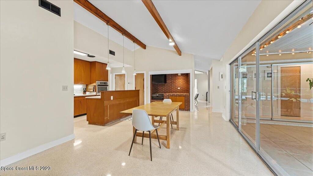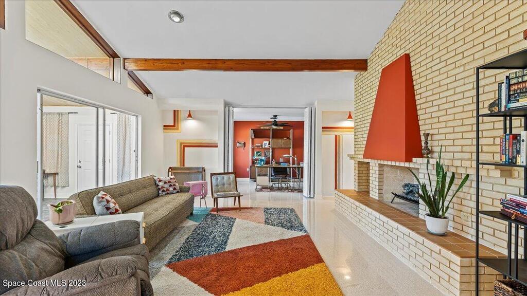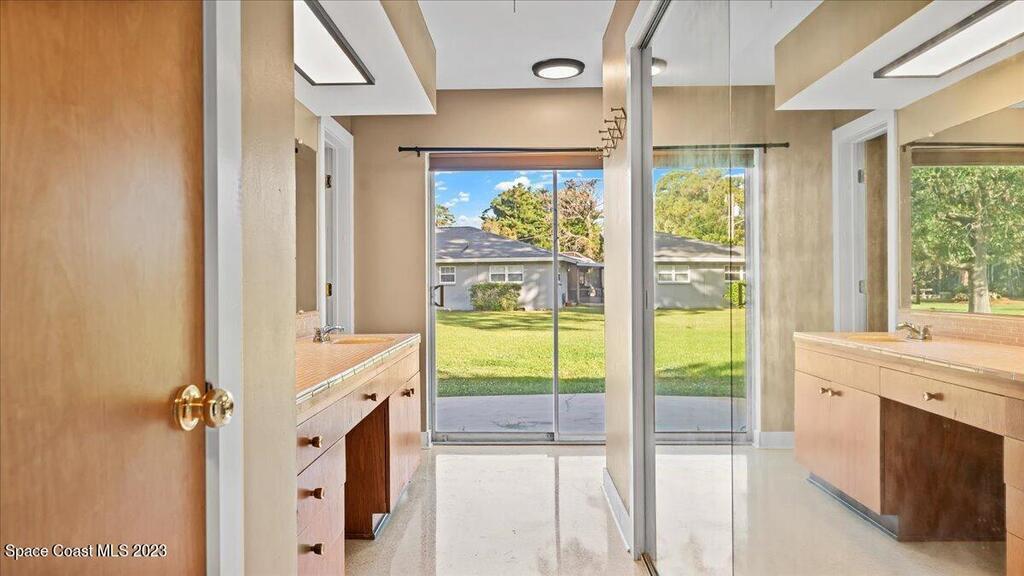 Nothing cookie-cutter about this home and in all the BEST WAYS! This Mid-century property has new condition vibes with all the restoration of the original components. Vaulted ceilings adorn the large open spaces. This home has straight lines, sleek structures, and oversized windows that bring the outside in. The restored terrazzo flooring is STUNNING! All new birch doors, casings, and hardware as well as new trim and new paint throughout. Electrical updated also! A/C 2018, new ductwork 2019, attic insulation 2019. Whole house lead abatement and warranty! Don't overlook that this incredibly unique home sits on over an acre and has a beautiful screened in porch overlooking the pool. You also have access to the community ramp on Indian River