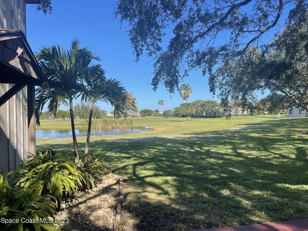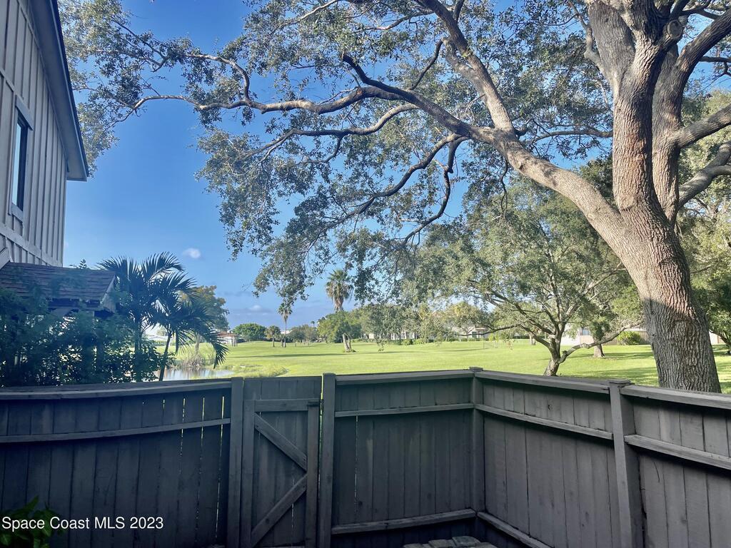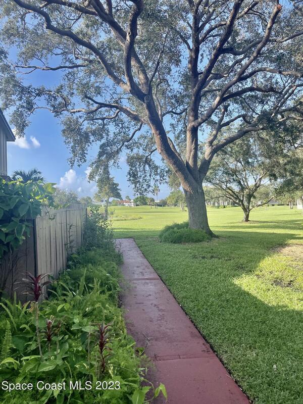 Introducing a hidden gem in the heart of a lush golfing paradise! Nestled on the edge of a pristine fairway, this charming home offers 1 LARGE bedroom with a walk-in closet, 2nd closet and 2 vanities. The location couldn't be more perfect, offering you the best of both worlds - the serenity of nature and the enjoyment of golf, right at your doorstep. Includes a 1 car garage and a large fenced patio where you can enjoy the outdoor breeze and views of the 6th hole. This is your opportunity to create your custom masterpiece in this prime location. Take a swing on the greens (country club & facilities, golf, pool and racket courts are within walking distance) or stroll on down to downtown Cocoa Beach for fine dining, shops, or a relaxing day on the beach. Directly off Minutemen Cswy!