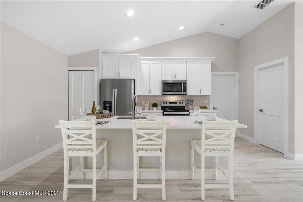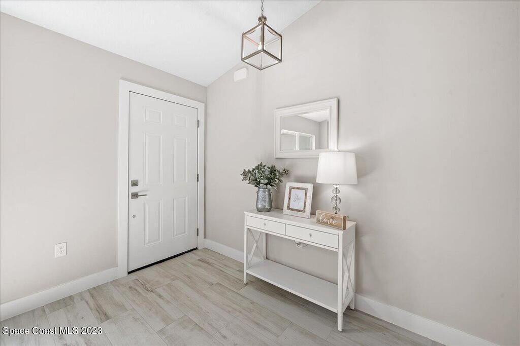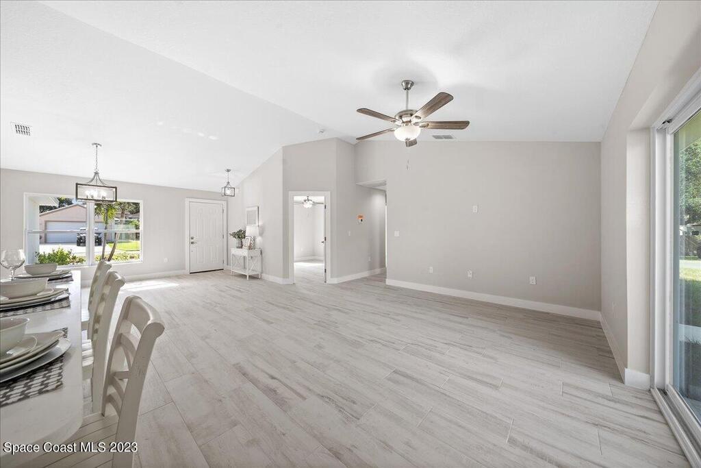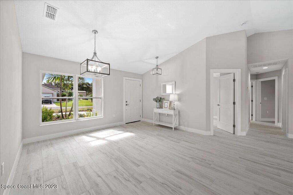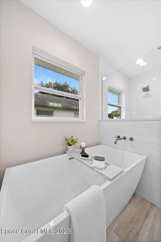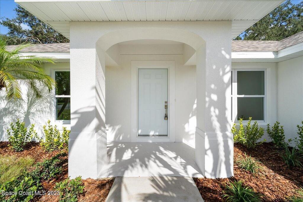 NEW CONSTRUCTION home ready for its first owner!! Come fall in love with this modern, light and bright, open floor plan which details 4-bedrooms, 2-bathrooms and 2 car garage. Builder upgrades include: Impact windows, stainless-steel Whirlpool appliances, quartz countertops, white shaker cabinets with 42'' upper cabinets and plank tile flooring throughout! Owners retreat features a tray ceiling, walk-in closet, dual sink vanity with quartz countertops, freestanding tub and shower with a frameless glass enclosure. Close to everything the Space Coast has to offer! Schedule your showing today!