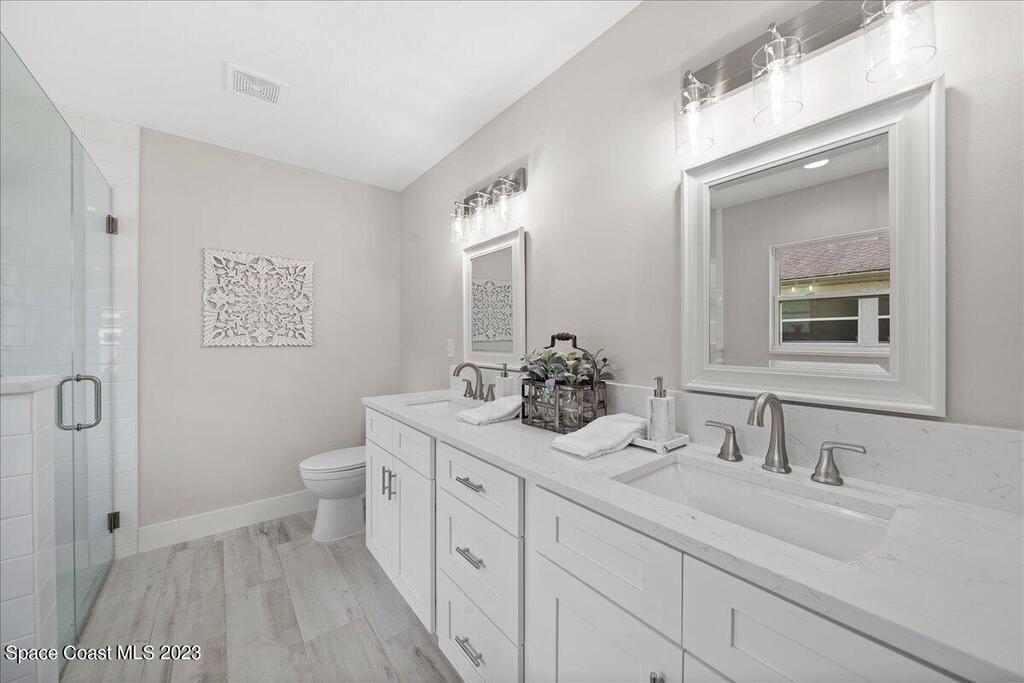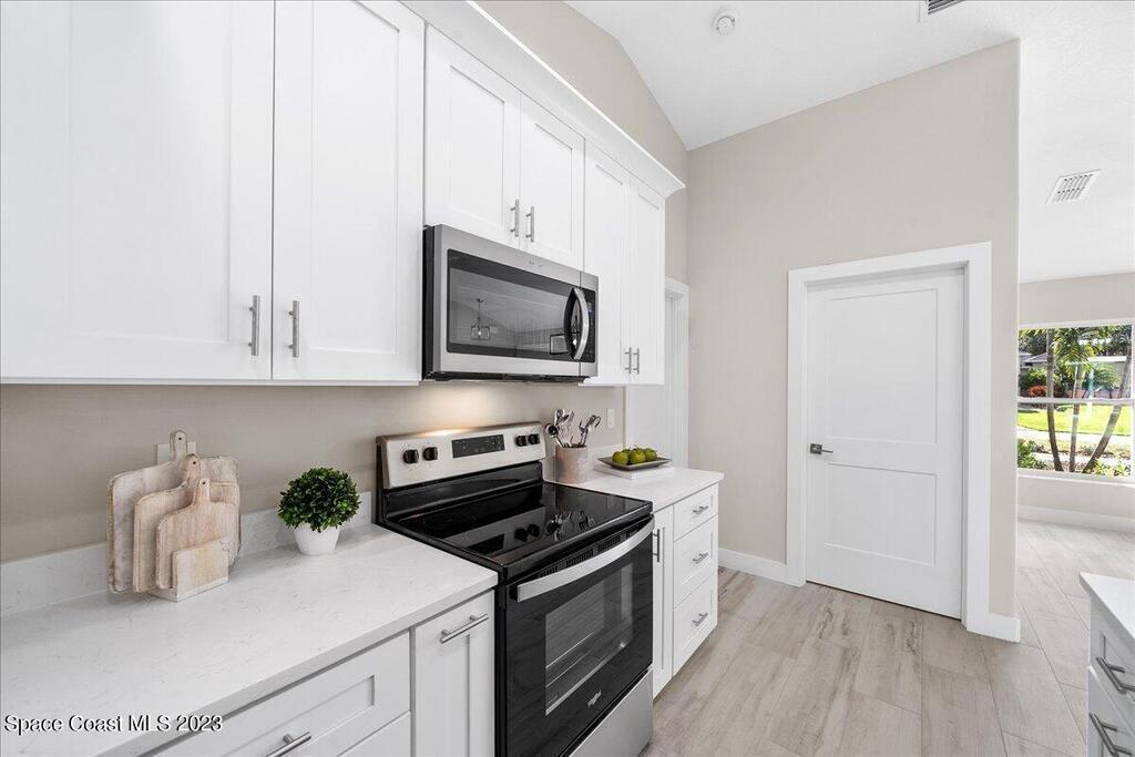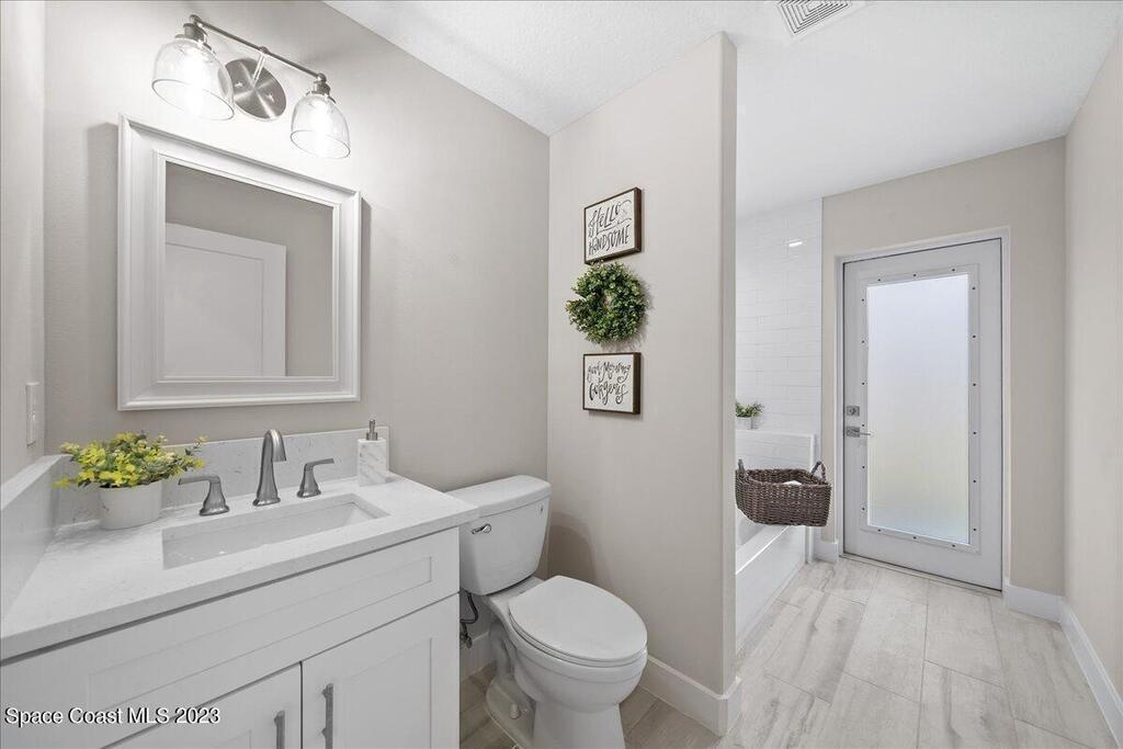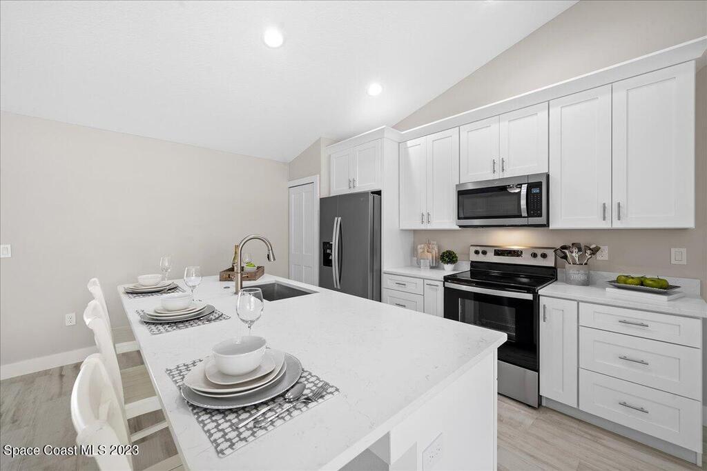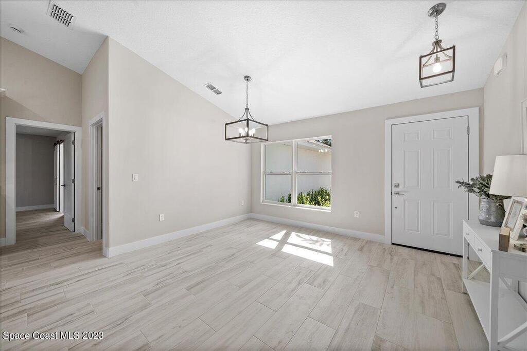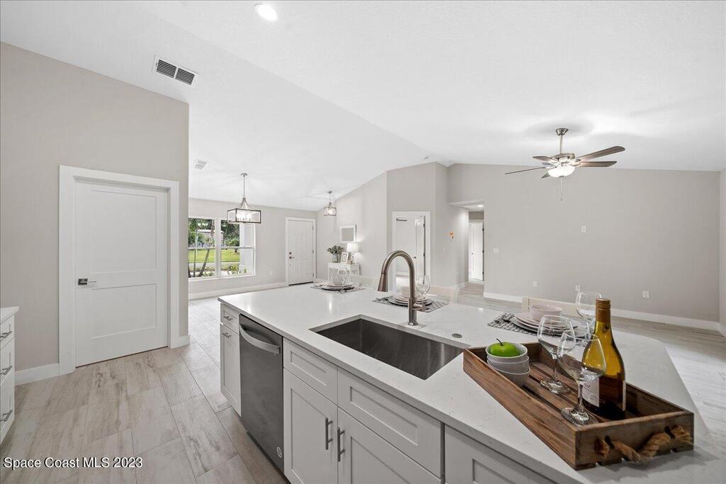 NEW CONSTRUCTION home ready for its first owner!! Come fall in love with this modern, light and bright, open floor plan which details 4-bedrooms, 2-bathrooms and 2 car garage. Builder upgrades include: Impact windows, stainless-steel Whirlpool appliances, quartz countertops, white shaker cabinets with 42'' upper cabinets and plank tile flooring throughout! Owners retreat features a tray ceiling, walk-in closet, dual sink vanity with quartz countertops, freestanding tub and shower with a frameless glass enclosure. Close to everything the Space Coast has to offer! Schedule your showing today!