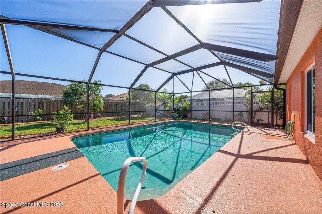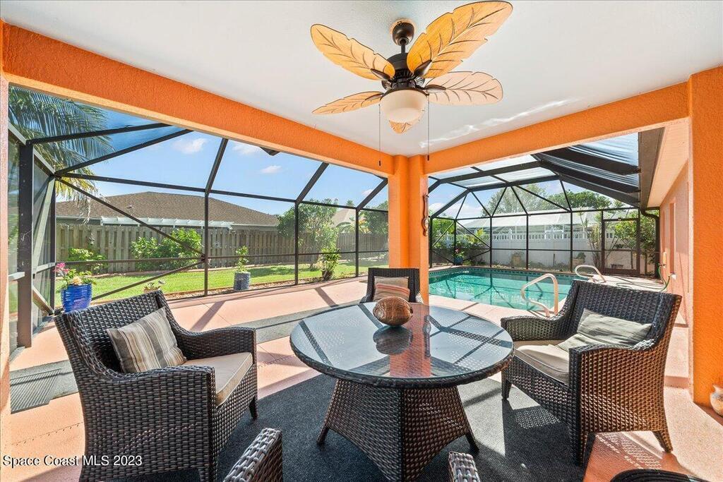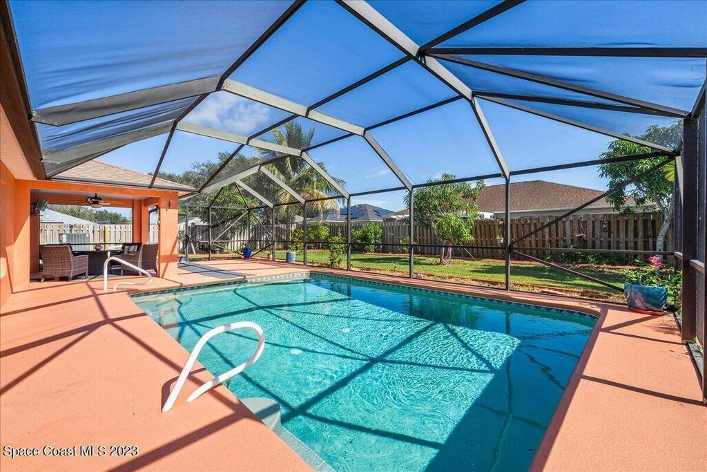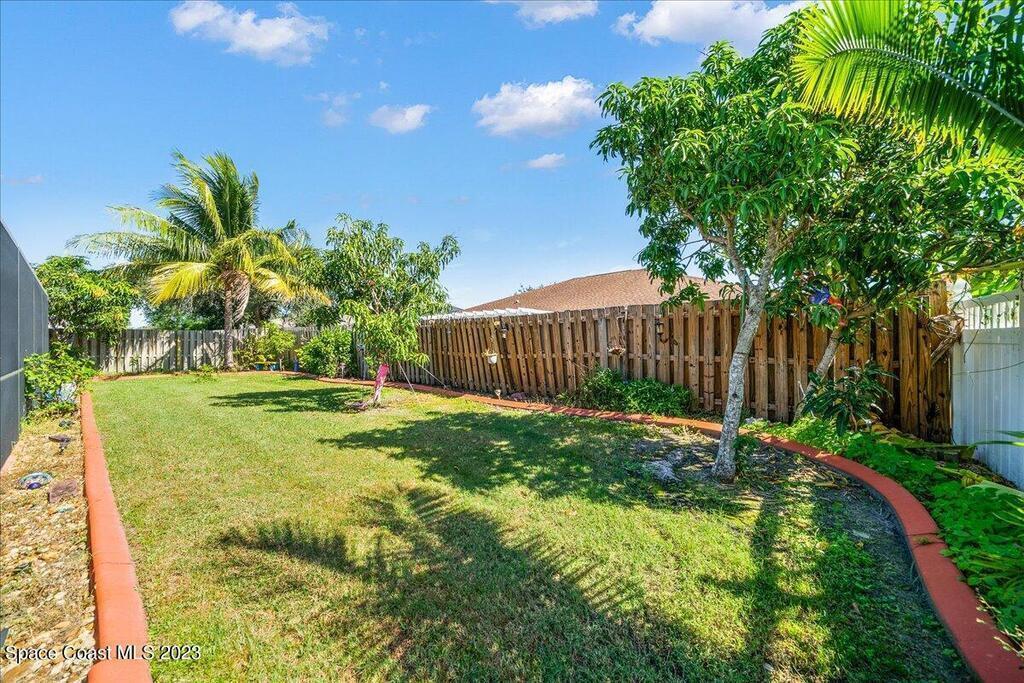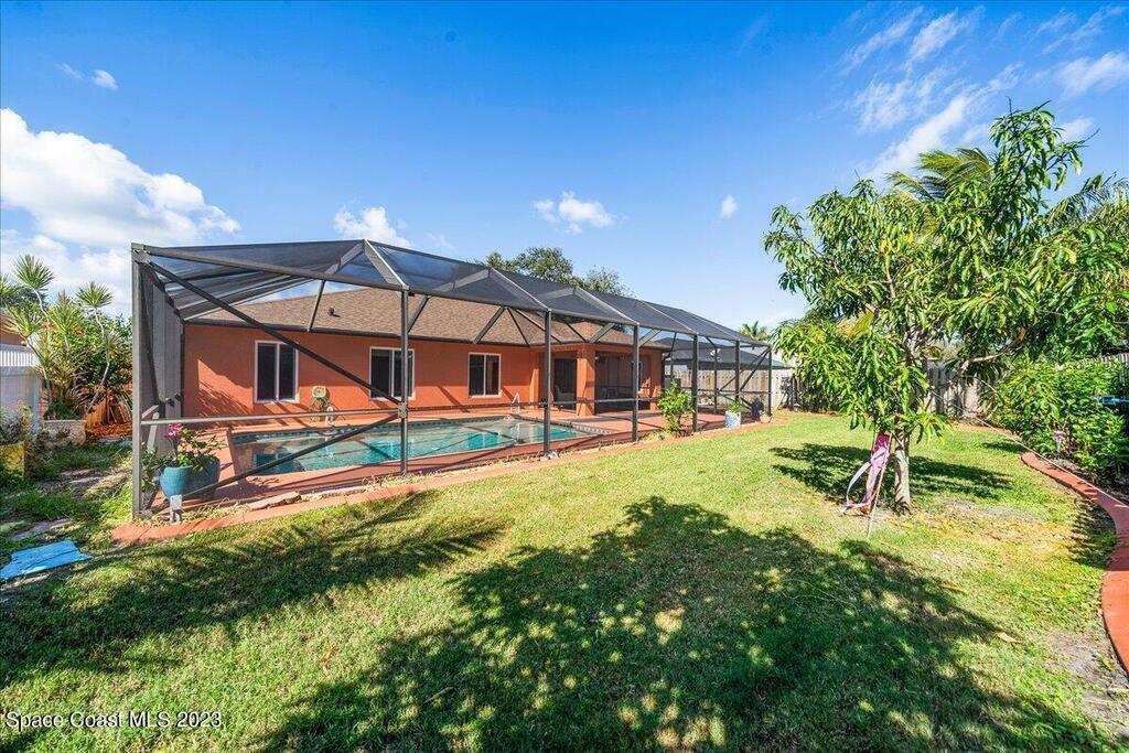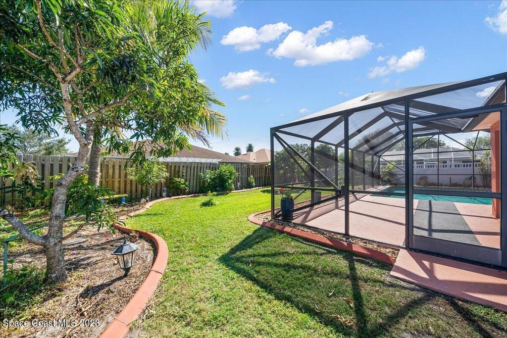 This beautiful 4-bedroom, 2-bathroom home in West Melbourne, Florida was built in 2003 and has been meticulously maintained. It features a spacious layout with plenty of room for everyone to enjoy. The open living area flows seamlessly into a separate dining space, creating a great space for entertaining. Natural light fills the home, creating a warm and inviting atmosphere. With a brand new roof, you can have peace of mind knowing that the home is protected. Outside, you'll find a screened-in pool and patio area, perfect for relaxing and enjoying the Florida weather. The lush tropical garden with fruit trees adds a touch of paradise to the property. With its prime location, this home offers easy access to both Orlando and Cocoa Beach. You'll also appreciate the walkable neighborhood and low-cost HOA. Shopping, dining, schools, and a hospital are all conveniently located nearby.
