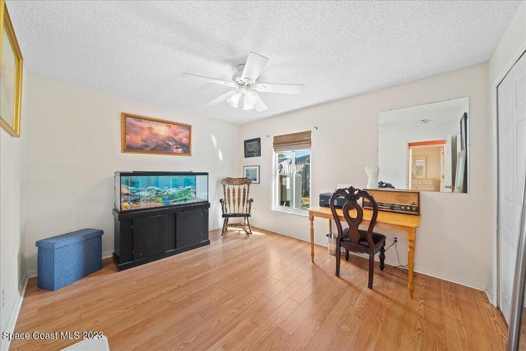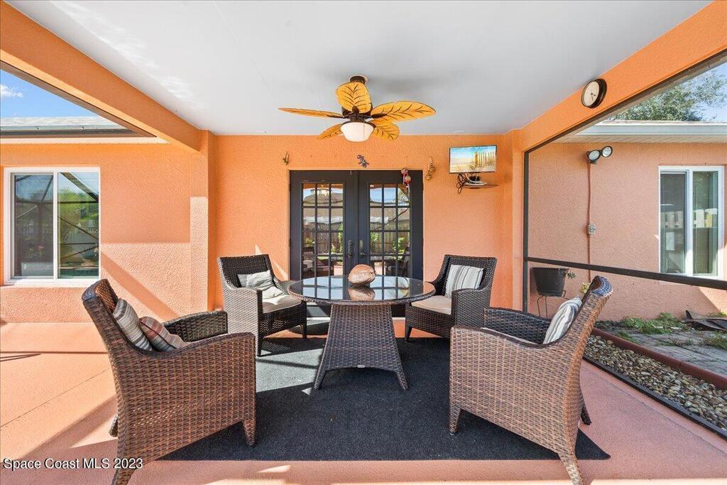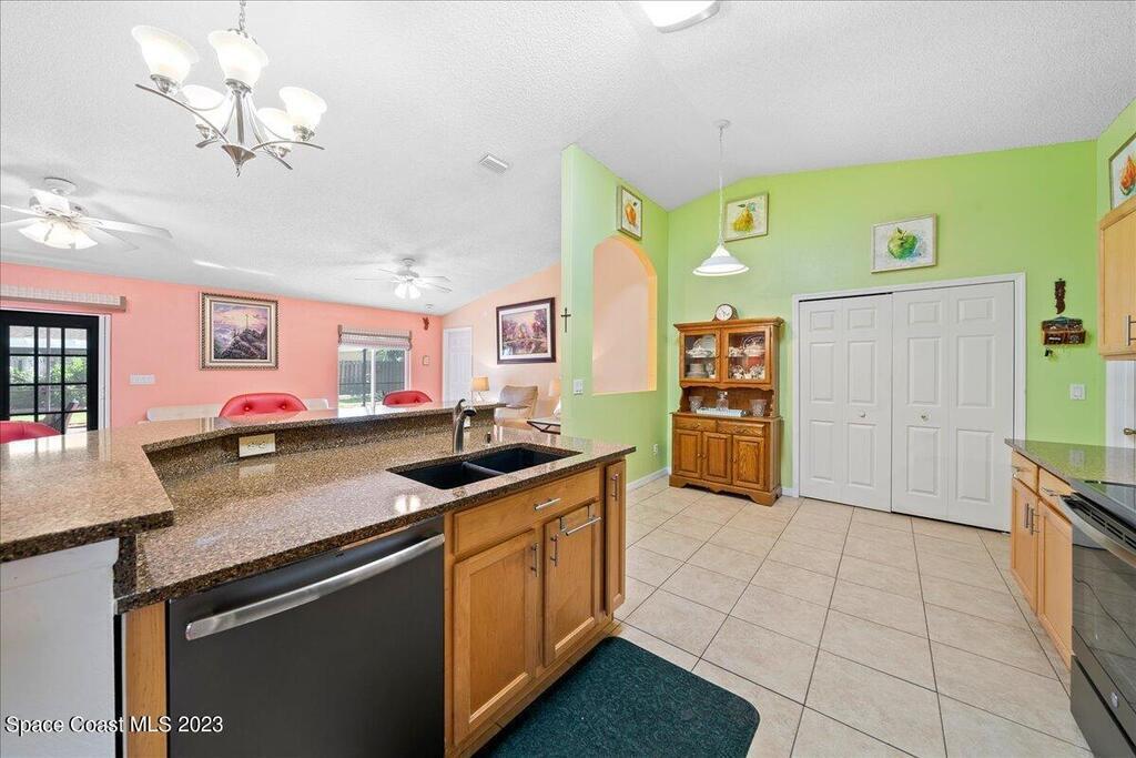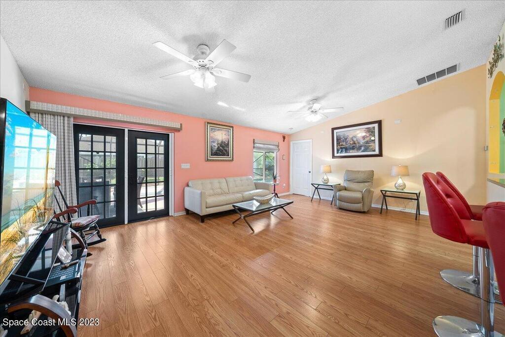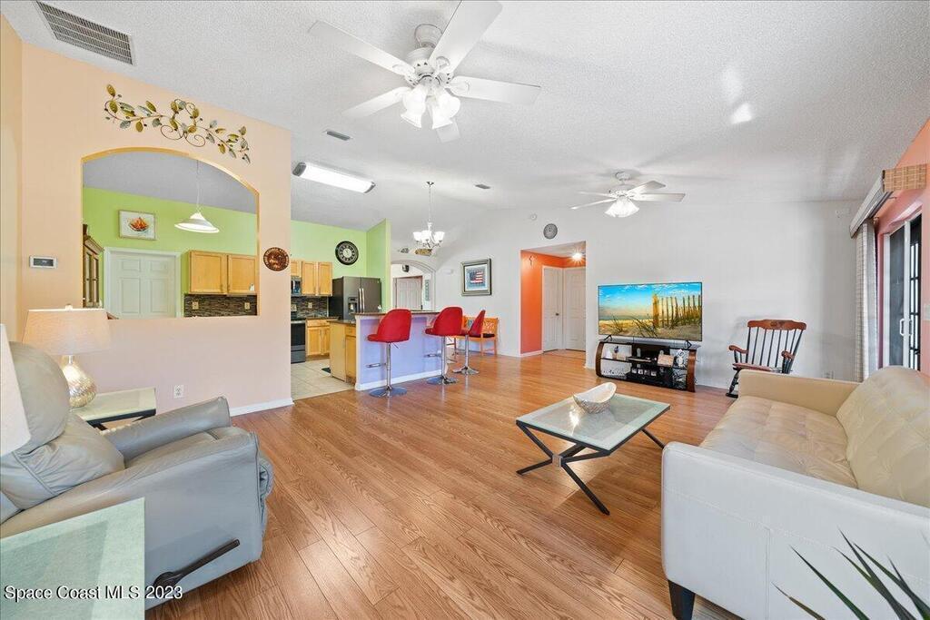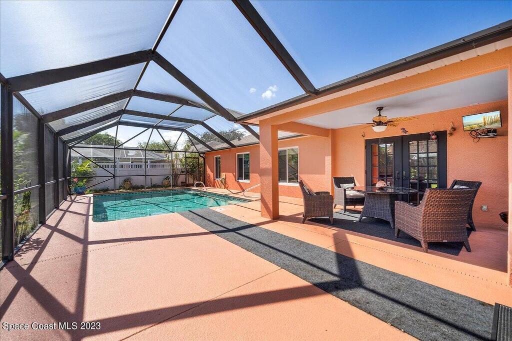 This beautiful 4-bedroom, 2-bathroom home in West Melbourne, Florida was built in 2003 and has been meticulously maintained. It features a spacious layout with plenty of room for everyone to enjoy. The open living area flows seamlessly into a separate dining space, creating a great space for entertaining. Natural light fills the home, creating a warm and inviting atmosphere. With a brand new roof, you can have peace of mind knowing that the home is protected. Outside, you'll find a screened-in pool and patio area, perfect for relaxing and enjoying the Florida weather. The lush tropical garden with fruit trees adds a touch of paradise to the property. With its prime location, this home offers easy access to both Orlando and Cocoa Beach. You'll also appreciate the walkable neighborhood and low-cost HOA. Shopping, dining, schools, and a hospital are all conveniently located nearby.