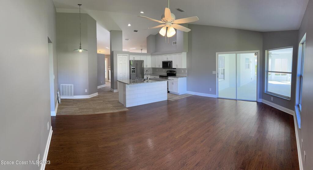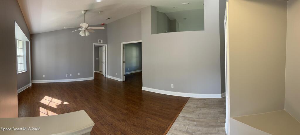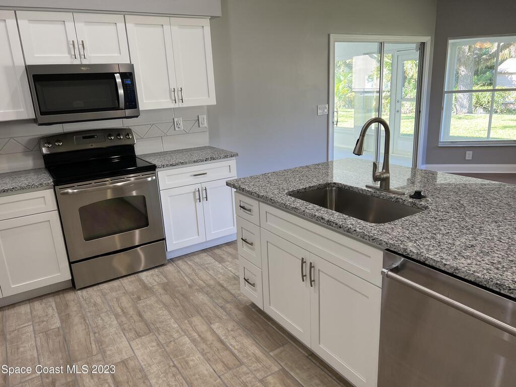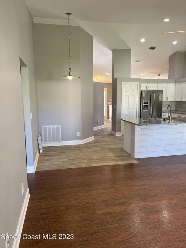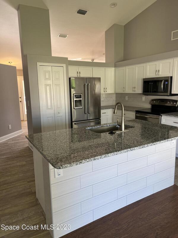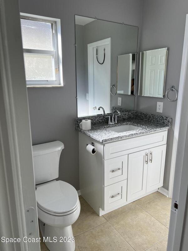 GORGEOUS MUST SEE 3/2 with bonus room in quiet SE Palm Bay! Home has been completely remodeled - move in ready! New ceramic tile and laminate flooring. New fans and fixtures throughout! Kitchen features stainless appliances, new granite countertops, new cabinets, and large pantry! Spacious master suite with lots of closet space! Master bath features large walk-in shower, dual sinks, his/her closets, and large tub! Large bonus room can be office, nursery, playroom - the possibilities are endless! Huge porch has been completely enclosed with windows and AC unit - perfect for entertaining and enjoying the backyard! Roof and exterior paint 2019, water heater 2021, AC condenser 2023 . WILL NOT LAST!