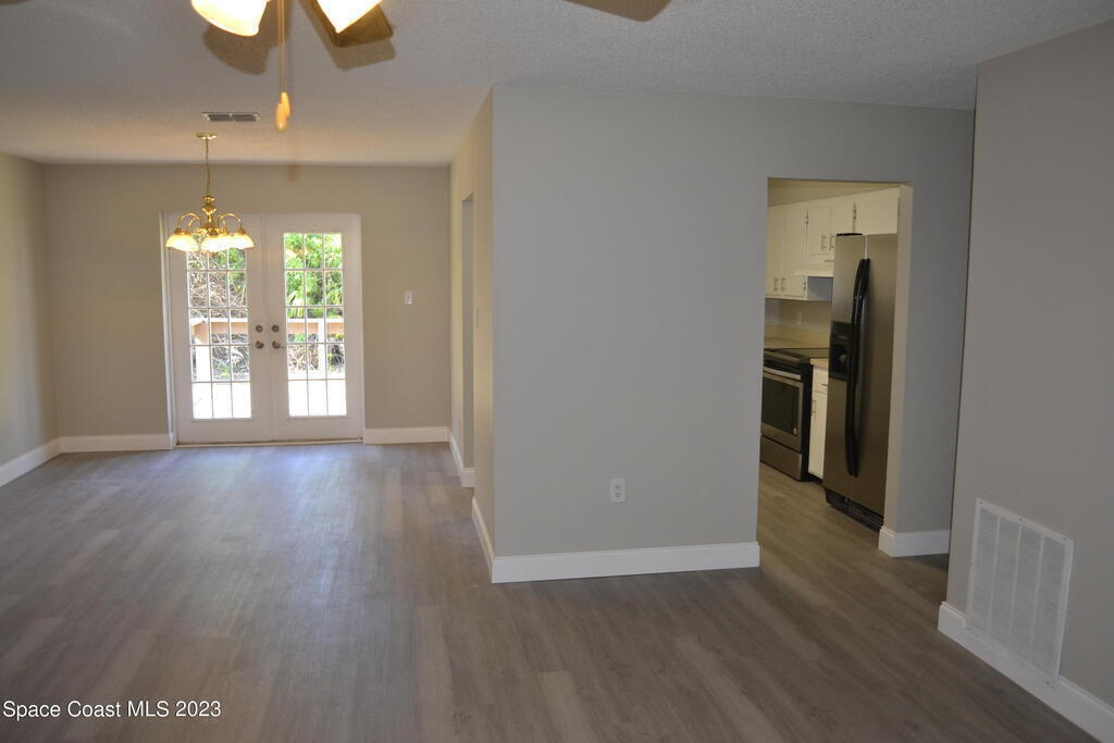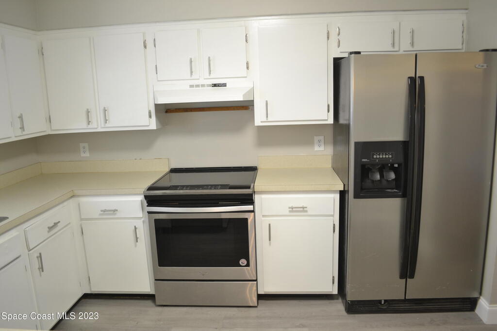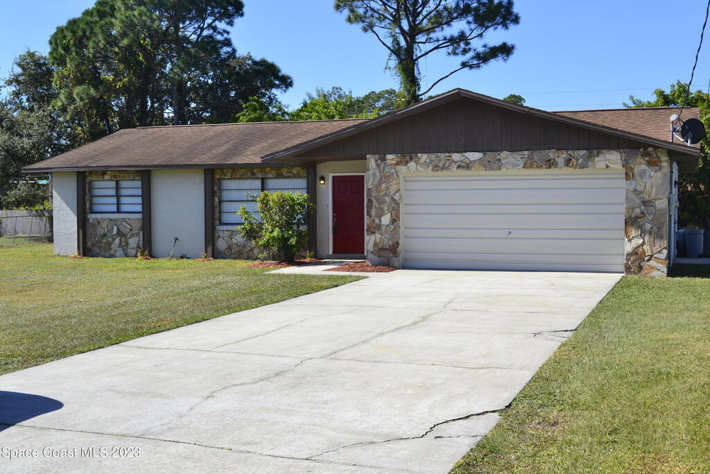 Wonderful 3/2 concrete block home with stone finished front on incredible .33 acre lot in Port St John. New luxury PVT flooring, fresh paint inside and out, deck out back for barbeques and a concrete pad for a new workshop. Stainless steel oven and refrigerator with new stainless dishwasher. Almost new upright washer and dryer. Great family home minutes from Space center and easy drive to Orlando.
