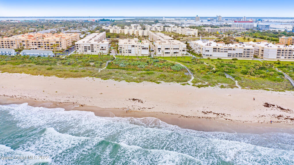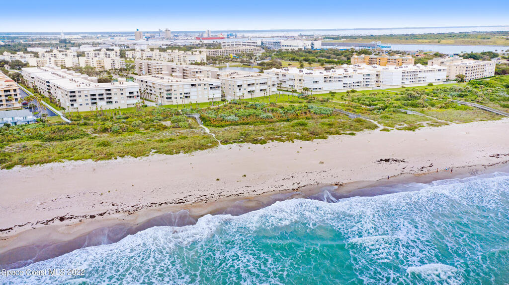 3-BEDROOM END UNIT with 2,104 SQFT living area, TWO wraparound balconies (640 sqft), and a PRIVATE garage. Gated OCEANFRONT community with private beach accesses. Come enjoy peekaboo ocean views, cruise ships & even rocket launches & landings! Spacious island kitchen with walk in pantry and balcony access. The primary suite has walk-in closet, balcony access, jetted tub, shower & double vanities. Guest suite has bath access & walk-in closet and the 3rd bedroom/office also has balcony access. Shorewood Community is near Port Canaveral in a hidden oceanfront neighborhood - NOT on A1A! Resort-style amenities: heated/cooled pool, spa, gym, pickleball, tennis, clubhouse with $2M+ in reserves! Near the Port Canaveral restaurants & venues, Cocoa Beach, and NASA/Space Center. A direct 45 minutes to Orlando Airport. Come enjoy the BEACH vibe and/or consider it's strong INCOME possibilities!