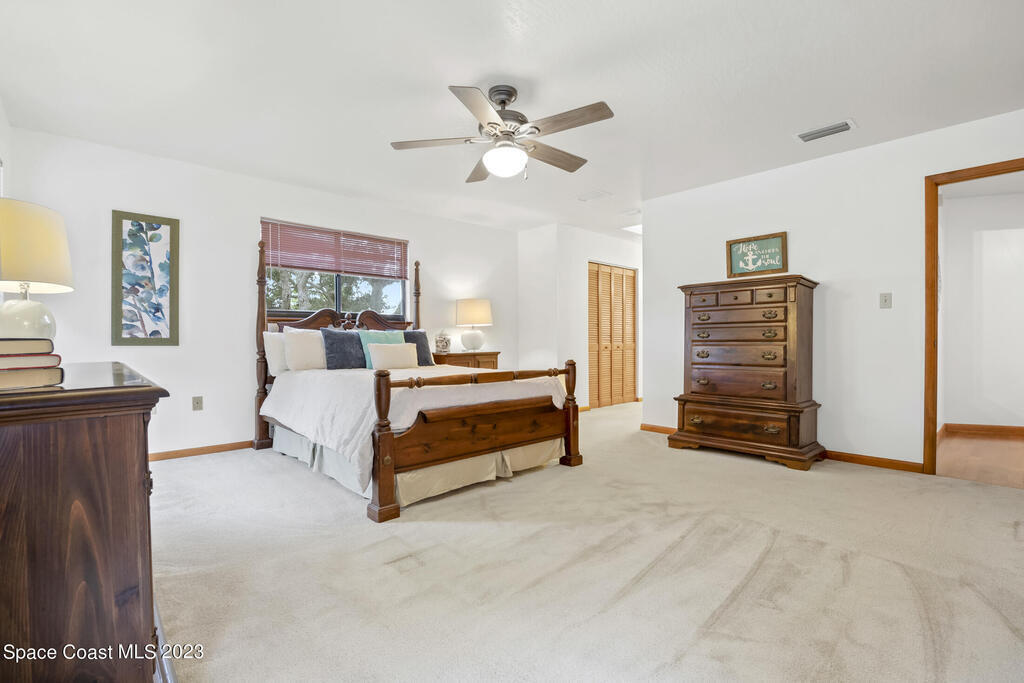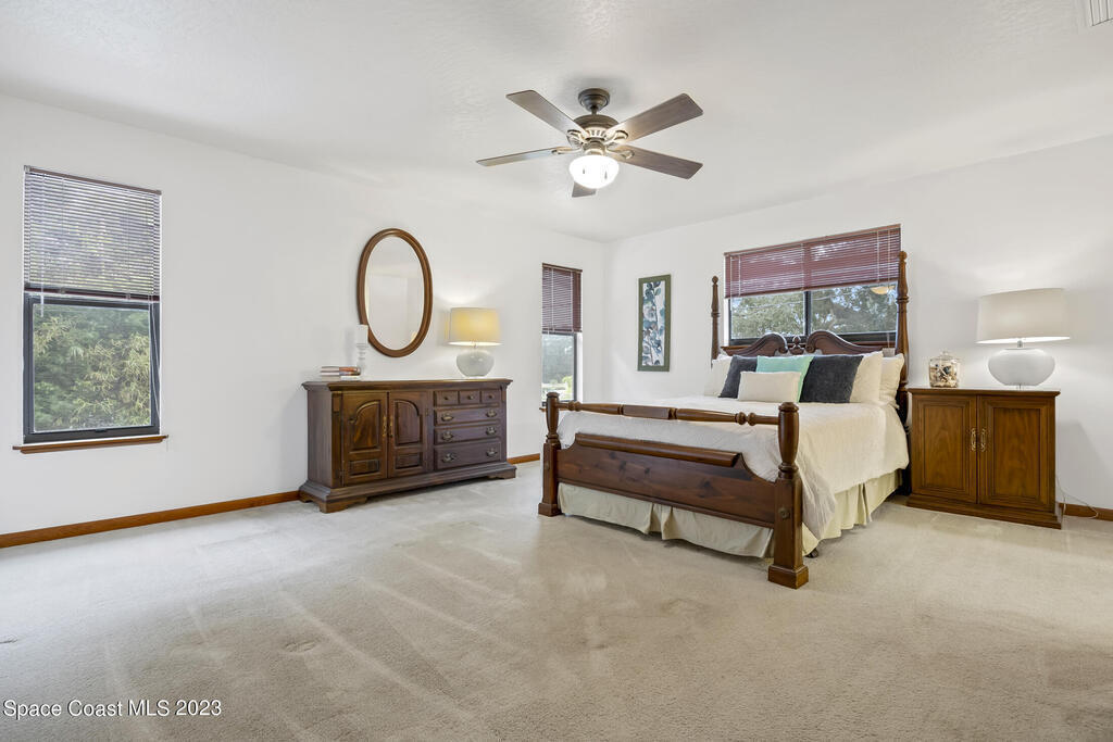 Nestled in a picturesque setting near the Banana River off S. Tropical Trail. As you approach the quiet, PRIVATE street, you're immediately greeted by an array of tall trees leading you onto the property itself. Stunning 2-story home built to blend harmoniously w/its surroundings & as you step inside, the home opens up into beautifully appointed living space w/wonderful outdoor views bringing the outside in. The home's layout is both functional & aesthetically pleasing, w/spacious rooms that flow seamlessly. Enjoy the warmth of the large kitchen w/French doors that lead to a very spacious screened lanai. Freshly painted interior w/the Grand Master suite on second floor that has a separate office space. Enjoy formal living & dining room w/family room located off the kitchen!!