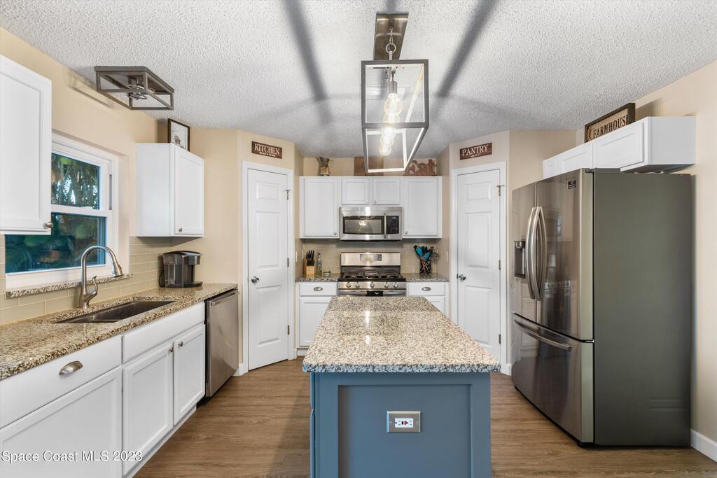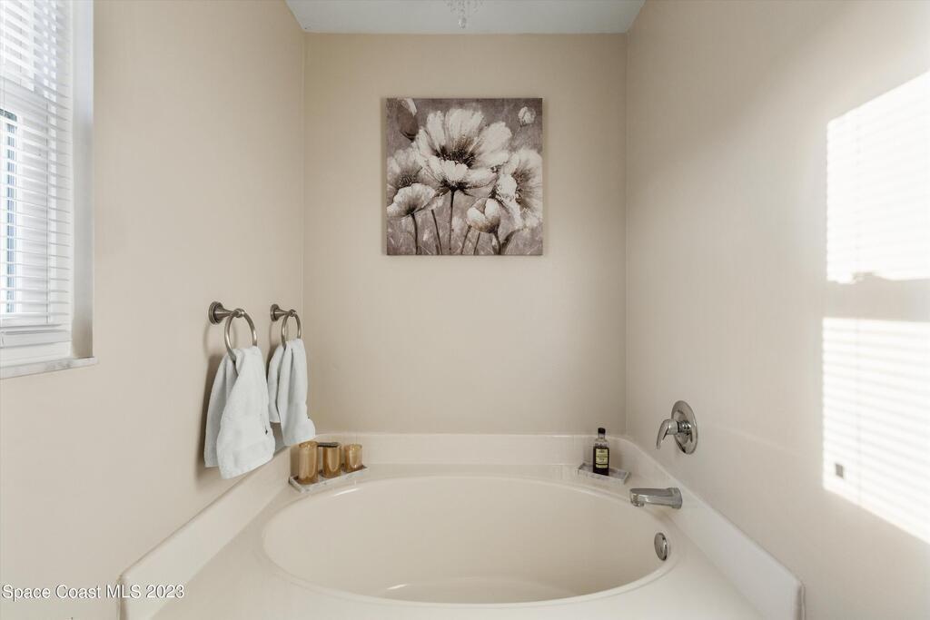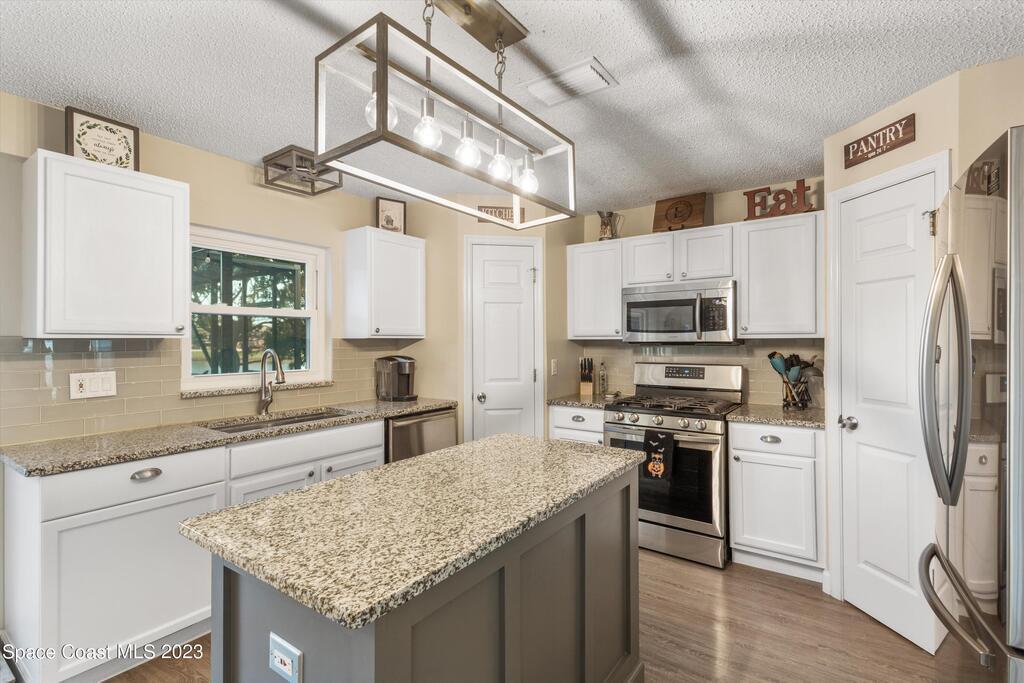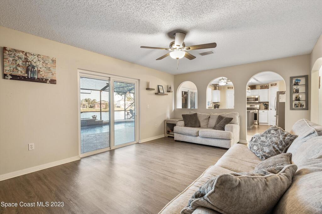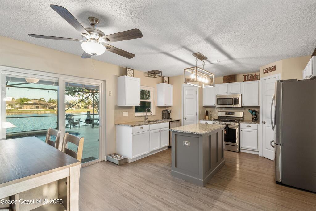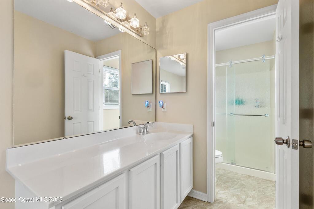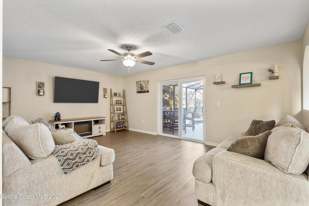 Welcome to your dream home! This 5 bed, 2.5 bath gem offers luxury living. Dive into the 2yr old saltwater pool, enjoy the updated kitchen with sleek finishes. Pond views, hurricane-proof windows ensure safety. New AC, roof in 2019, water heater in 2018. Luxury vinyl plank flooring, solar panels for efficiency. Appliances stay. 10 mins to Viera Avenues, 15 mins to beaches, 45 mins to Orlando Airport, 30 mins to Port Canaveral. Oversized bedroom on main level with half bath. Updated fixtures, gas line access for pool heating & outdoor kitchen. Don't miss this luxury, convenience, potential!