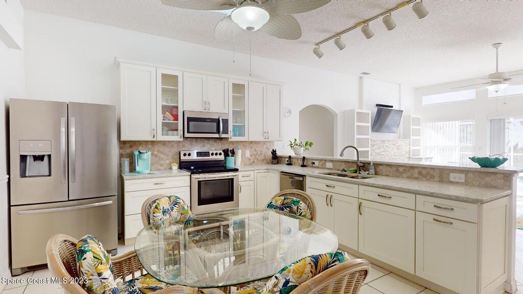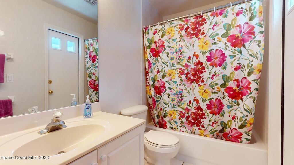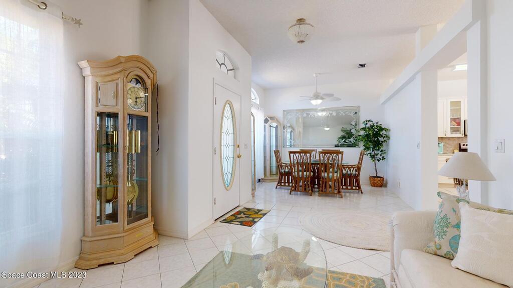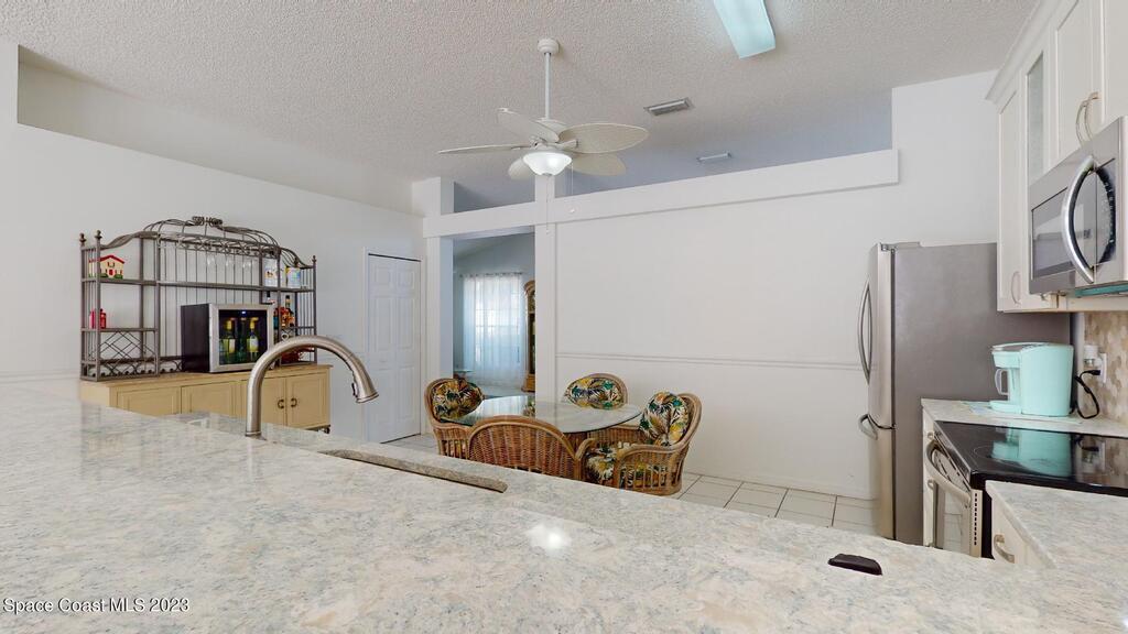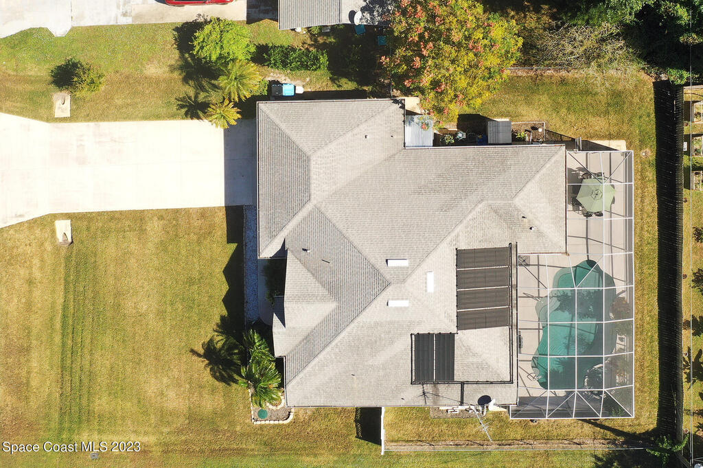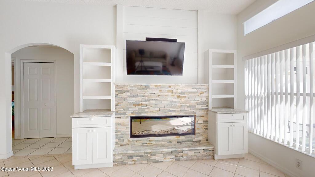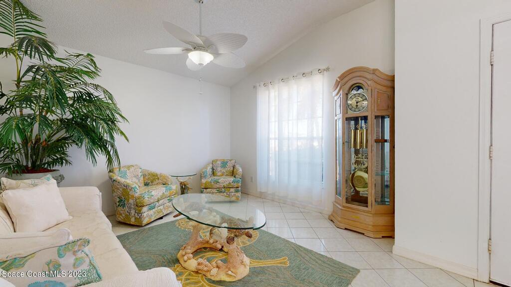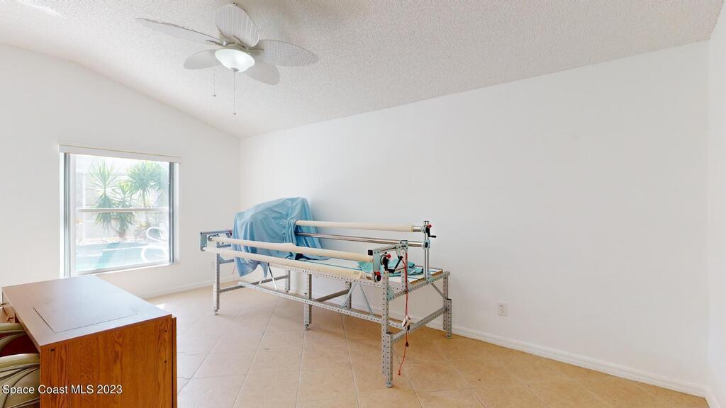 This Palm Bay pool home is a sunlit oasis with an open floor plan of the spacious living area that flows into the updated kitchen, a custom multi-color electric fireplace, creating a nautical ambiance that overlooks the pool area, complete with a cabana bathroom and a fully fenced backyard. The master bedroom is generously sized, plus there's an en-suite bedroom with a separate entrance in the guest wing. The screened-in garage with laundry area offers expansion potential. This home offers the best of both worlds, a tranquil suburban lifestyle with easy access to all the amenities and attractions of the Space Coast, nearby beaches, exploring nature reserve, great schools, & restaurants. NEW ROOF before closing.Rm sz subj to error.