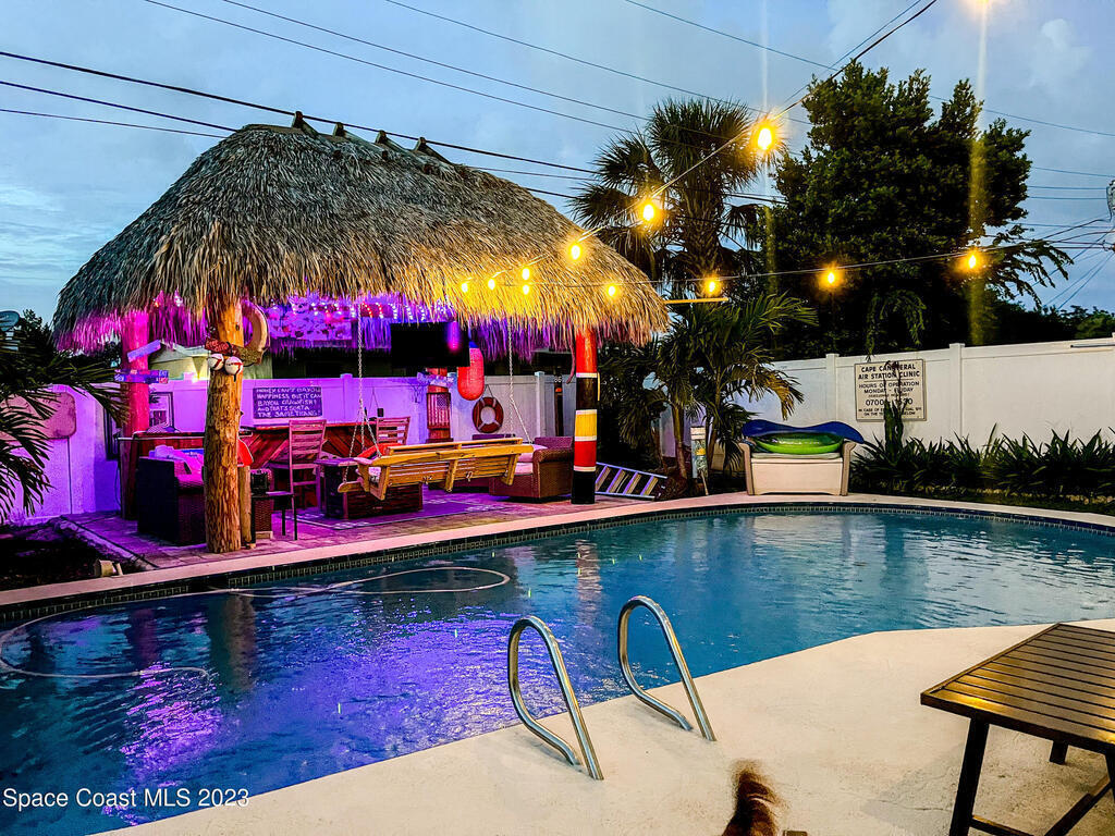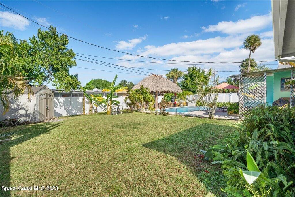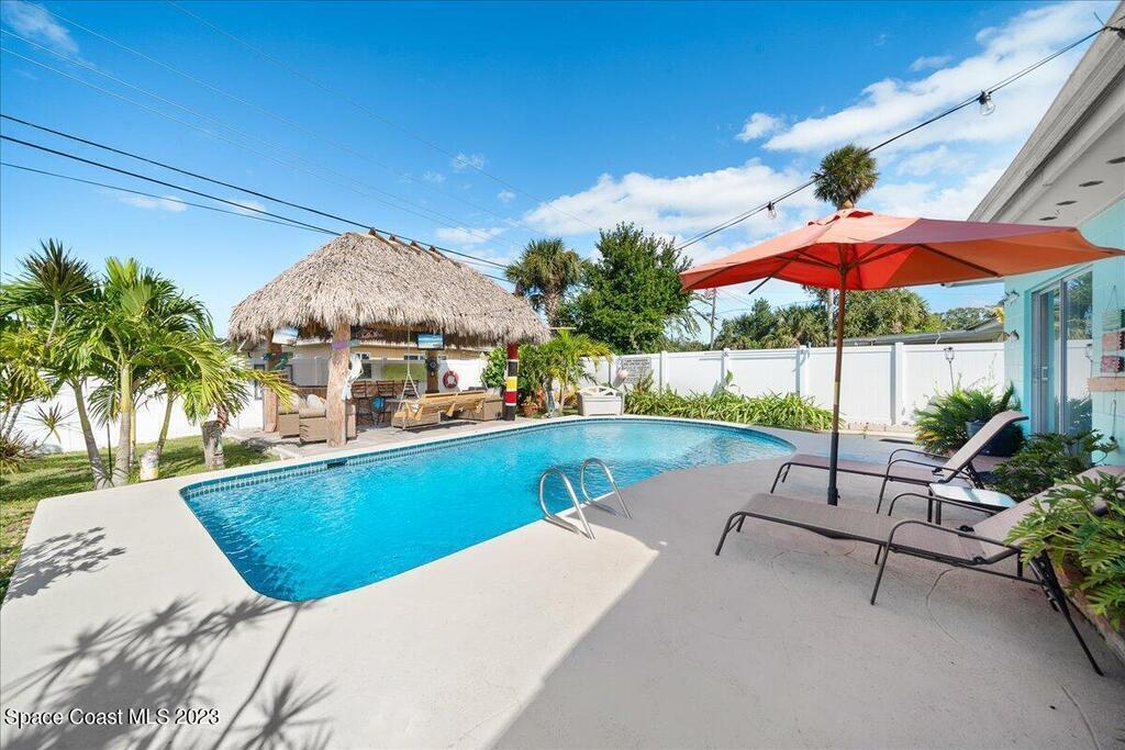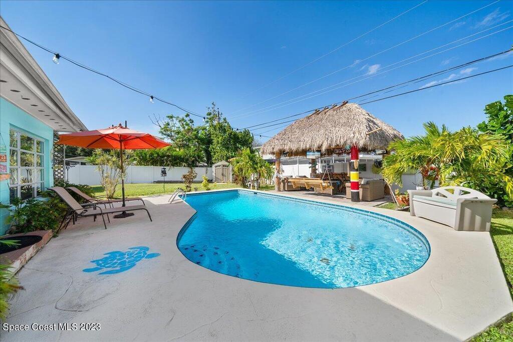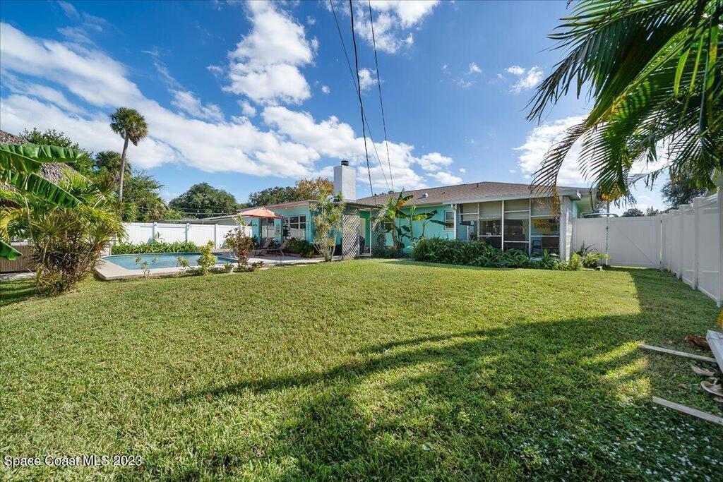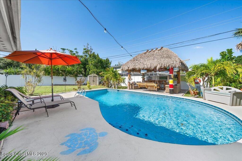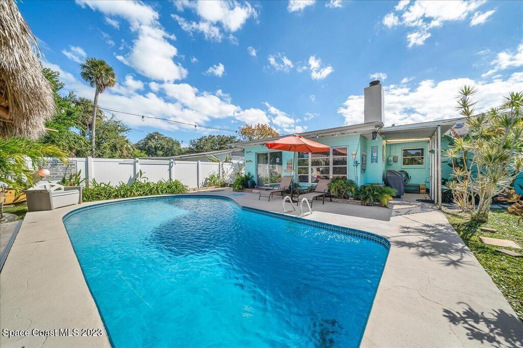 Florida living at its finest! Come take a look at this Gorgeous POOL home in the highly sought after River Heights Subdivision, where you're within walking distance to the Indian River!! This property features 3 bedrooms, 2 bathrooms and 1 car garage. Inside, you'll see updates, including wood and laminate flooring, tiled backsplash in the Kitchen and stainless steel appliances. The primary bedroom has sliding glass doors that lead out to a screened in lanai. Once outdoors, a world of leisure and entertainment awaits! Lounge by the sparkling pool, perfect for those hot summer days, or host barbecues and pool parties in the expansive TIKI bar and patio area. Complete with a vinyl-fenced backyard! Schedule a showing today and embrace the lifestyle you've always dreamed of!