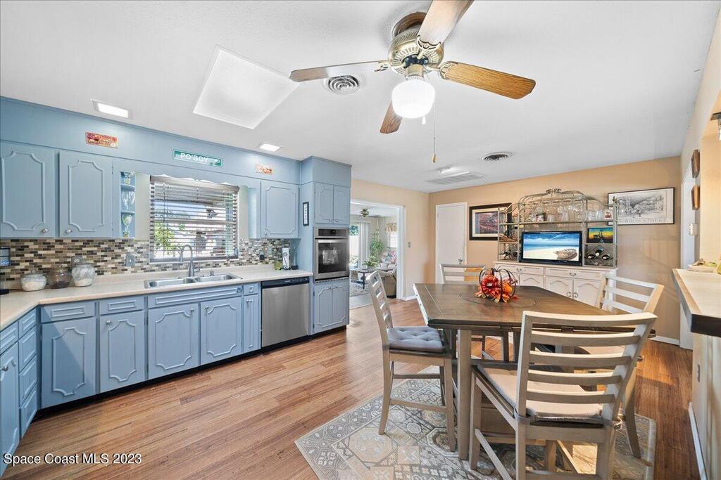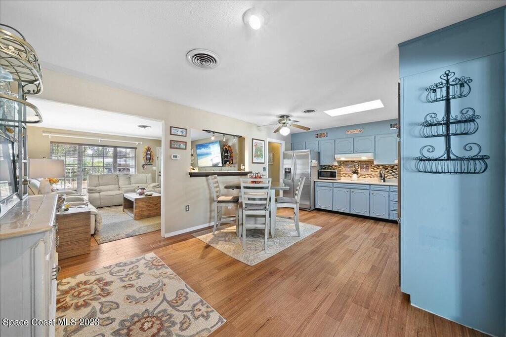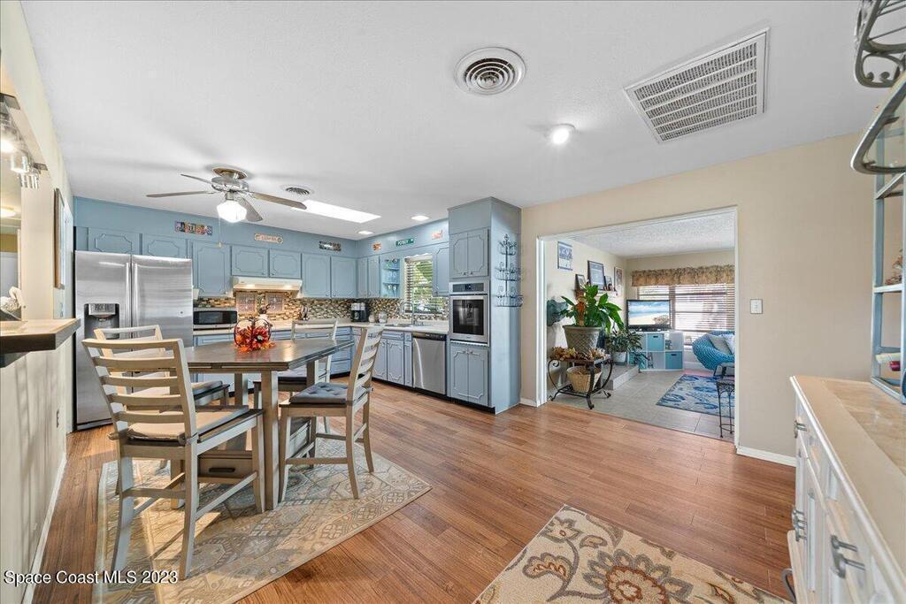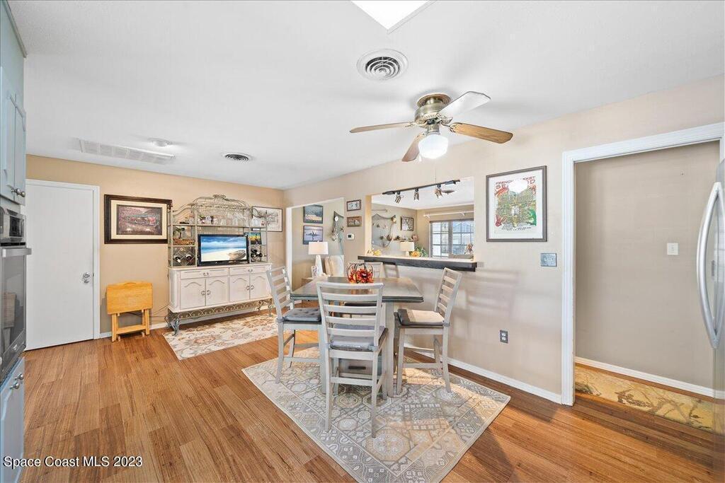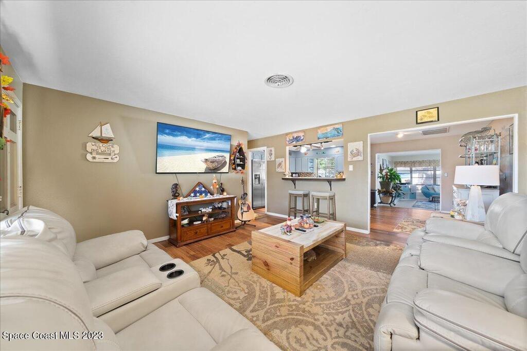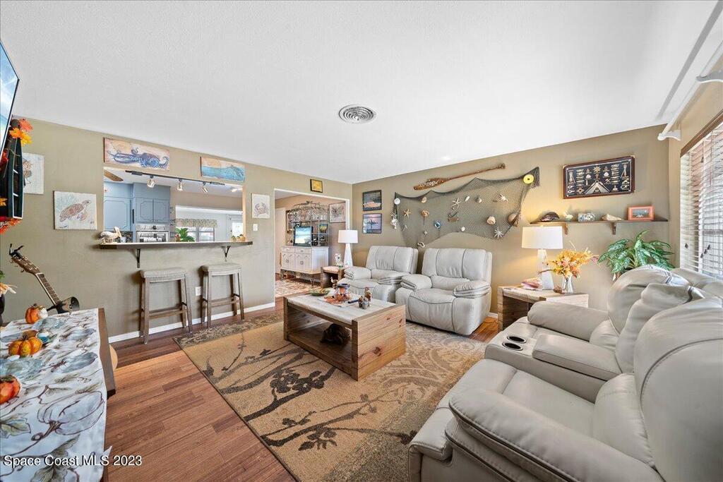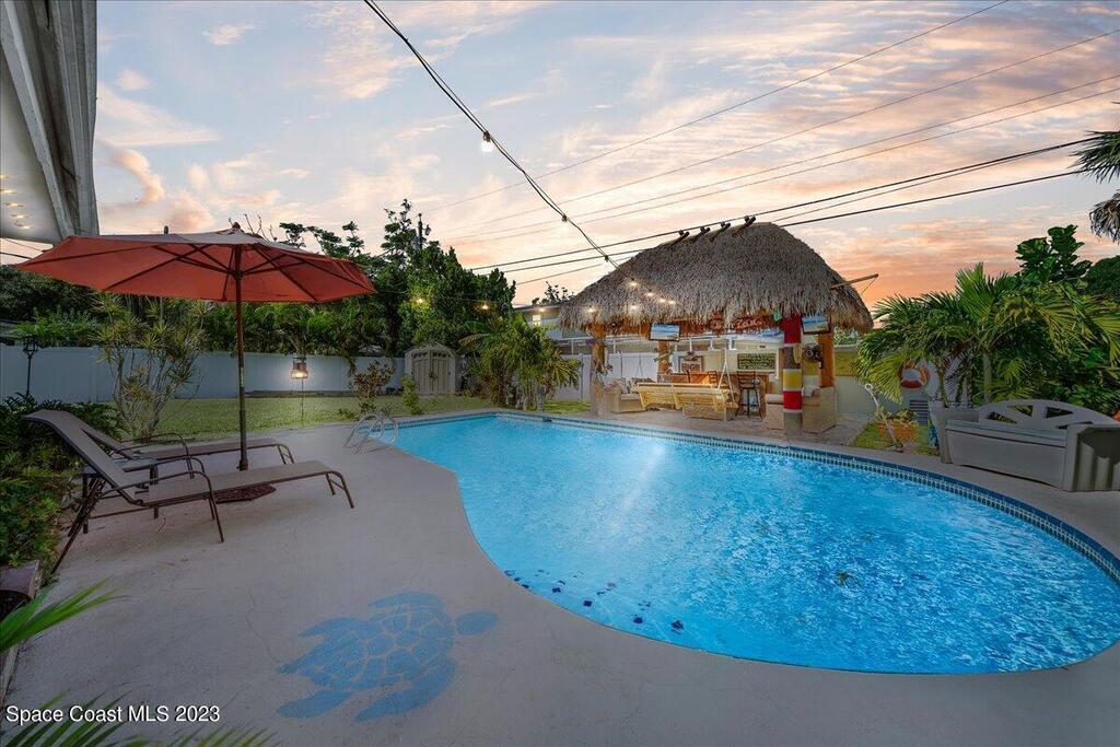 Florida living at its finest! Come take a look at this Gorgeous POOL home in the highly sought after River Heights Subdivision, where you're within walking distance to the Indian River!! This property features 3 bedrooms, 2 bathrooms and 1 car garage. Inside, you'll see updates, including wood and laminate flooring, tiled backsplash in the Kitchen and stainless steel appliances. The primary bedroom has sliding glass doors that lead out to a screened in lanai. Once outdoors, a world of leisure and entertainment awaits! Lounge by the sparkling pool, perfect for those hot summer days, or host barbecues and pool parties in the expansive TIKI bar and patio area. Complete with a vinyl-fenced backyard! Schedule a showing today and embrace the lifestyle you've always dreamed of!