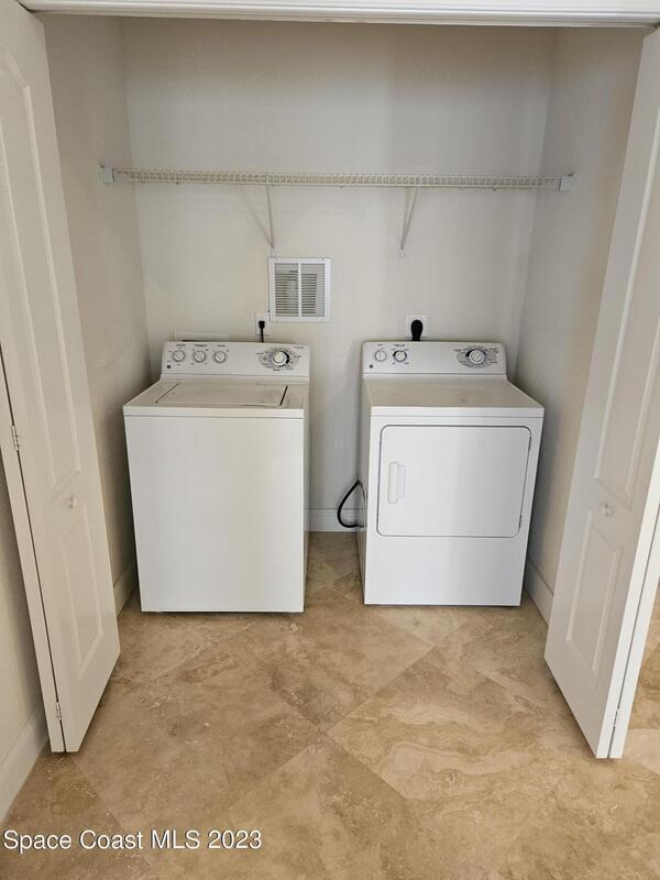 BLOWOUT SPECIAL!!! One more unit in thIs quality constructed concrete block complex offers a huge open floorplan with travertine tile throughout the main living areas. The open concept kitchen is generously sized and offers wood cabinetry as well as a massive pantry! The master bedroom suite has 2 walk-in closets and a 5 piece spa like bathroom with a garden tub and a separate water closet. Inside laundry. Rare attached garage. There is a large screened in patio. Community amenities include a clubhouse with billiards, exercise room, a beautiful pool and tennis and pickle ball courts. All located just one block to the beach. Nearby restaurants, shopping and entertainment. Easy access to the mainland adds to your convenience. Buyer to verify all measurements.