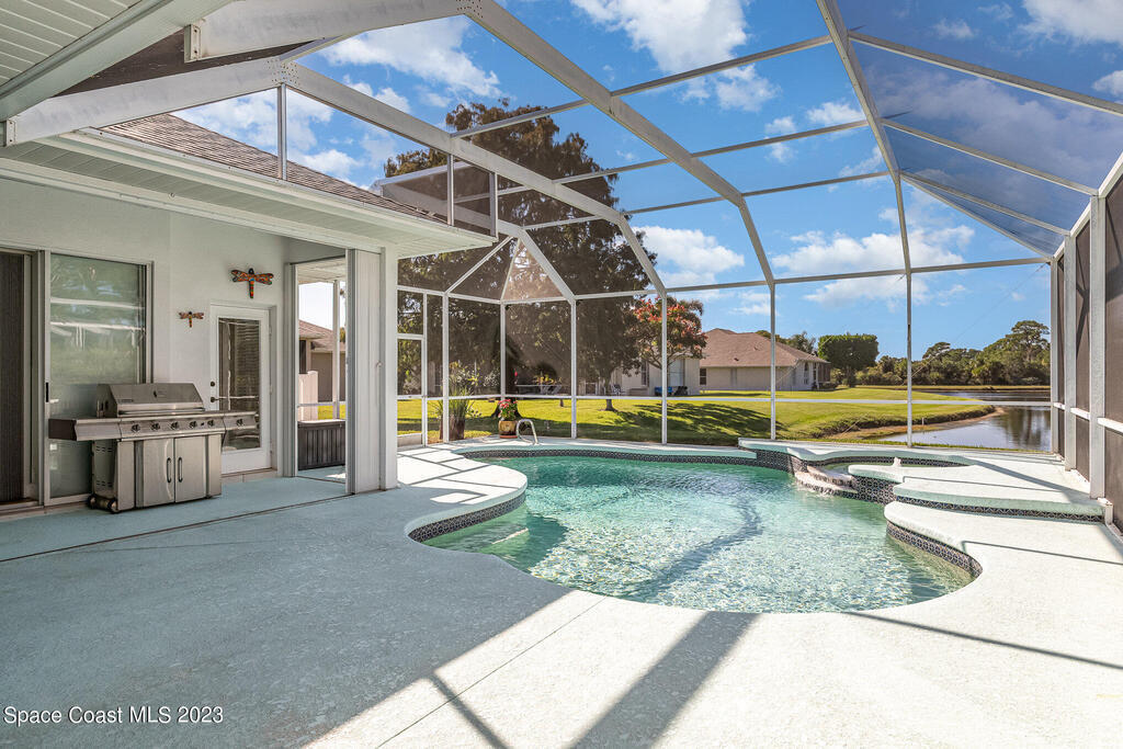 Your Viera Dream Home is Waiting! Marvel at Tranquil Lake and Preserve Views While Floating in Your Solar-Heated POOL. Entertain Like a Boss with Your Recently Remodeled Chef's Kitchen, Boasting Quartz Countertops, a Viking SS Gas Stovetop with Vent, SS Double Oven, Eat-in Kitchen with a Bay Window, Walk-in Pantry, and Wine Fridge. Hideaway Triple Sliders Seamlessly Connect the Spacious Living Areas to the Screened Lanai, Perfect for Extended Entertaining Space. The Primary Suite Features Patio Sliders, Dual Closets, a Vanity with Double Sinks, Tub, and Separate Shower. Enjoy Peace of Mind with a Generac 22kW Automatic Whole Home Generator and Accordion Shutters. Herons Landing offers a low HOA fee, Community Pool, and Playground. Conveniently located near parks, nature trails, golf, dining & shopping. ONLY 15 Minutes to the BEACH! The seller is offering a $10,000 credit to the buyer at closing. Are you Ready to Live the Ultimate Lifestyle in this Exceptional Home?
