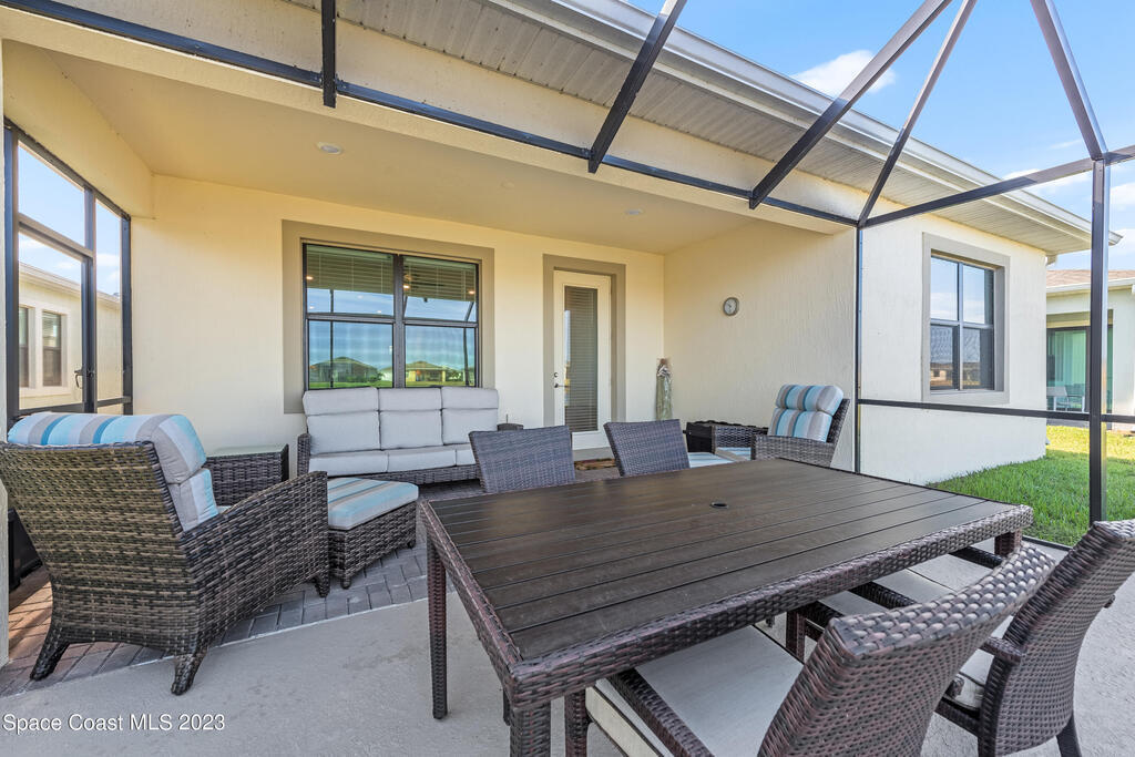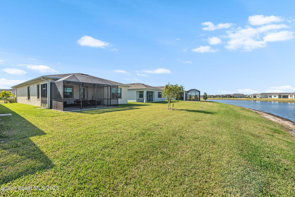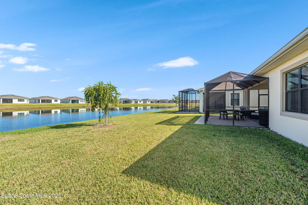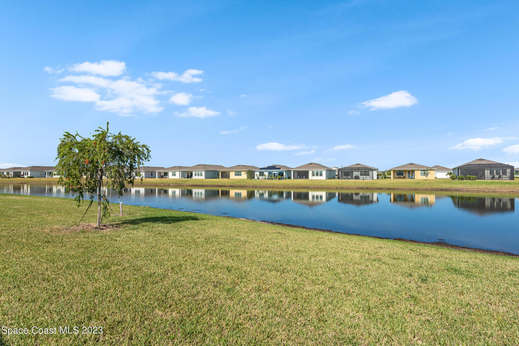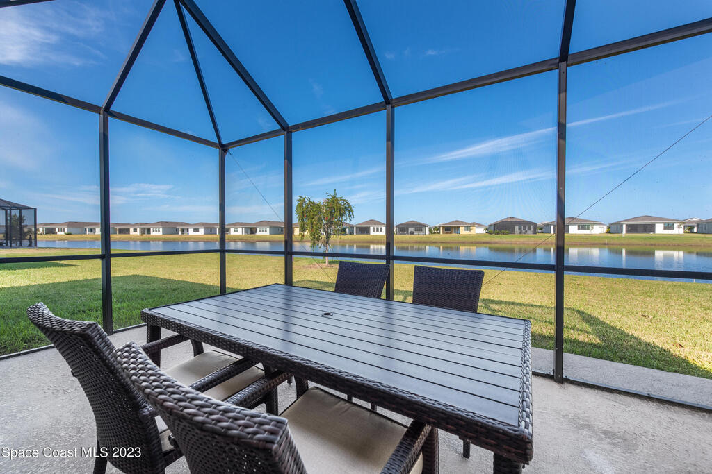 Experience breathtaking water views from this absolutely stunning 3 bedroom 2 bathroom home in the 55+ community of Bridgewater at Viera. Built in 2022, this property is being sold fully furnished with absolutely everything one could need to feel right at home: comfortable new furniture, decorations, linens, cookware... everything! Enjoy upgrades galore with an open and comfortable floor plan that lends itself perfectly to the ideal Florida lifestyle. A gourmet kitchen with luxurious finishes and breakfast bar opens to a large dining and living space. Beyond, a screened, shaded lanai with KSC & SpaceX launch views includes plenty of comfortable chairs and table with umbrella to dine al fresco. Outstanding location near the beach, shopping, parks, and all that the Space Coast has to offer.
