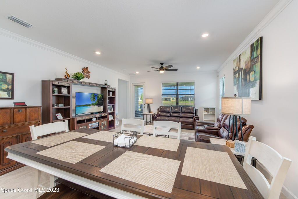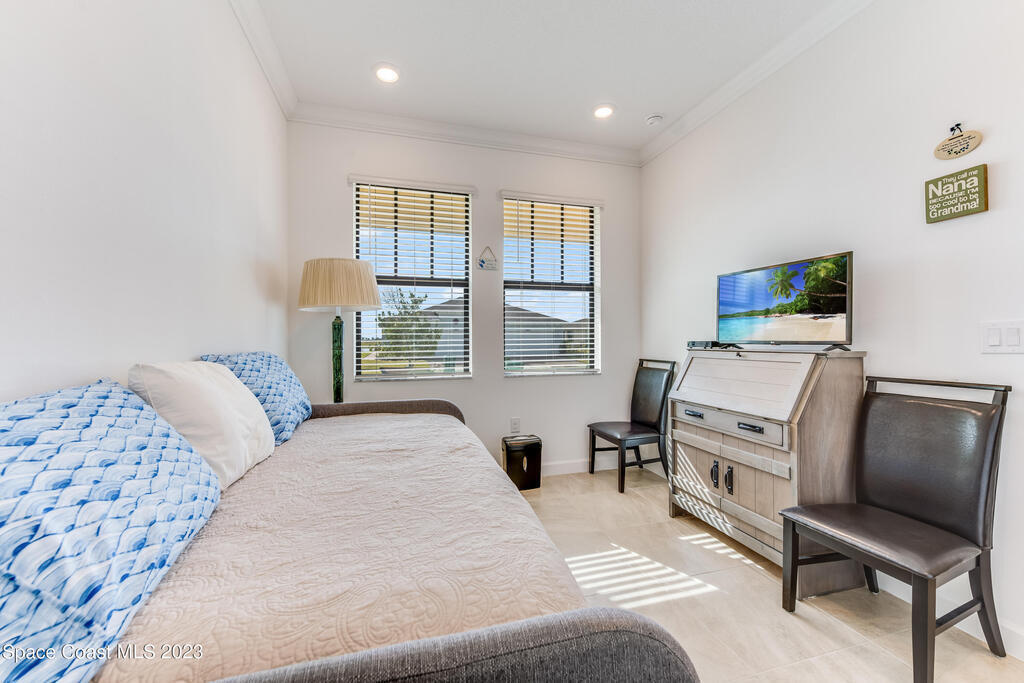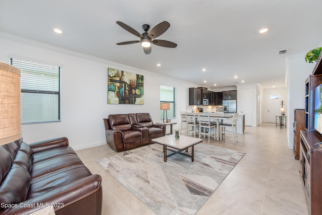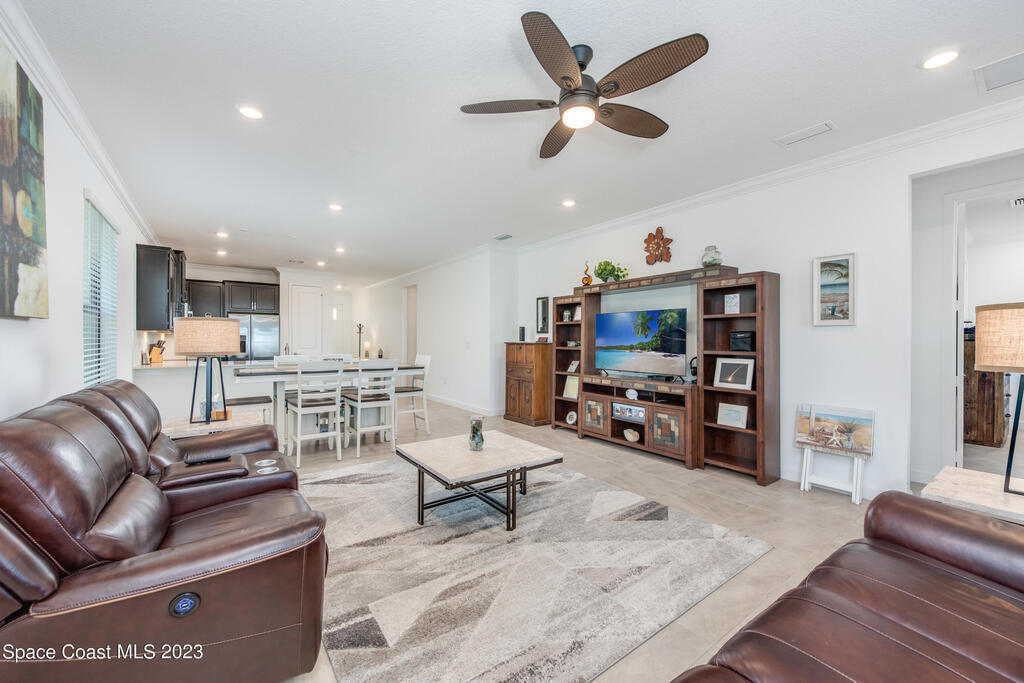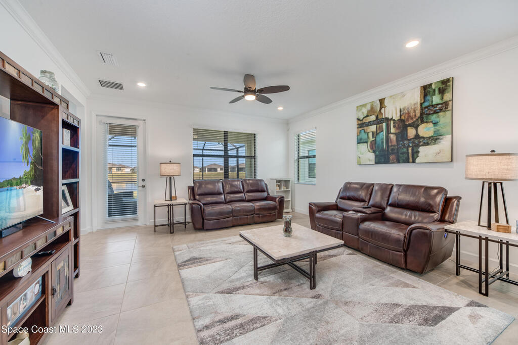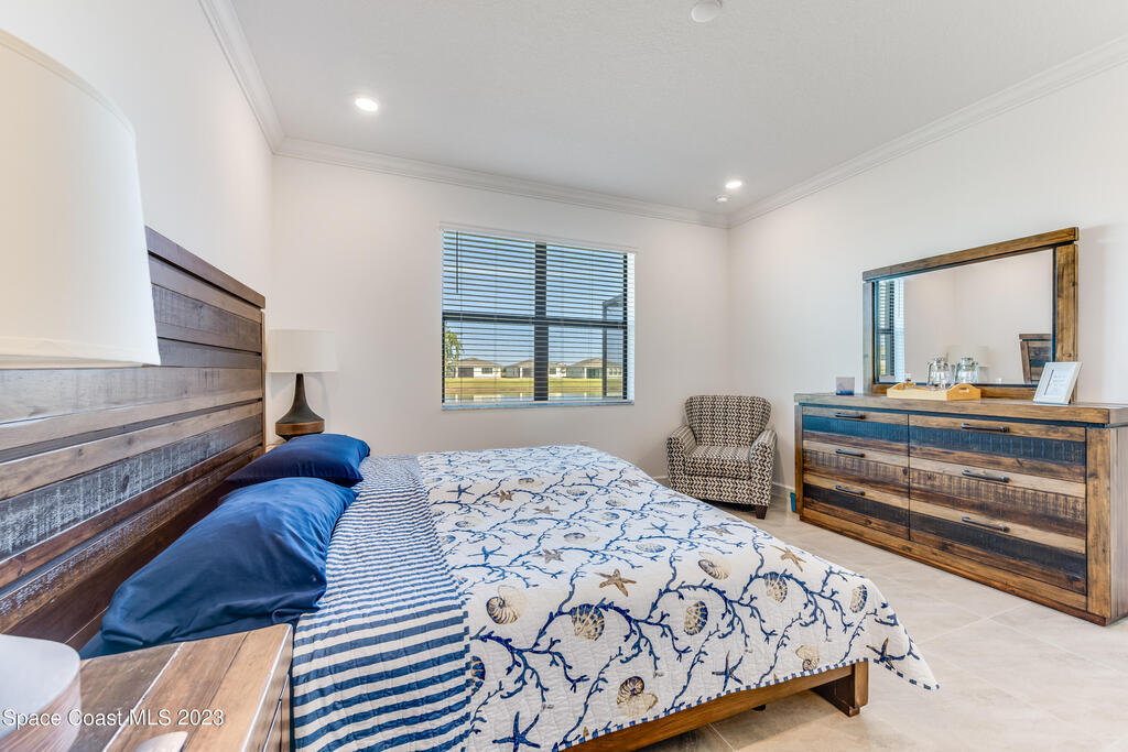 Experience breathtaking water views from this absolutely stunning 3 bedroom 2 bathroom home in the 55+ community of Bridgewater at Viera. Built in 2022, this property is being sold fully furnished with absolutely everything one could need to feel right at home: comfortable new furniture, decorations, linens, cookware... everything! Enjoy upgrades galore with an open and comfortable floor plan that lends itself perfectly to the ideal Florida lifestyle. A gourmet kitchen with luxurious finishes and breakfast bar opens to a large dining and living space. Beyond, a screened, shaded lanai with KSC & SpaceX launch views includes plenty of comfortable chairs and table with umbrella to dine al fresco. Outstanding location near the beach, shopping, parks, and all that the Space Coast has to offer.