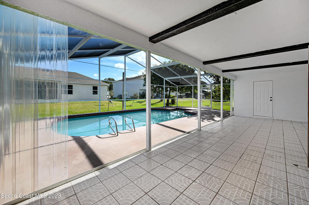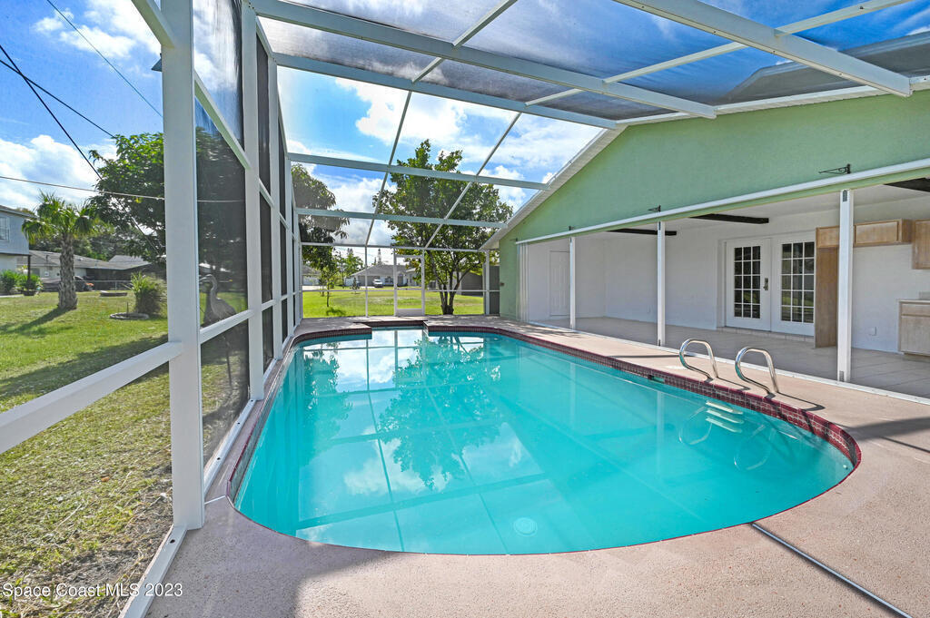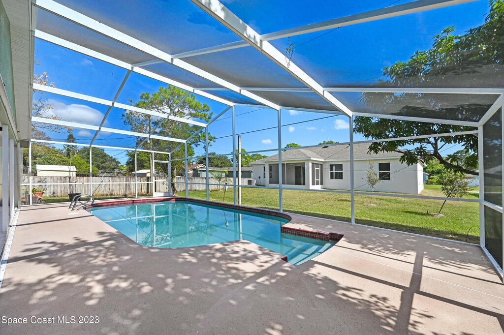 LOOK NO MORE! This Move-In-Ready Concrete Block 3-bedroom, 2.5-bathroom POOL HOME boasts a NEW ROOF (2023), AC (2022), and water heater (2023). Fresh interior paint and carpet create a modern, inviting atmosphere. The spacious layout includes a Dining Room, Living Room, and a Kitchen that opens up to the Family Room, all adorned with elegant volume ceilings. The split bedrooms offer privacy and comfort. The real gem? A FANTASTIC POOL AREA with ample covered space, an outdoor shower, and a pool bath--perfect for entertaining and hosting large gatherings. With a 2-car garage and a prime location, this home is ready for you. Don't miss out--schedule your showing today and step into the lifestyle you deserve!