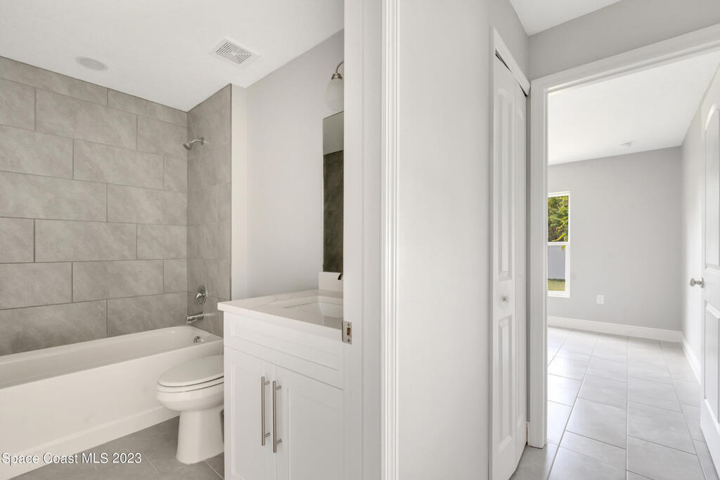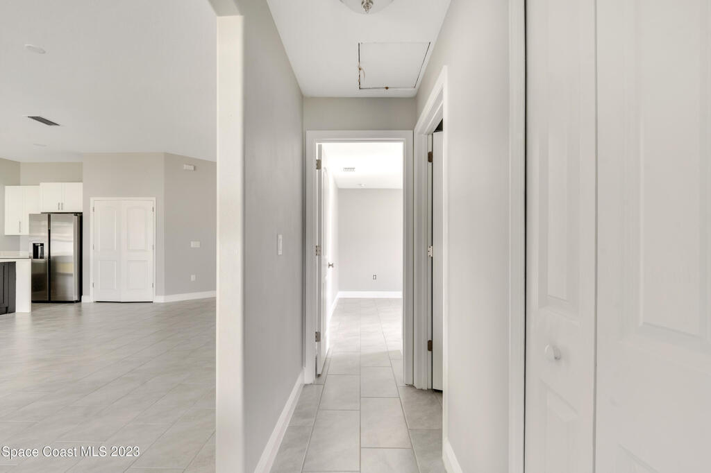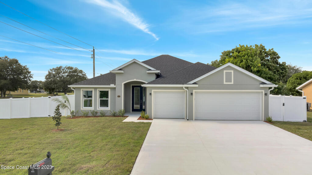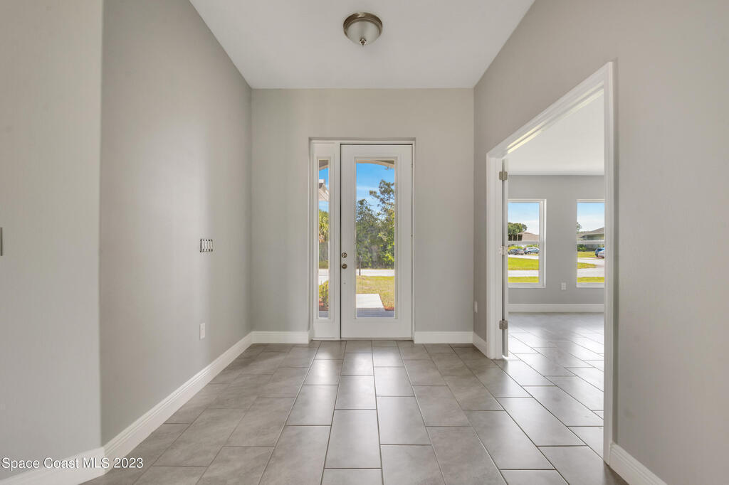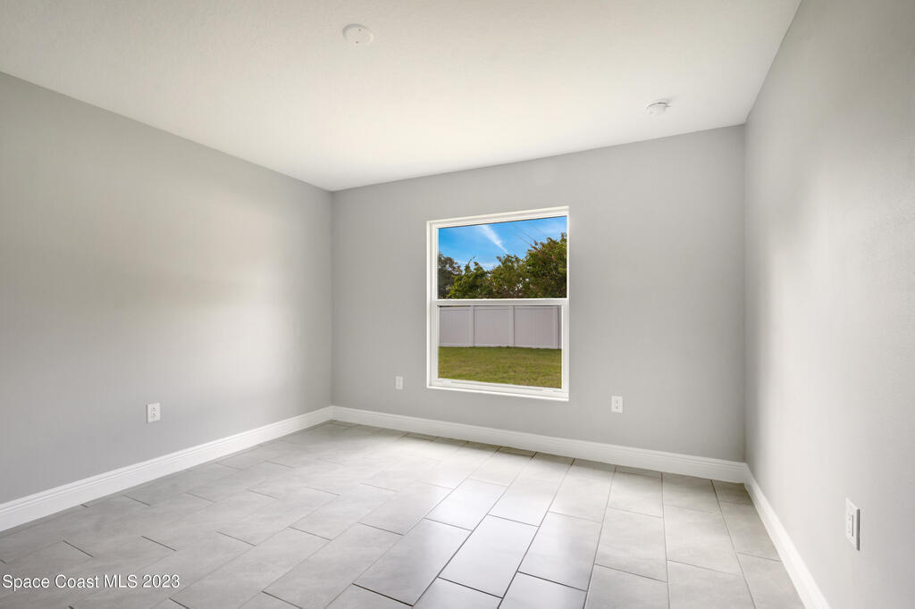 100% Complete, Move in Now! Tired of waiting 12-16 months for new construction in Palm Bay? Presenting the 'Palm' model by Portico Homes - a 4-bed, 2-bath beauty with all the bells and whistles. No carpet, just gorgeous tile throughout. Stunning 42'' cabinets, granite countertops, and stainless steel appliances in the kitchen. Spacious open floor-plan, fully upgraded bathrooms, and an impressive master closet. Enjoy the tiled lanai and private backyard. This home has city water and sewer. Seller offers 1.5% with preferred lender. Contact us today!