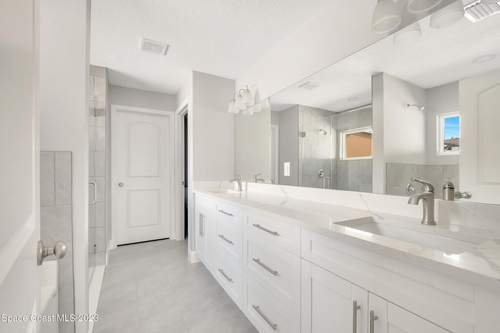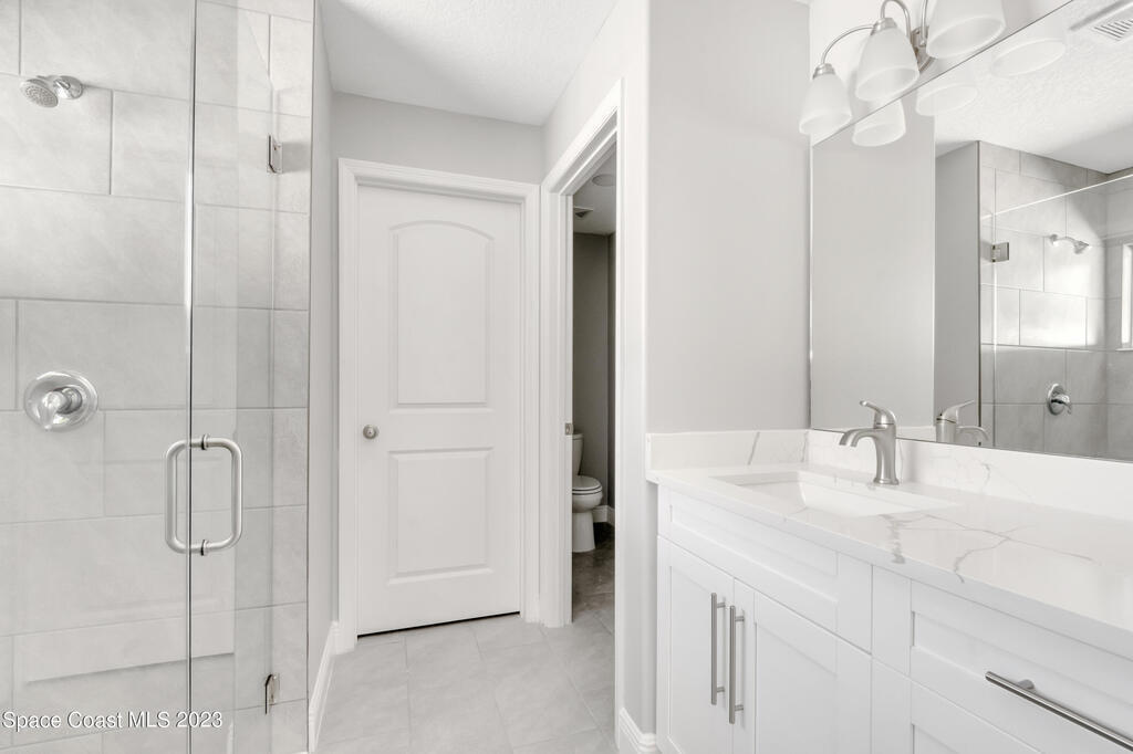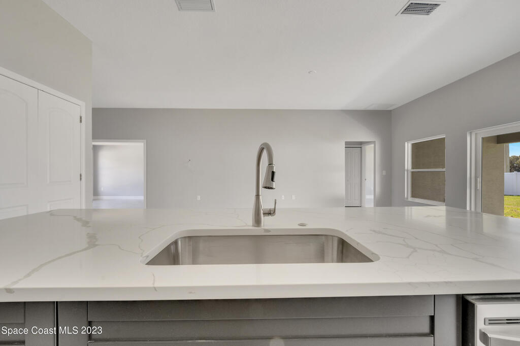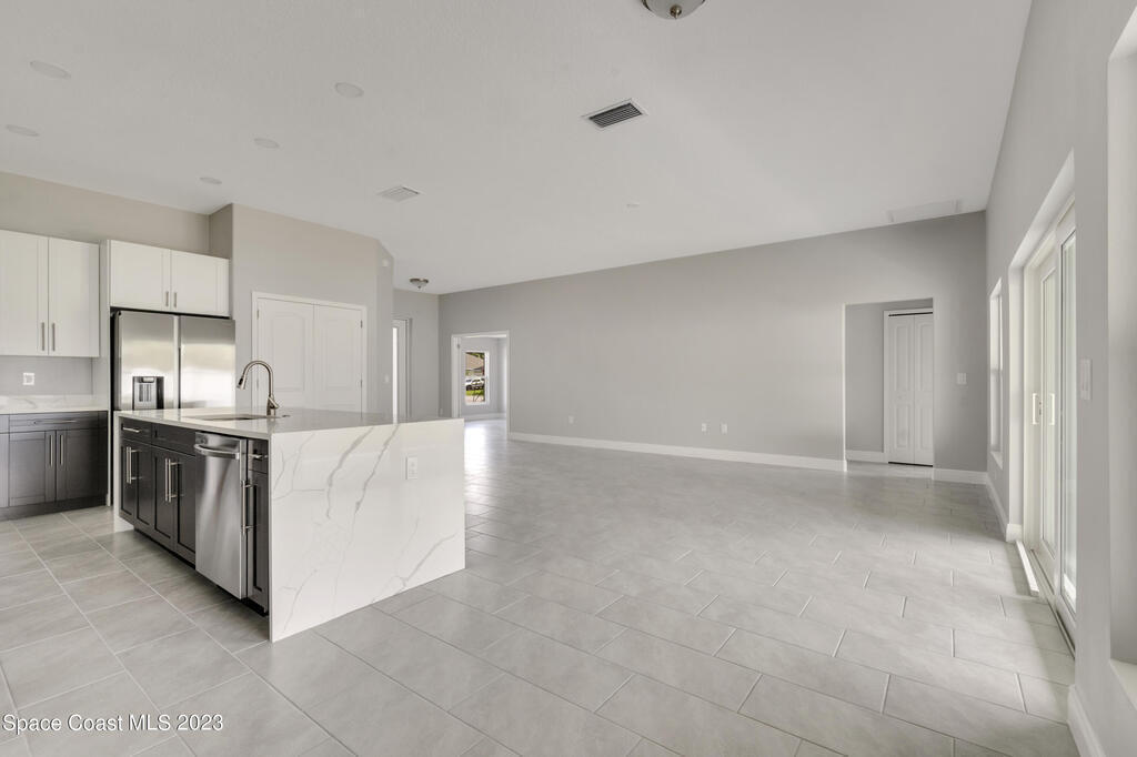 100% Complete, Move in Now! Tired of waiting 12-16 months for new construction in Palm Bay? Presenting the 'Palm' model by Portico Homes - a 4-bed, 2-bath beauty with all the bells and whistles. No carpet, just gorgeous tile throughout. Stunning 42'' cabinets, granite countertops, and stainless steel appliances in the kitchen. Spacious open floor-plan, fully upgraded bathrooms, and an impressive master closet. Enjoy the tiled lanai and private backyard. This home has city water and sewer. Seller offers 1.5% with preferred lender. Contact us today!