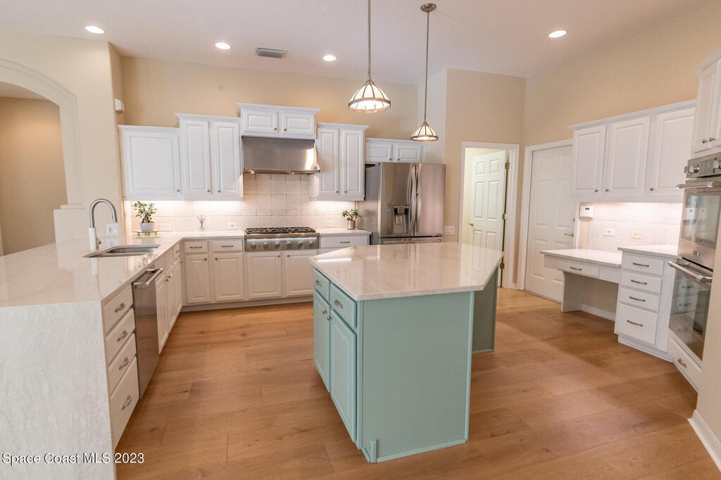 This immaculate well constructed Mediterranean style home features all the fine qualities you demand for upscale living. For the nature lover who enjoys privacy, this lushly landscaped home is nestled in a 0.45-acre lot surrounded by preserve and is located at the end of a cul-de-sac in prestigious guard gated golf course community of Baytree. Features include 3-car garage, 4 bedrooms, 3.5 baths, study with built in bookshelf, bonus room, formal living room with fireplace, family room, laundry room, breakfast nook and large beautifully remodeled culinary kitchen with Thermador stainless steel gas stove, double oven and dishwasher, large quartz island, plus quartz waterfall countertop. You'll love the architectural features, hardwood floors and outstanding floor plan. Enjoy the large pool with water feature, LED lights and new variable speed pool pump. A new summer kitchen with built-in stainless steel gas grill, cabinets and sink, will be completed by 3rd week of February..