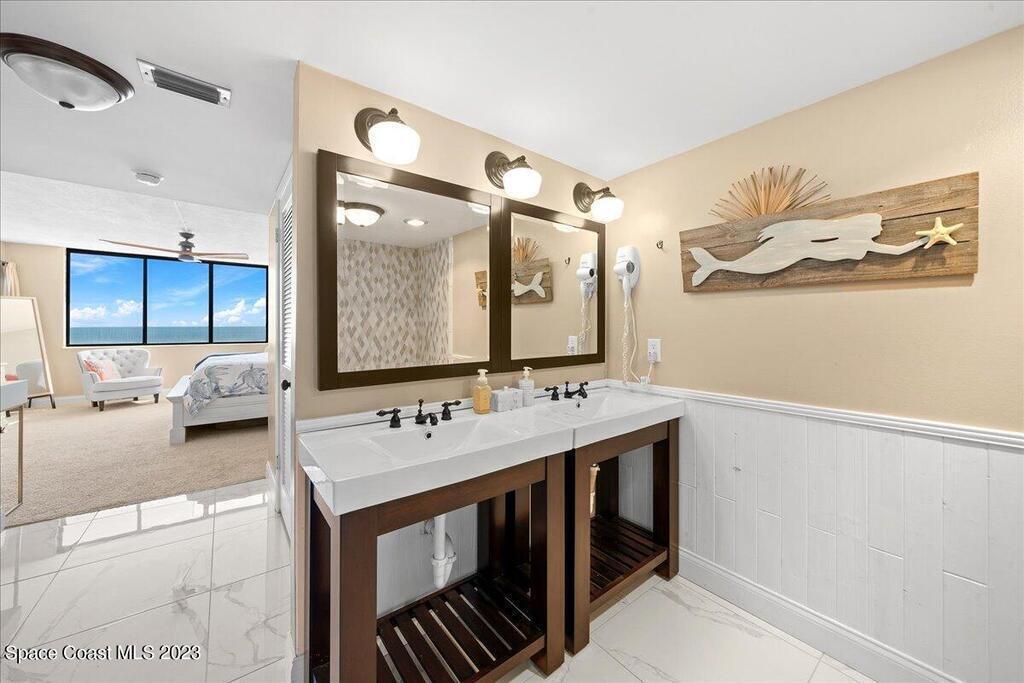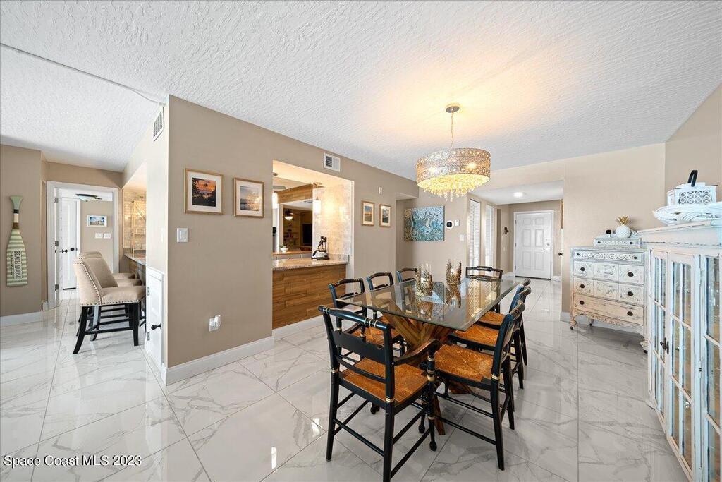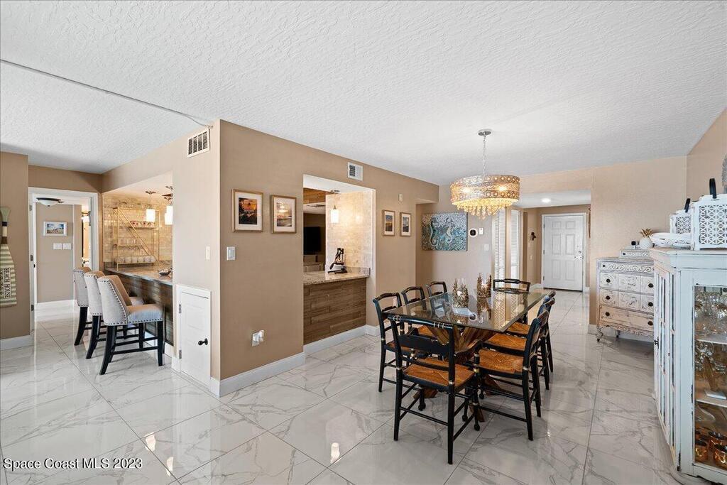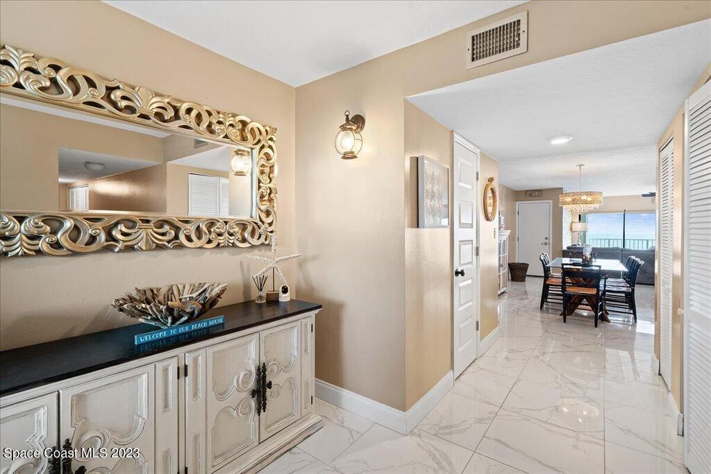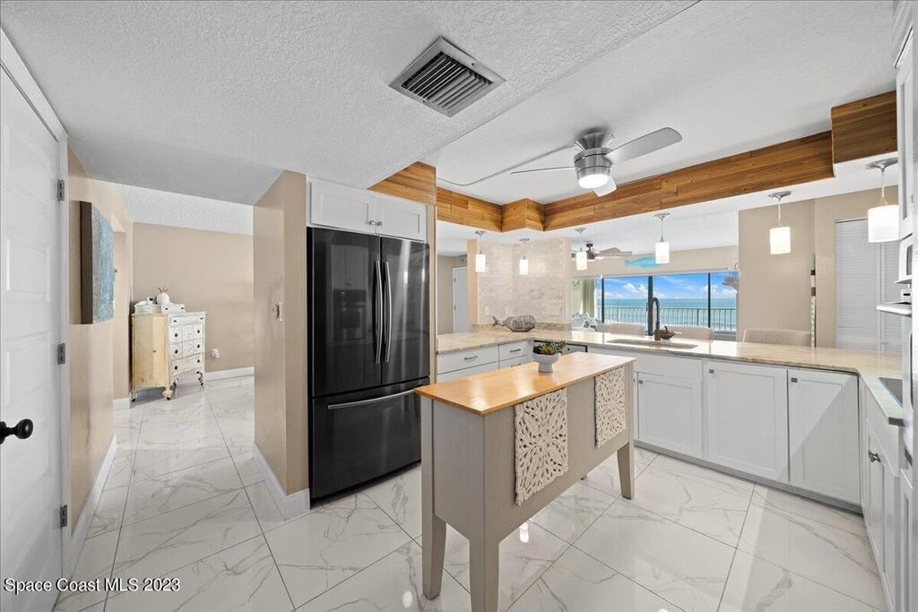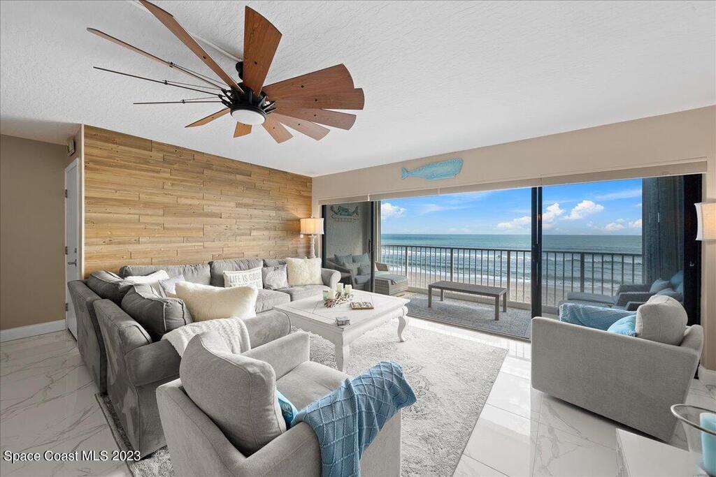 Immerse yourself in oceanfront luxury at this newly upgraded Melbourne Beach penthouse. With newly added impact hurricane exterior windows and doors, this property offers both security and stunning aesthetics. Enjoy mesmerizing ocean views from the living room, dining room, kitchen, master bedroom, and the private balcony. The gourmet kitchen features top-of-the-line appliances, marble countertops, and a pass-thru bar. The master suite offers beachfront views and an updated bathroom with a shower and a luxurious tub. Recent upgrades include interior doors, ceiling fans, and bathrooms. All three bedrooms have sliding doors, allowing in the ocean breeze and natural light. Community amenities include a pool, clubhouse, tennis courts, and a putting green. Come live at the sea.