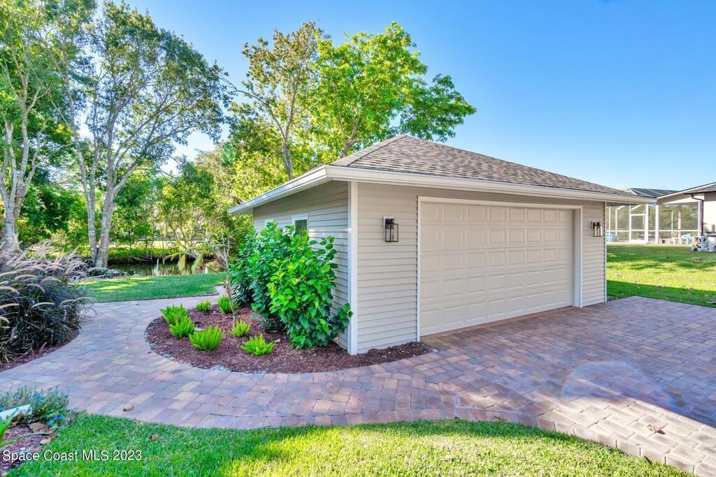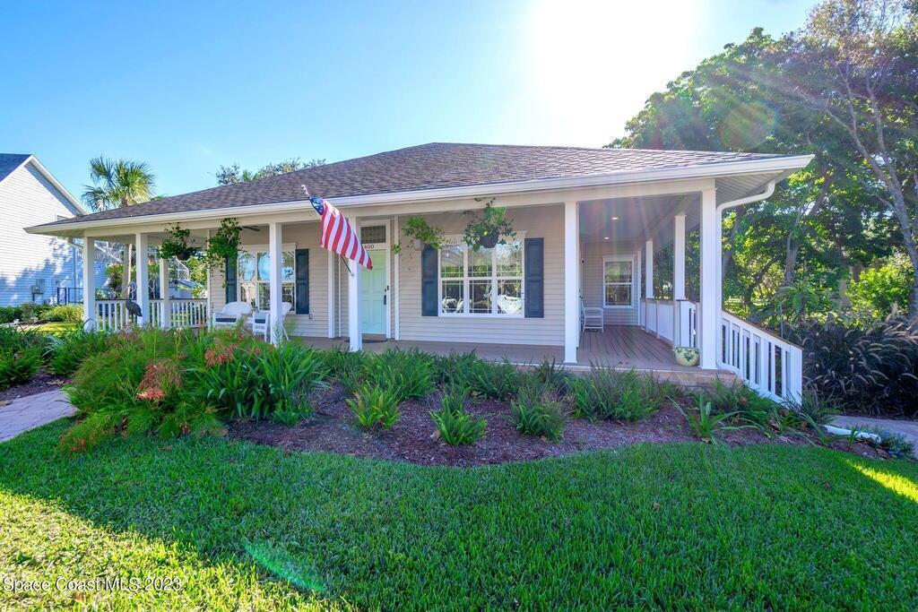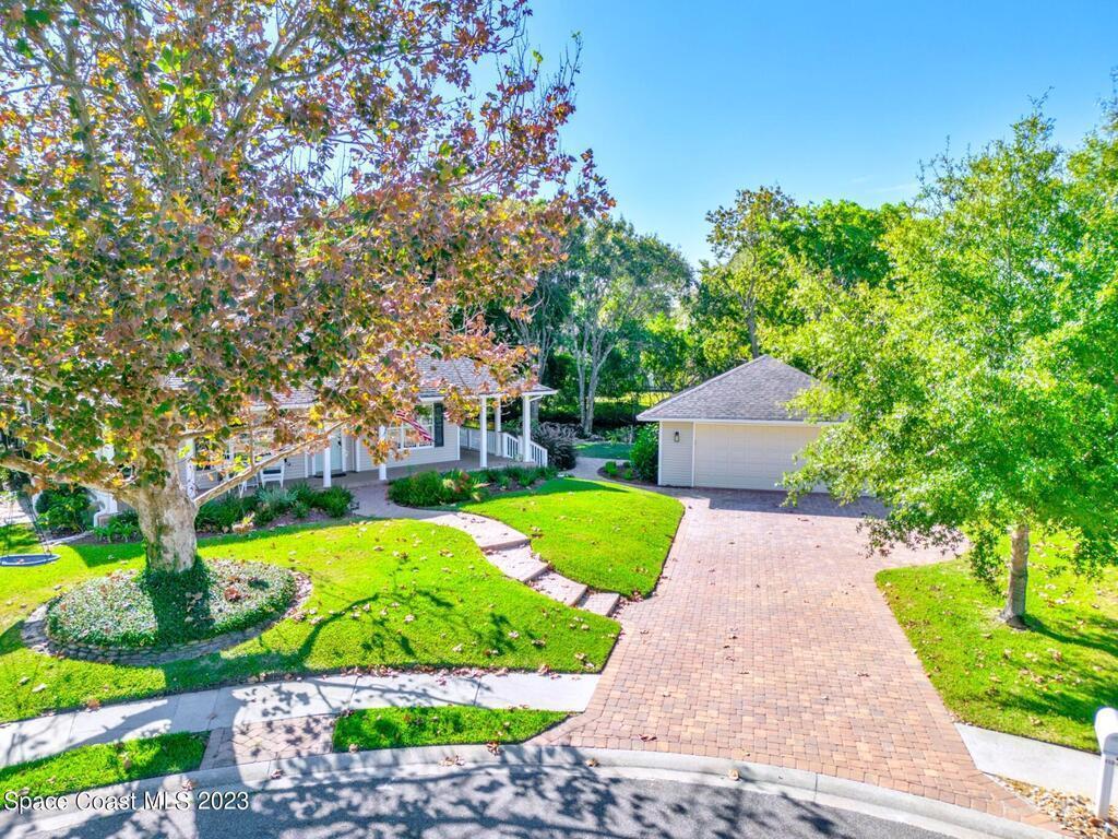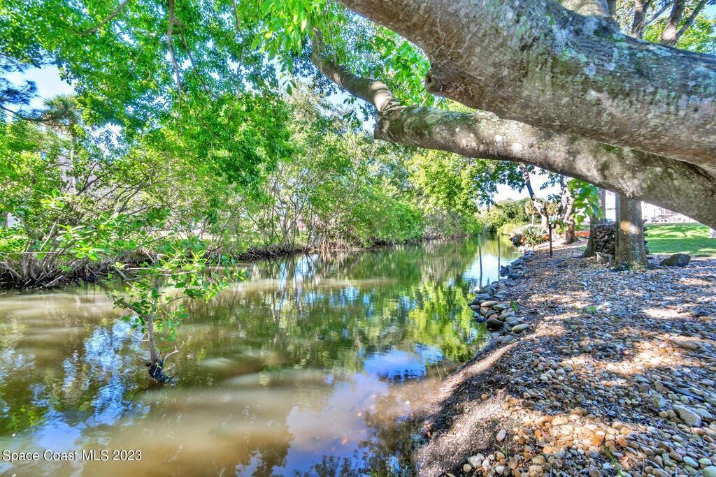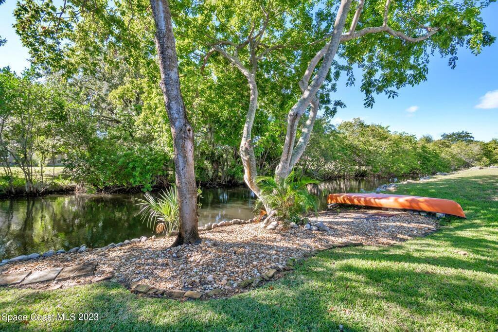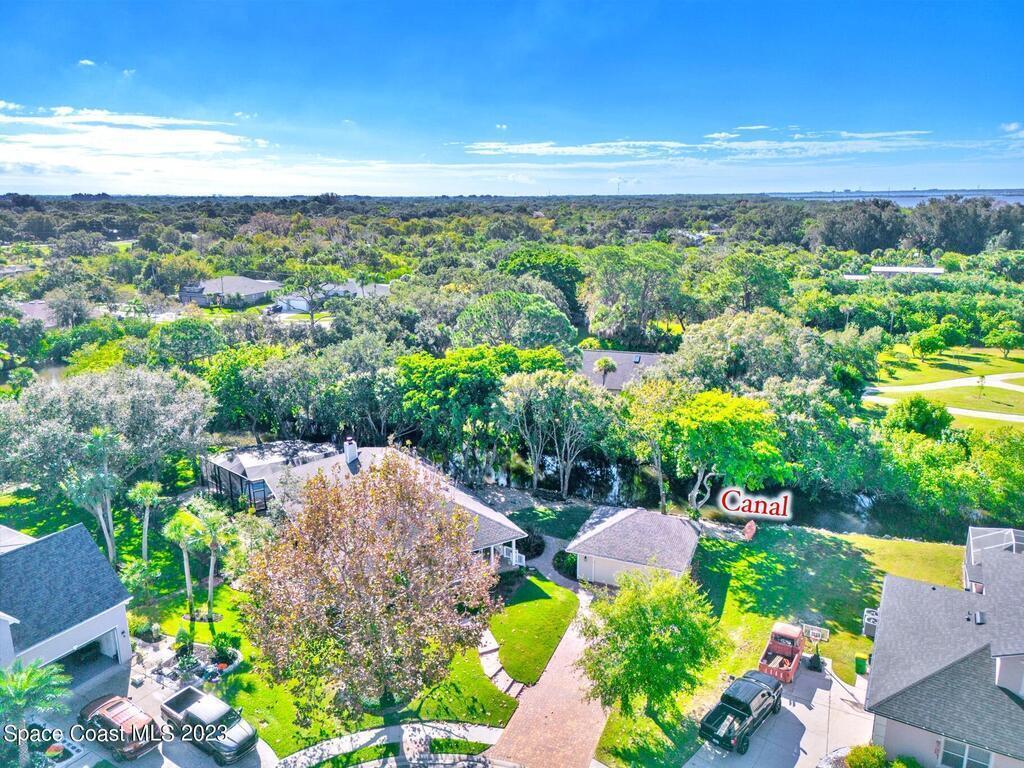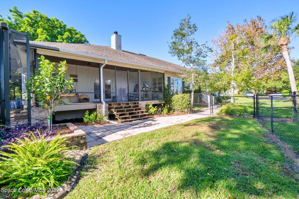 Stunning 4 bedroom 2 bath pool home on navigable canal leading to the Indian River Lagoon! Located at the end of a cul-de-sac on a 0.63 acre lot; this remodeled home features a spacious wraparound porch with water views, detached 2-car garage with new insulated door, new A/C, new wood-look tile throughout, new pool pump for saltwater pool, new gutters, new sprinkler system and more. The completely renovated kitchen boasts quartz counters, soft close cabinets and drawers, high-end appliances, pantry, coffee bar and large center island. Master suite offers large walk-in closet, porch and pool access, luxe bath including double vanities with water view, private toilet and tiled shower. Paddleboard to the river directly from the sizable yard or launch a boat at the community ramp and dock!