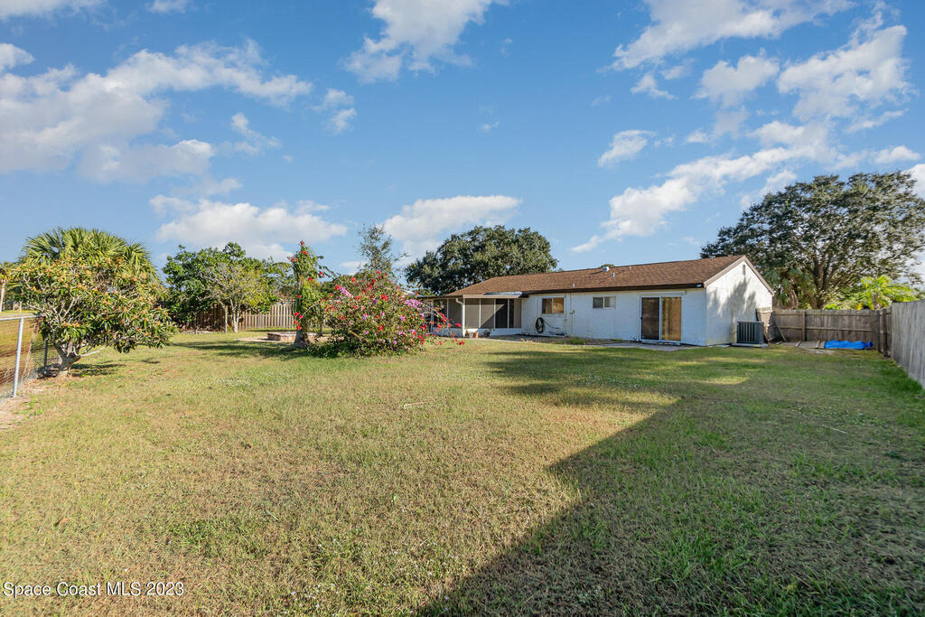 For sale: A charming four-bedroom, two-bathroom family home in the heart of Palm Bay, Florida. This inviting residence features a spacious kitchen with modern appliances and an adjacent screened-in patio, ideal for outdoor enjoyment. The four bedrooms offer comfort and privacy. The large backyard, with dedicated trailer parking, is perfect for outdoor activities. Located in the vibrant community of Palm Bay, this home provides easy access to parks, restaurants, shopping, and excellent schools. Contact us today to schedule a viewing and make this your cherished home.