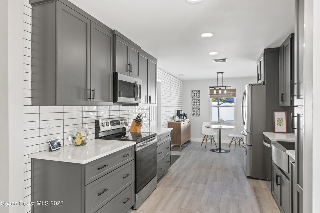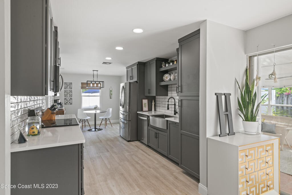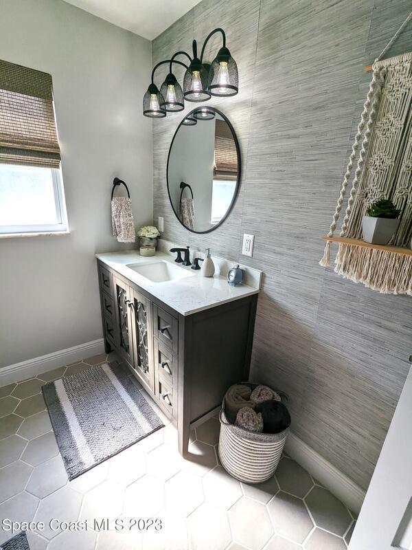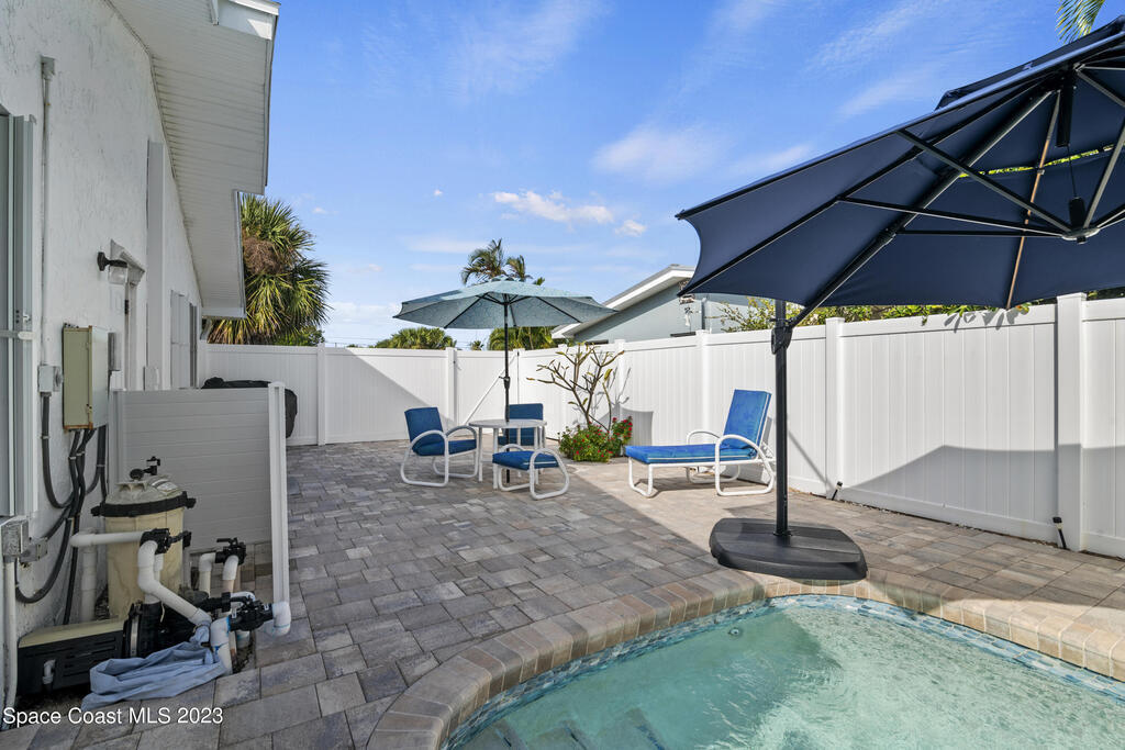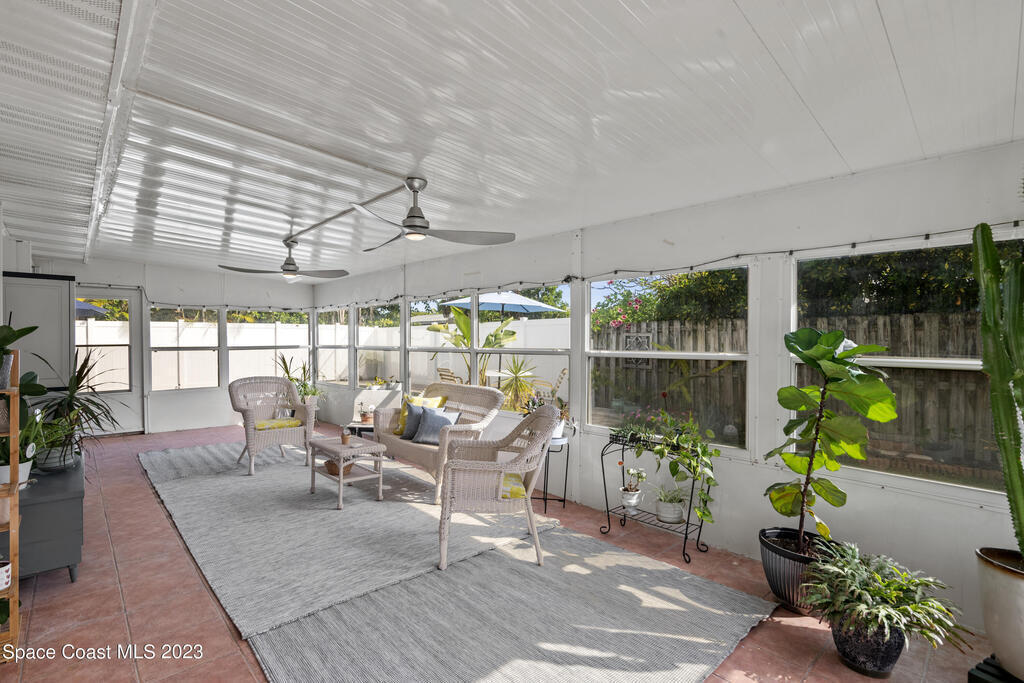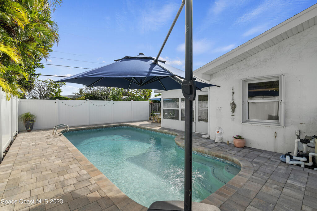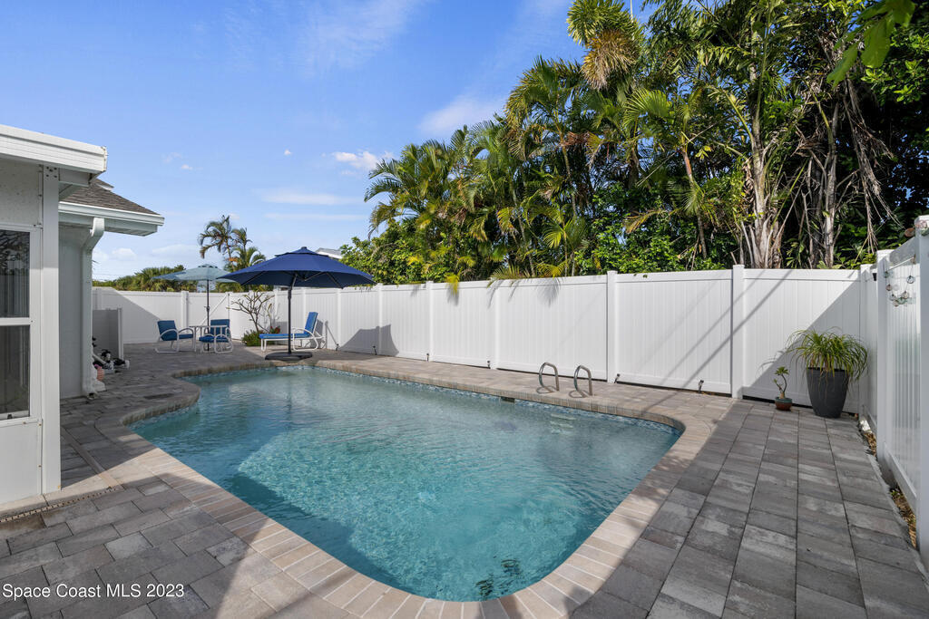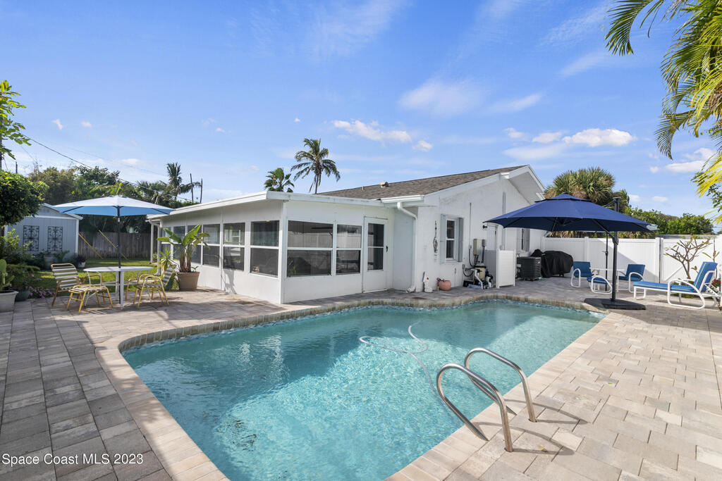 Discover coastal living in this 3/2 fully remodeled pool home, seamlessly blending modern updates with timeless beachside charm. Situated just a brief 4-minute stroll from the beach through the neighborhood's deeded access, this residence is a beach lover's dream.. The main living area of the home has wood style tile throughout. The kitchen is open and spacious, with stainless steel appliances, easy close upscale cabinets, quartz counter tops, pull out pantry shelves and bright tile work on the walls. The kitchen leads to a large Florida room with lots of windows to view a lushly landscaped yard and refreshing pool. The Pool has been resurfaced and updated with designer tiles and paver patio. The bedrooms are spacious enough for the master and 2nd bedrooms to fit