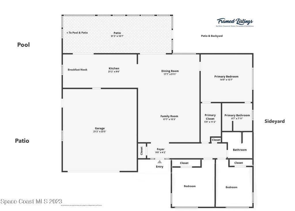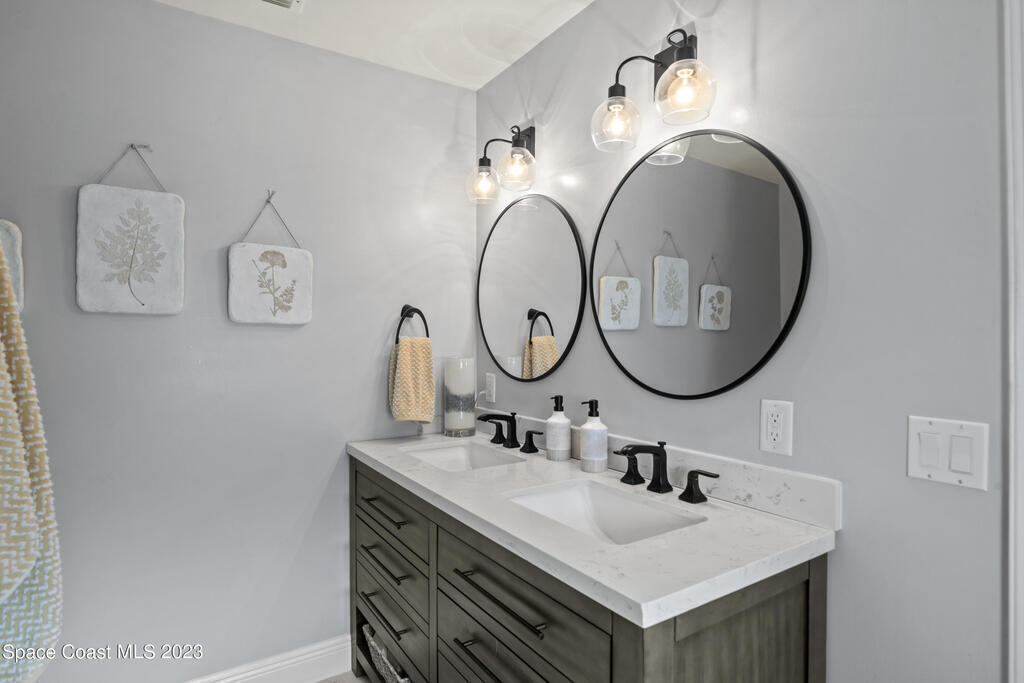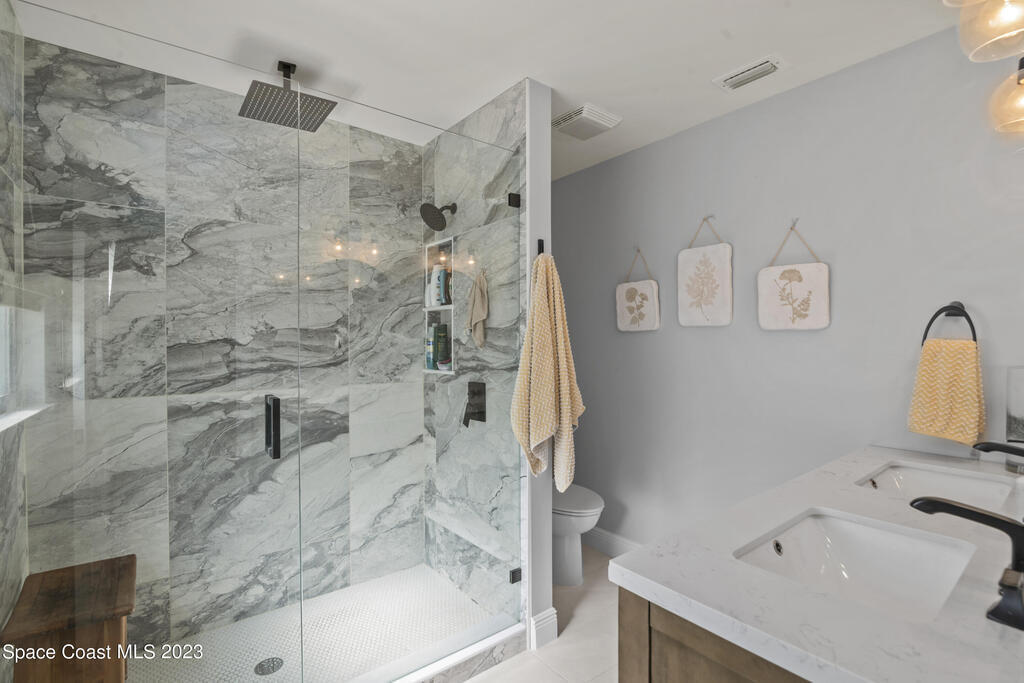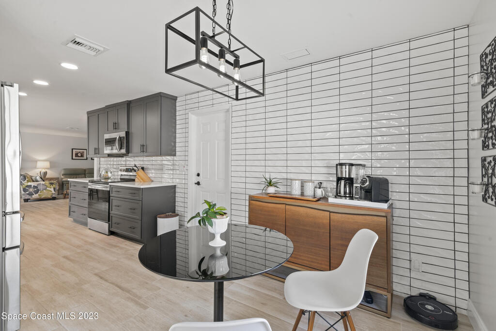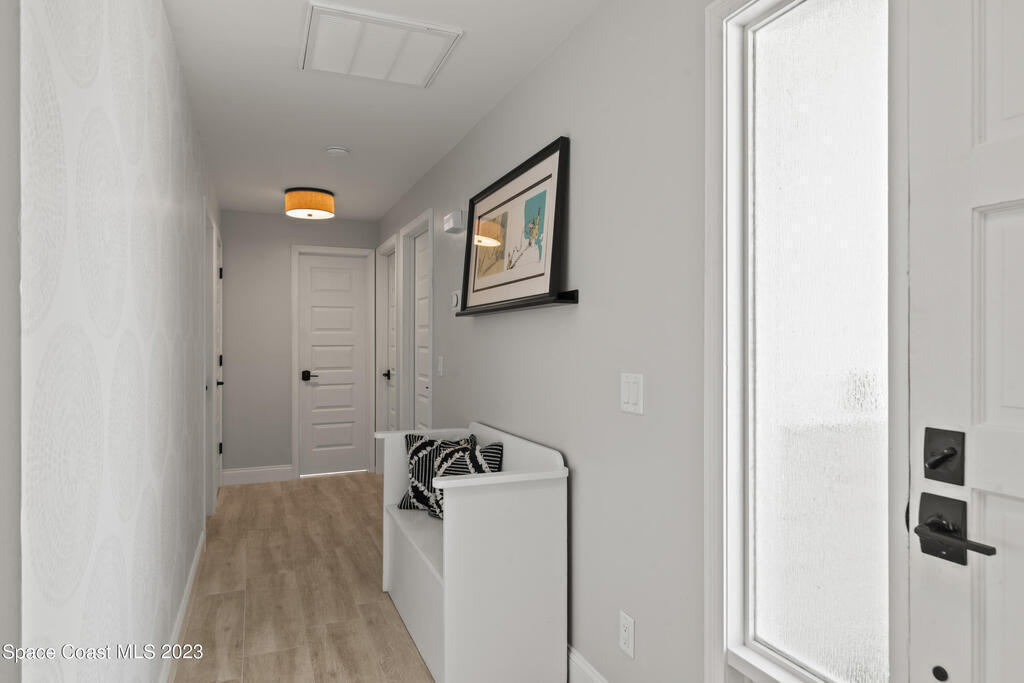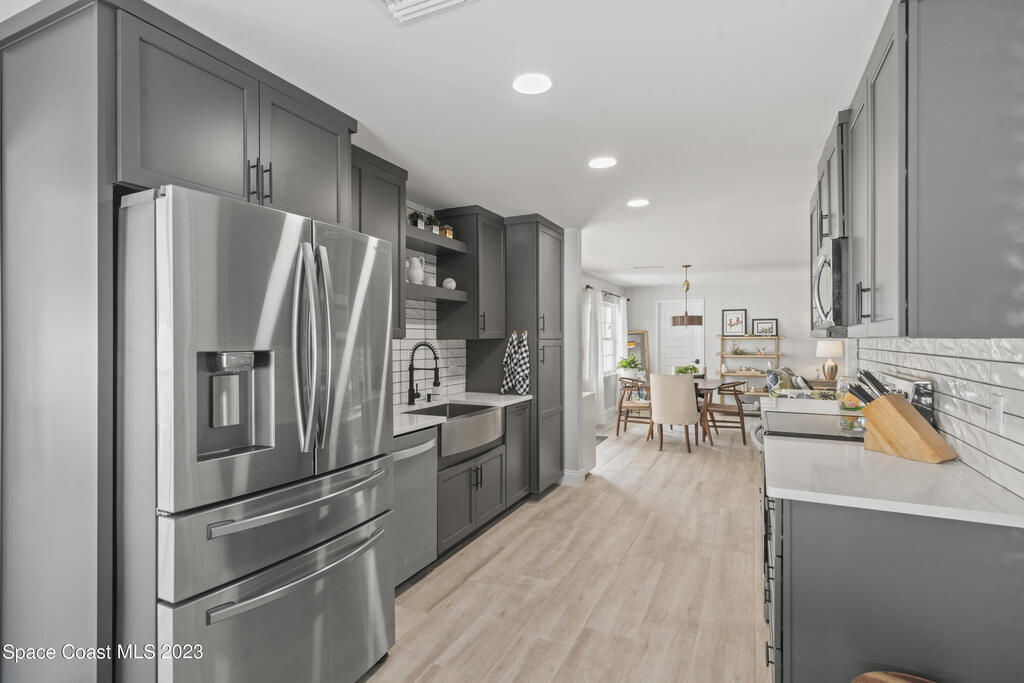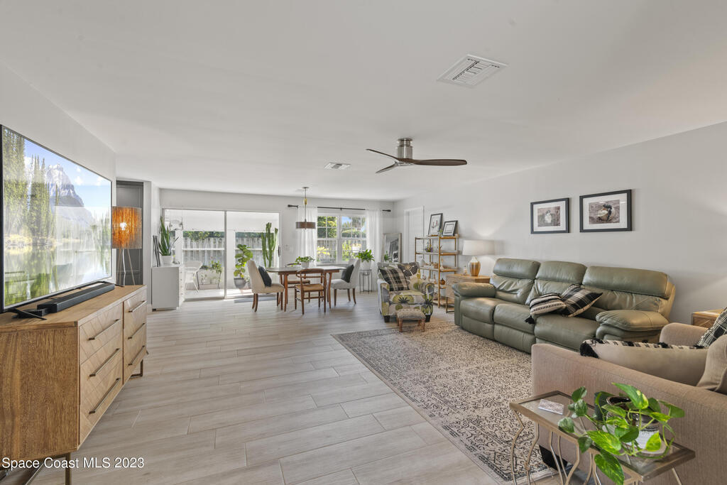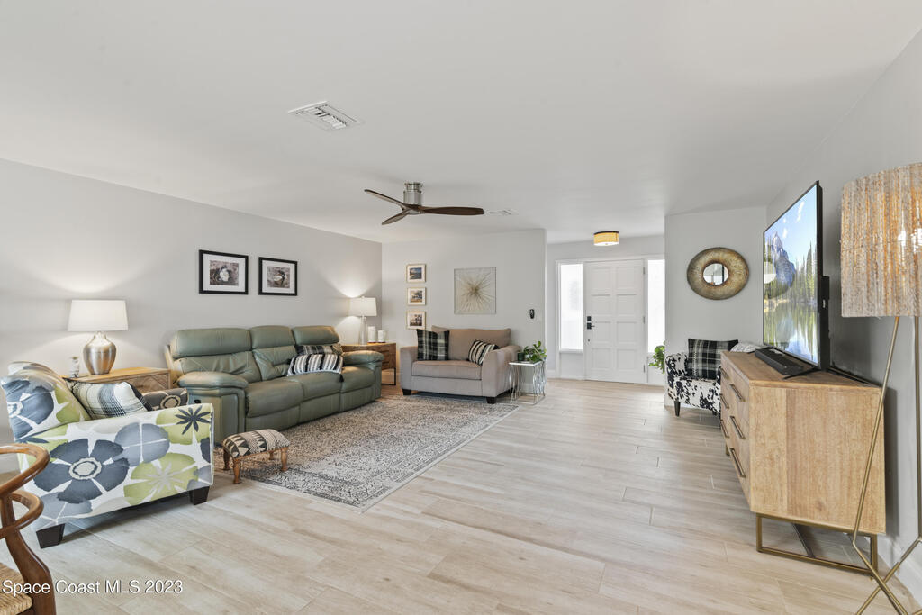 Discover coastal living in this 3/2 fully remodeled pool home, seamlessly blending modern updates with timeless beachside charm. Situated just a brief 4-minute stroll from the beach through the neighborhood's deeded access, this residence is a beach lover's dream.. The main living area of the home has wood style tile throughout. The kitchen is open and spacious, with stainless steel appliances, easy close upscale cabinets, quartz counter tops, pull out pantry shelves and bright tile work on the walls. The kitchen leads to a large Florida room with lots of windows to view a lushly landscaped yard and refreshing pool. The Pool has been resurfaced and updated with designer tiles and paver patio. The bedrooms are spacious enough for the master and 2nd bedrooms to fit