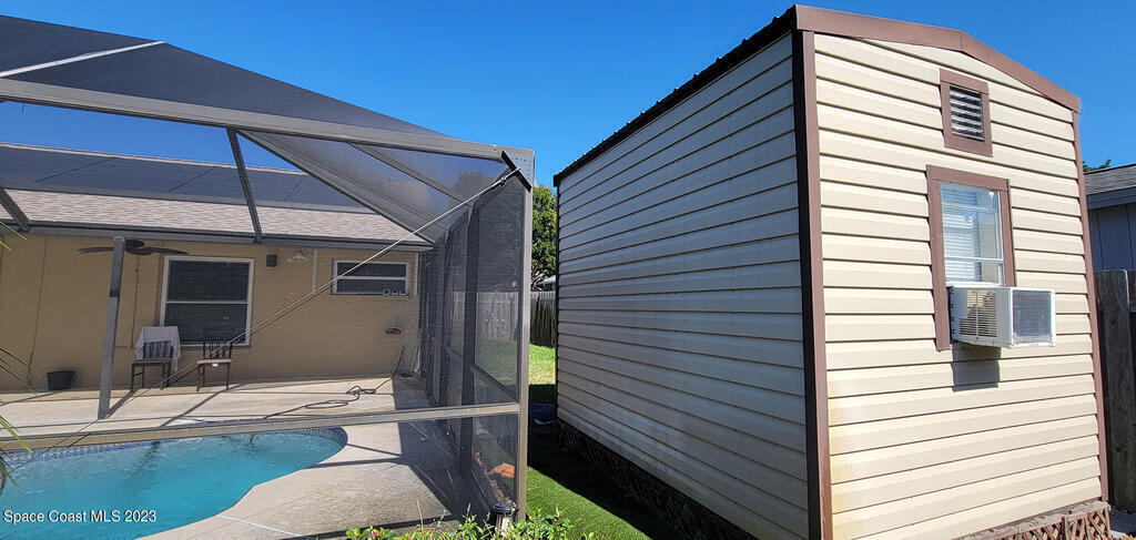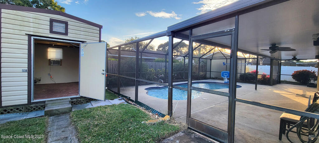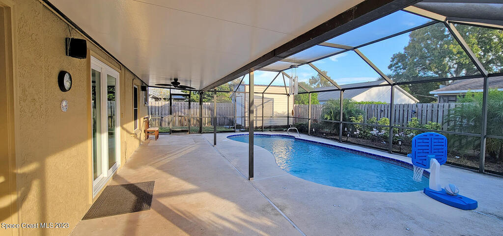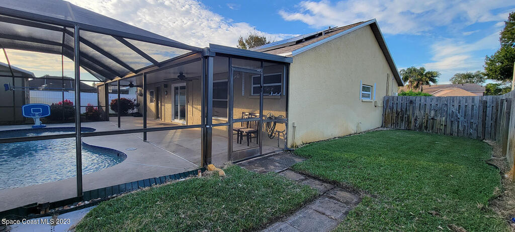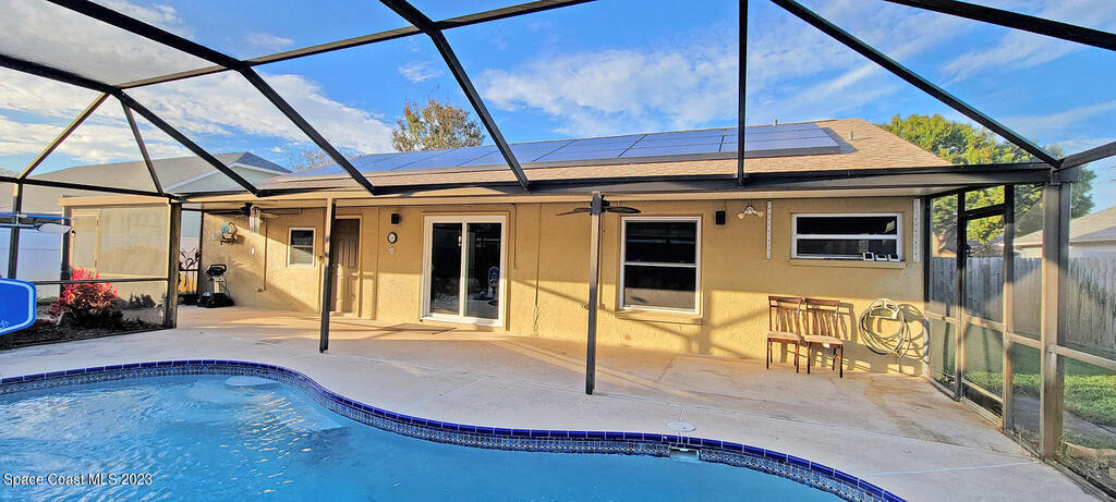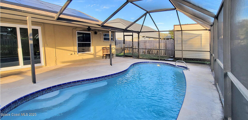 This Rockledge solar-powered home is great for enjoying life without the worry of high electric bills. Float or play in the sunny pool; fire up the grill in your massive screened enclosure, have fun doing your favorite hobby in the carpeted, air-conditioned shed; and enjoy movies or play video games in the flex room (can also be a 4th bedroom)! This home features a ton of updates/upgrades, including a suite of LG smart kitchen appliances (2022), 2019 roof, solar added in 2022, new double-pane windows (2019), and a hurricane-rated living room slider and garage door (2021).This great home is located in a quiet, established Rockledge neighborhood with sidewalks, but no HOA! Come check it out today!
