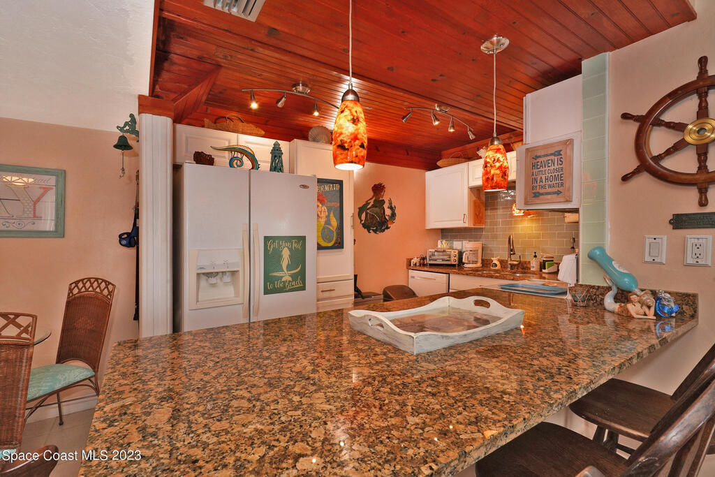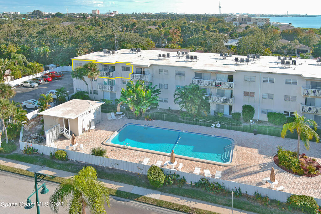 CORNER UNIT, FURNISHED WITH A COASTAL THEME AND READY FOR YOU! This 3 BEDROOM unit is on the third floor of The Plaza, and easily accessible from the elevator or exterior stairs. You'll love the pool view from your balcony and enjoy watching rocket launches and cruise ships go by! Owners are sad to part ways, but this is a great opportunity for you to own a piece of paradise in Cape Canaveral. The kitchen boasts a beautiful wood shiplap ceiling, granite tops, white cabinets and is open to the living area. The layout is a split plan and the rooms have lots of closet space. the AIR CONDITIONER AND WATER HEATER ARE BRAND NEW! And the HOA installed the membrane roof about 5 years ago. This is a lot of condo for the price!