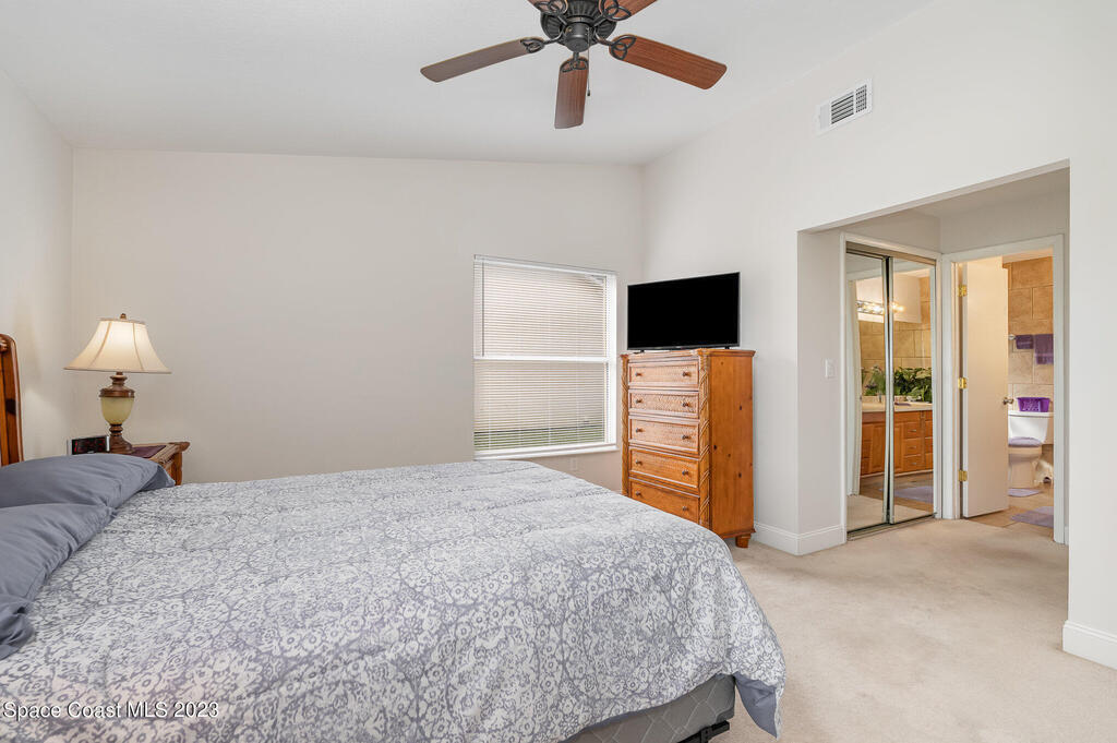 This home has been lovingly cared for over 30 years and is now looking for it's new owners. Main living and dining area features a cozy fireplace and double French doors to a considerable outdoor living space where you can enjoy privacy and the natural beauty offered by the enormous pond. New paint throughout the entire house including ceilings & the 5 1/4 baseboards All new outlets and switches. New blinds & windows replaced in 2006. Exterior was re-stucco and painted in 2013 and features gutters and new landscaping. Roof & HVAC was replaced in 2019 and hot water heater in 2020. Primary suite has sliders to screened patio, walk in closet, & dual sinks. Guest suite also features sliders for private access to outdoor space. Move in ready!