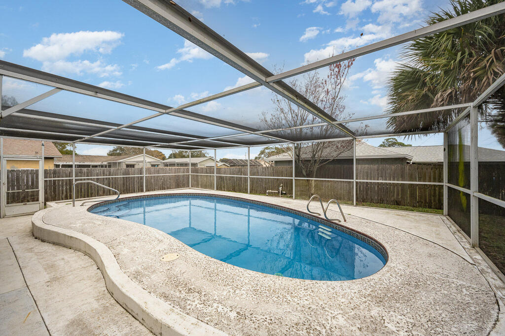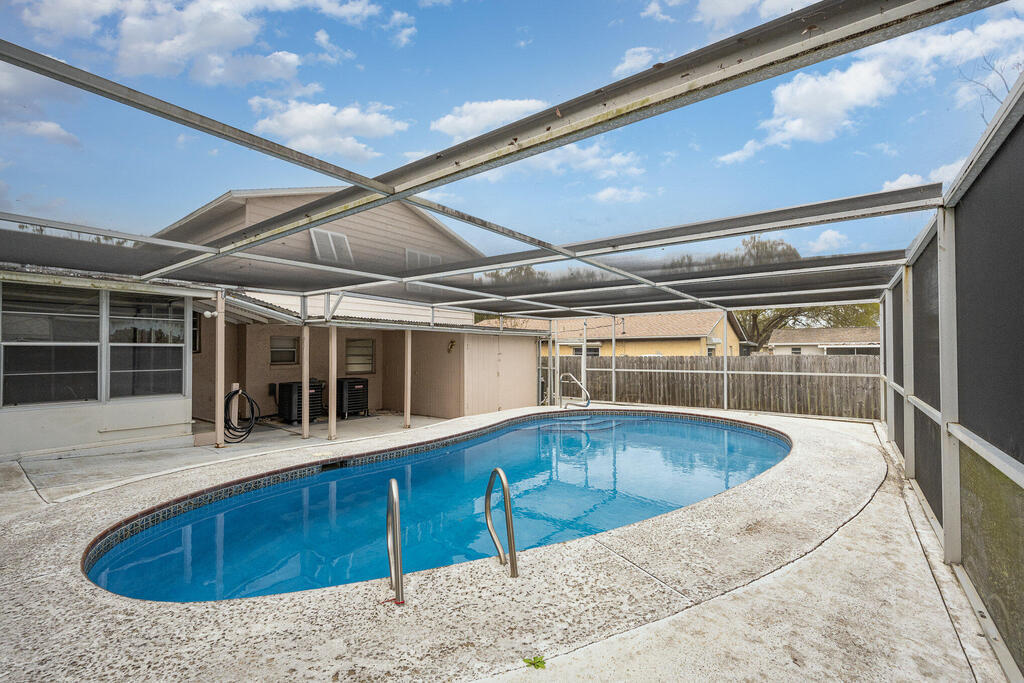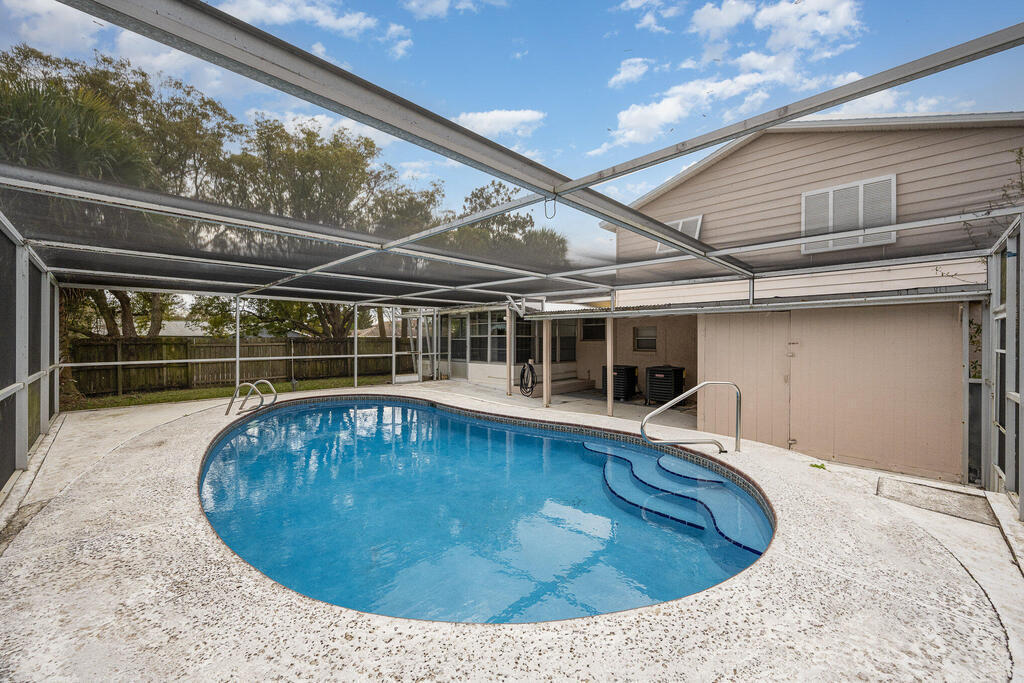 Pool home for only $310,000 in the well sought after Woodsmere neighborhood in Rockledge on a corner, fenced lot. Updated kitchen & bathrooms this year! New soft-close cabinets & granite countertops in kitchen & 3 bathrooms! New sinks, mirrors, medicine cabinets, faucets & lighting in all baths as well as new toilet in owners bath. Freshly painted interior, new interior doors & brand new carpeting in bedrooms and hallways; tile flooring in the rest of the home. Put your own personal touches on this great family home to make it your forever home; all the big ticket items are done for you! Lots of space inside and out. Entertain your family and friends in the screened-in pool area & 3-season room. Freshly cleaned & painted two car garage and shed in pool area provide plenty of storage for all of your pool equipment & toys! No HOA!