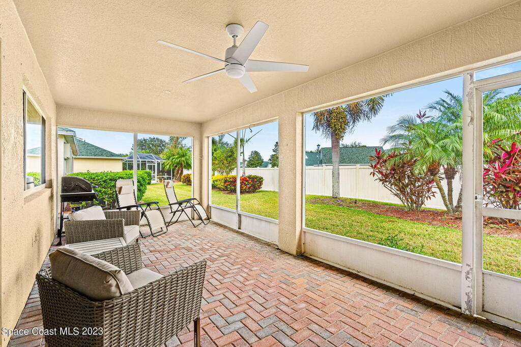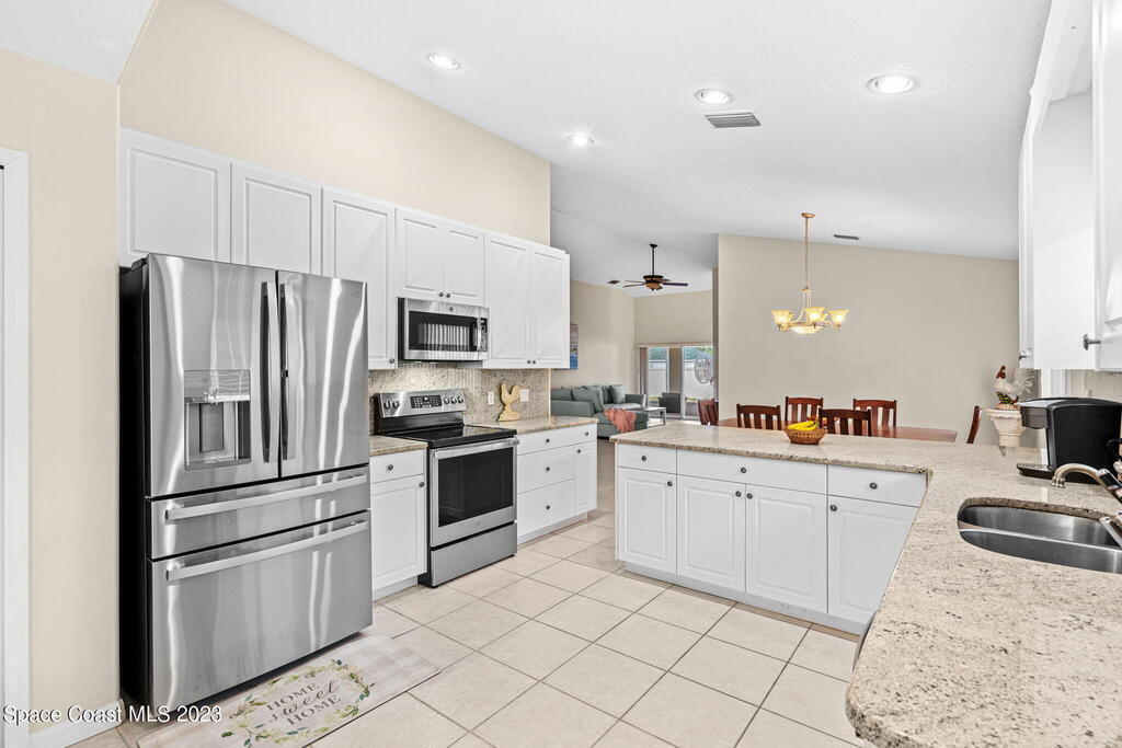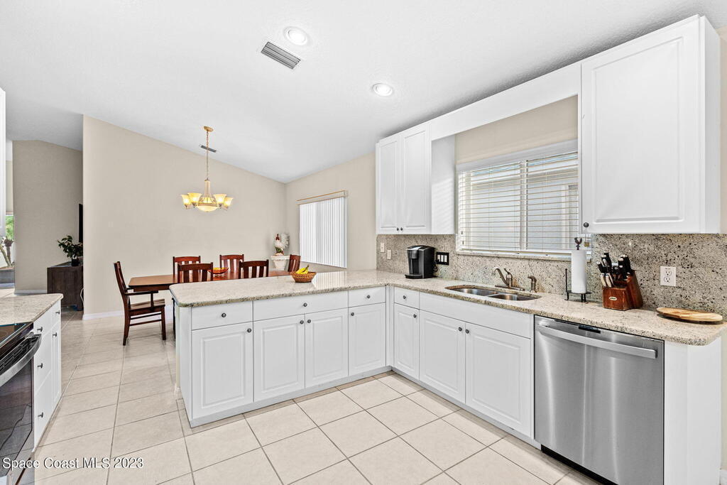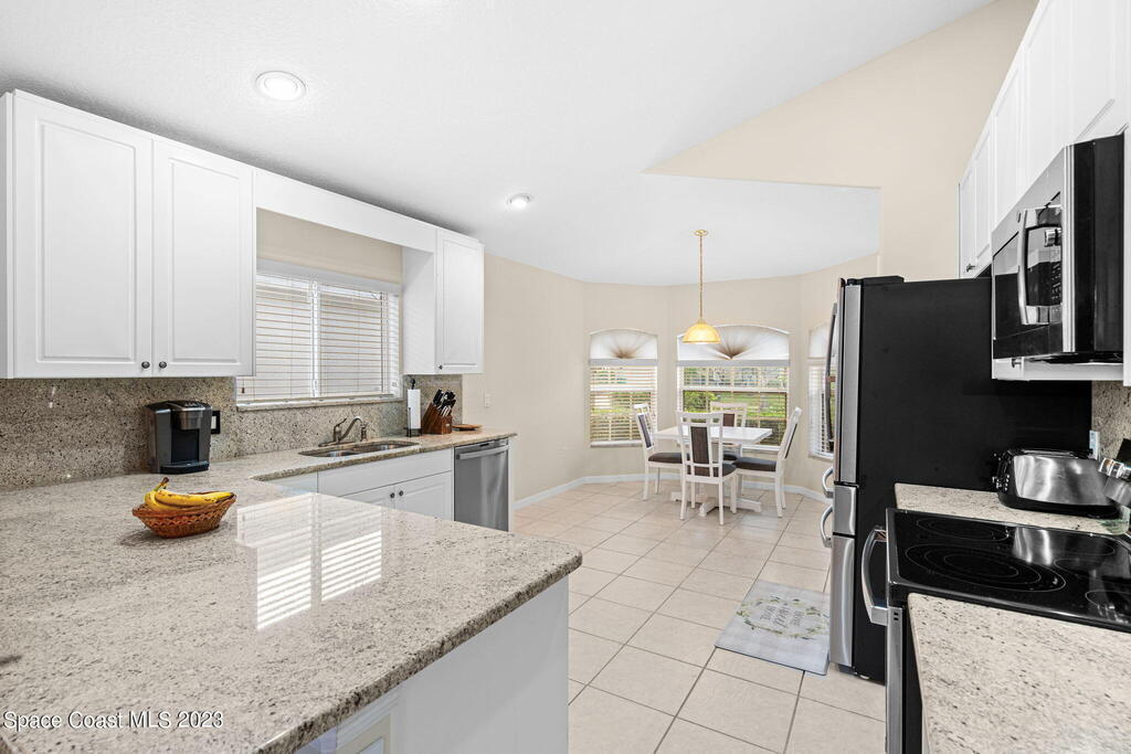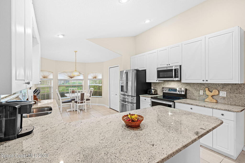 Discover Pine Creek, an active 55+ gated community in Melbourne. As you enter, the light and airiness of this home will embrace you w/its vaulted ceilings which accentuate the openness. The kitchen haven is complete with/ granite countertops & backsplash, all-white cabinetry & new Top-of-the-line stainless steel appliances. Enjoy casual meals in the eat-in kitchen or entertain in the more formal dining area. The tiled living space brings you to a split floorplan, while the primary bedroom boasts a spacious walk-in shower, double sinks & walk-in closet. Entertain guests or just relax on the screened paver lanai. This home offers low-maintenance living with a new roof in 2020, lawn & landscaping, & exterior paint every 8 years, plus internet/cable fees covered by the HOA! Community
