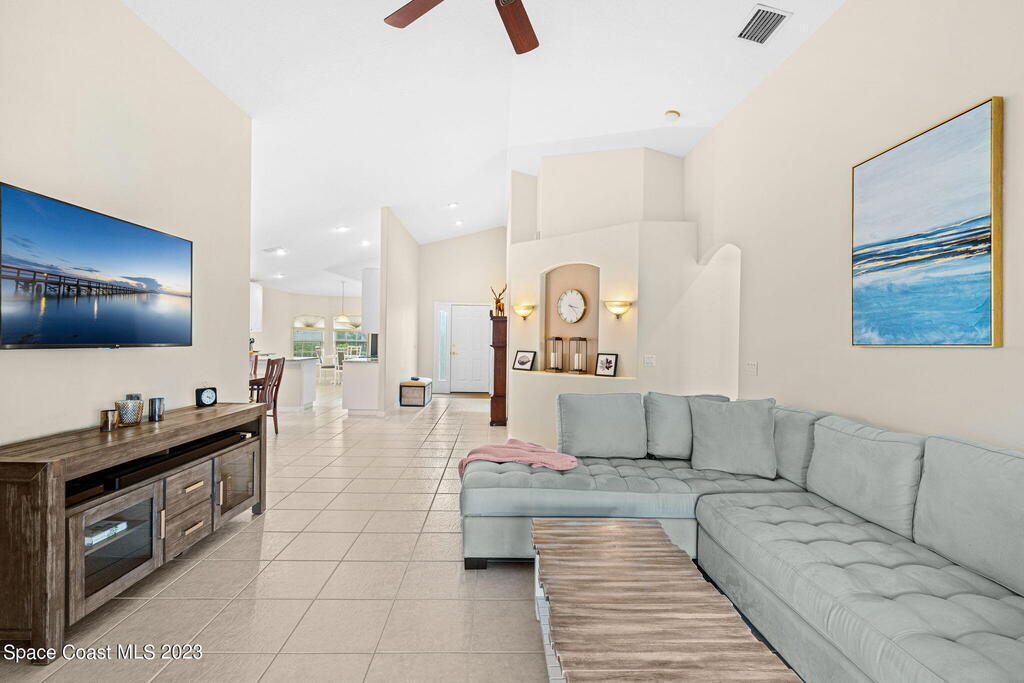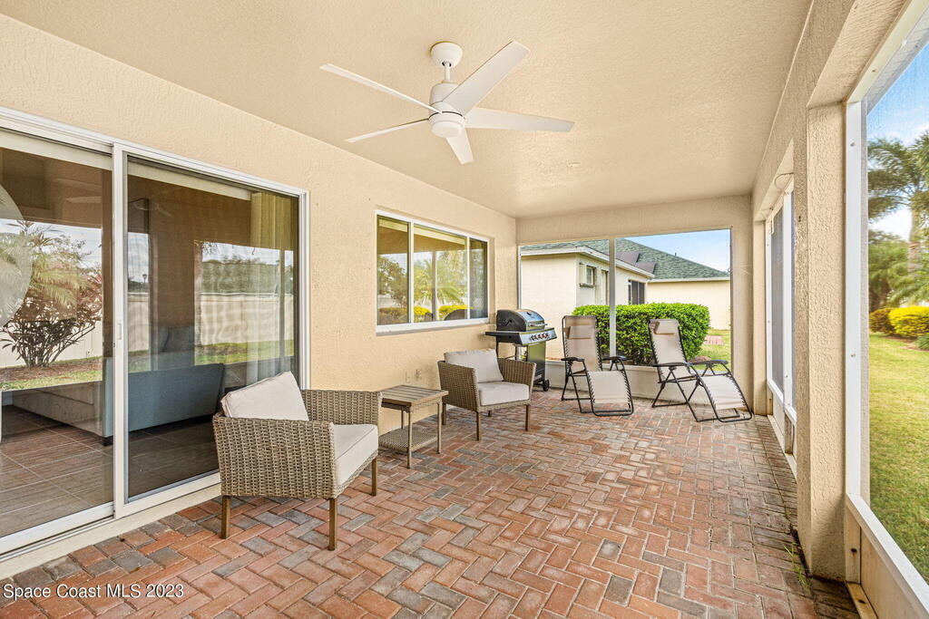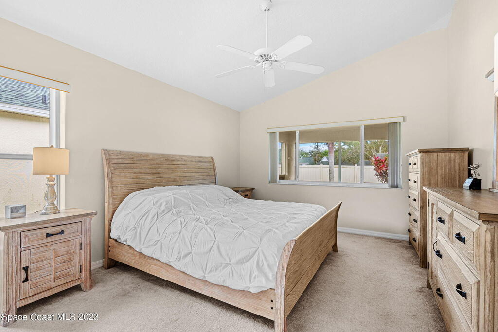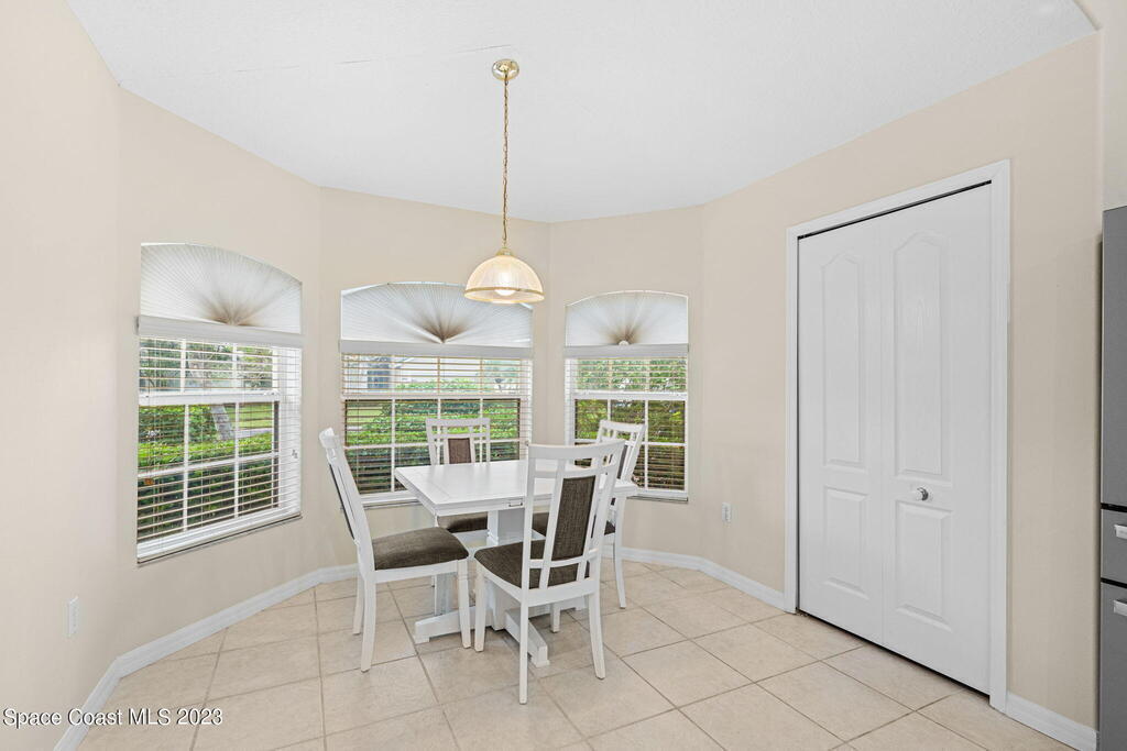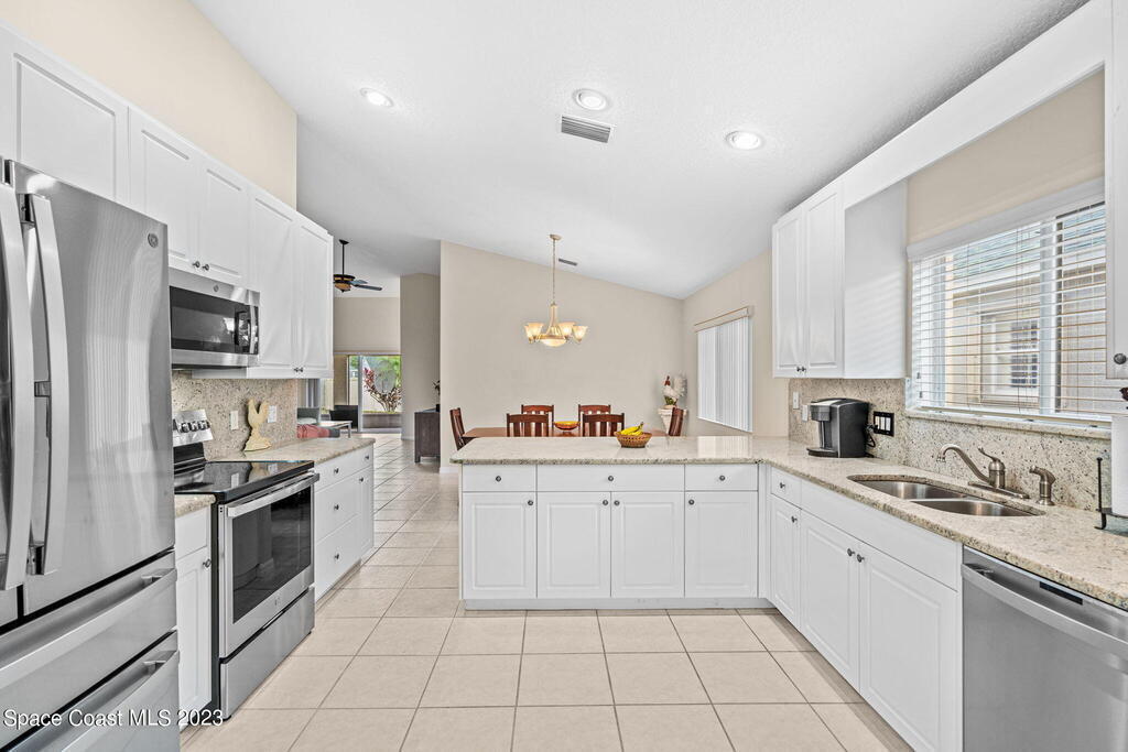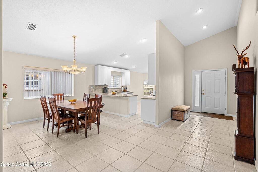 Discover Pine Creek, an active 55+ gated community in Melbourne. As you enter, the light and airiness of this home will embrace you w/its vaulted ceilings which accentuate the openness. The kitchen haven is complete with/ granite countertops & backsplash, all-white cabinetry & new Top-of-the-line stainless steel appliances. Enjoy casual meals in the eat-in kitchen or entertain in the more formal dining area. The tiled living space brings you to a split floorplan, while the primary bedroom boasts a spacious walk-in shower, double sinks & walk-in closet. Entertain guests or just relax on the screened paver lanai. This home offers low-maintenance living with a new roof in 2020, lawn & landscaping, & exterior paint every 8 years, plus internet/cable fees covered by the HOA! Community