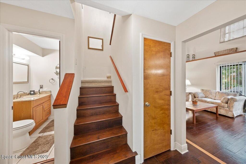 This Weston Park Townhome is Located across the street from Wickham Park where Brevard County's most celebrated Festivals, Fairs, Concerts & Art Shows take place. A 2 Bedroom 2 Bath home is designed with an open floor plan and both bedrooms located upstairs. Kitchen holds stainless steel appliances and open concept. Hardwood Floors and Tile throughout 1st floor areas. The 1 Car Garage has ample driveway space for 2 additional vehicles. Low HOA includes a community pool, lawn & landscaping. Home has natural gas connected and is close to the Beaches, Indian River Lagoon, Restaurants, Shopping & I95. One of the most desirable neighborhoods in all of Melbourne. AC 2021 ROOF 2014 WH-TANKLESS