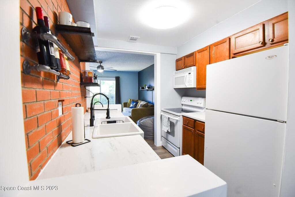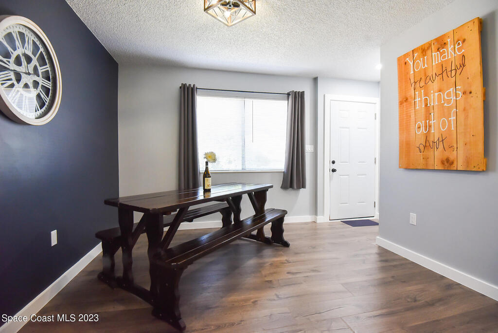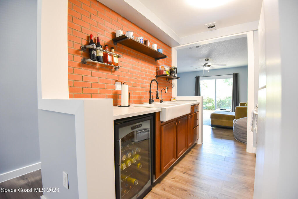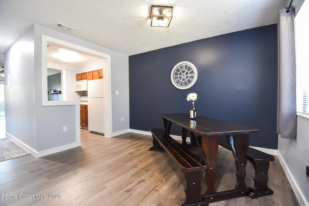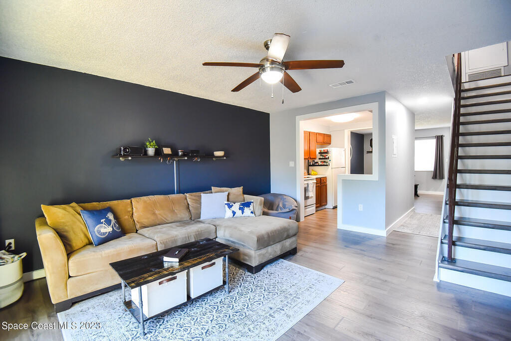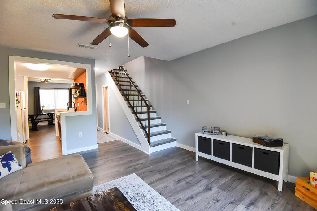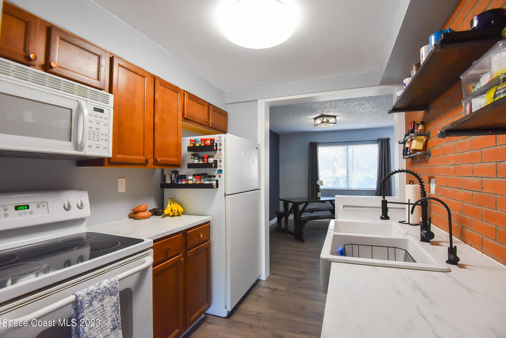 UPDATED TOWNHOME IN THE HEART OF TITUSVILLE! This 2 bedroom, 1.5 bath home features wood flooring throughout and ready for new owners! Updated kitchen with newer cabinetry, counters, and more. Brick wall accents the modern shelving, with open floor plan to the dining & living areas. Foyer entry opens to the large dining room, while a walk down the front hall passes the updated half bathroom and walk-in pantry! Large living area with new impact resistant sliding glass doors to the back patio & backyard perfect for entertaining! Upstairs features a primary bedroom with 2 closets, a large 2nd bedroom, and a centrally located and updated full bathroom in between! LOW HOA INCLUDES CABLE TV! NO RENTAL RESTRICTIONS! Community features a pool, located close to shopping, dining, and entertainment