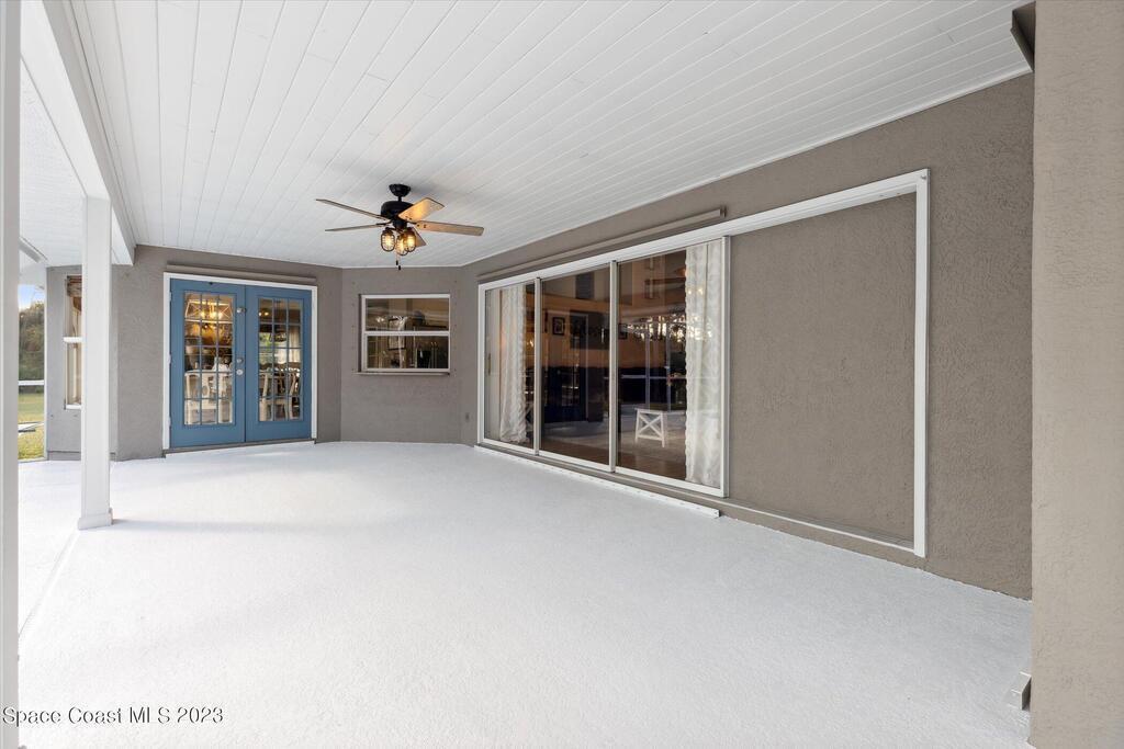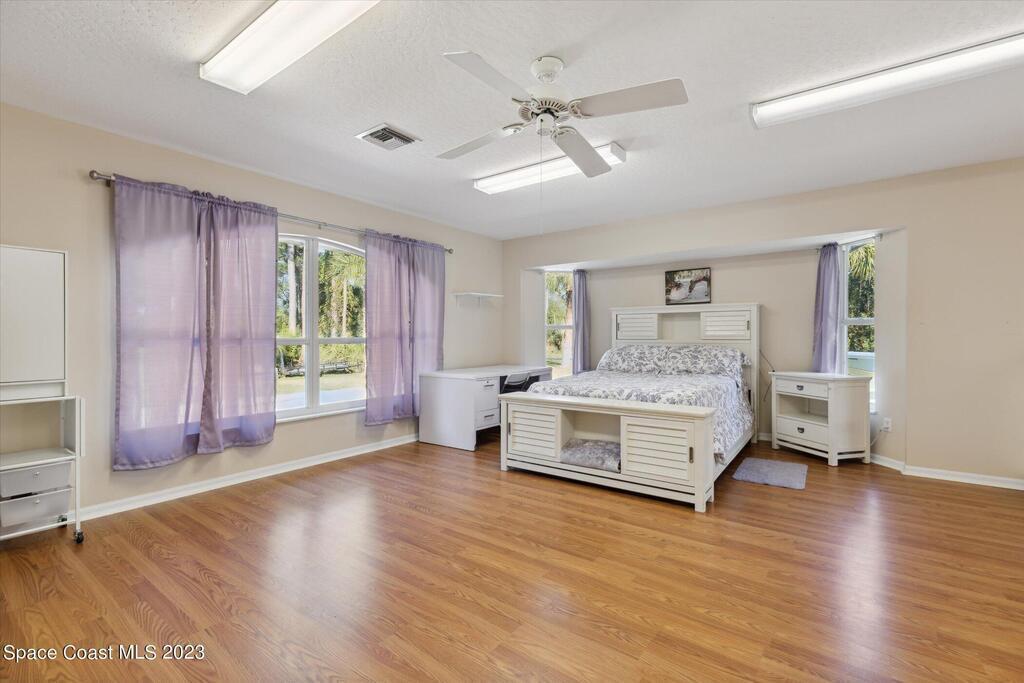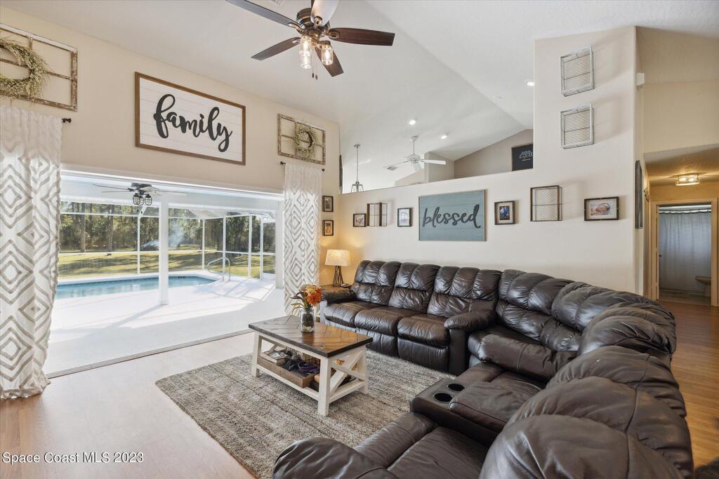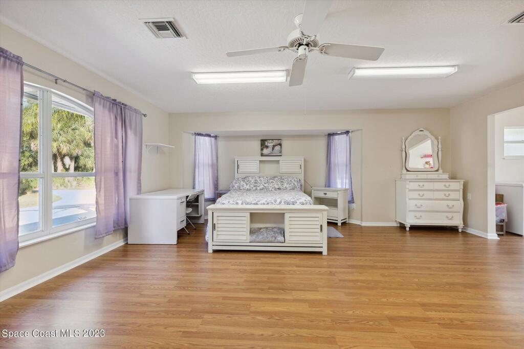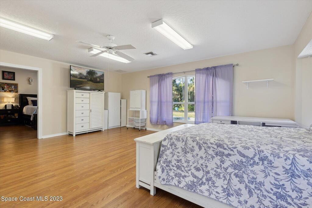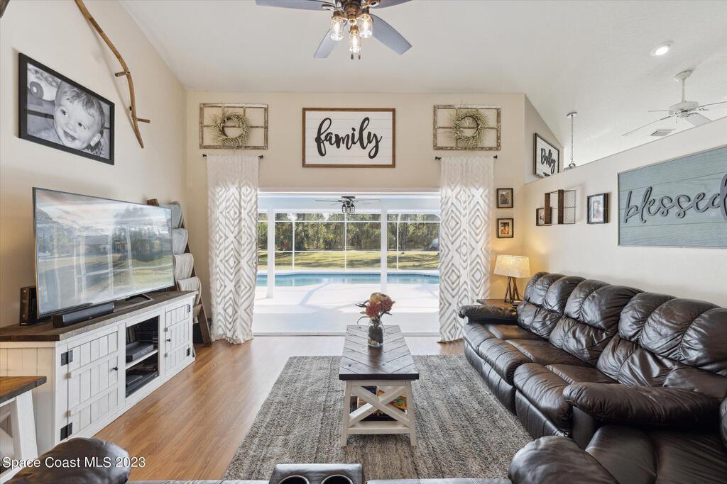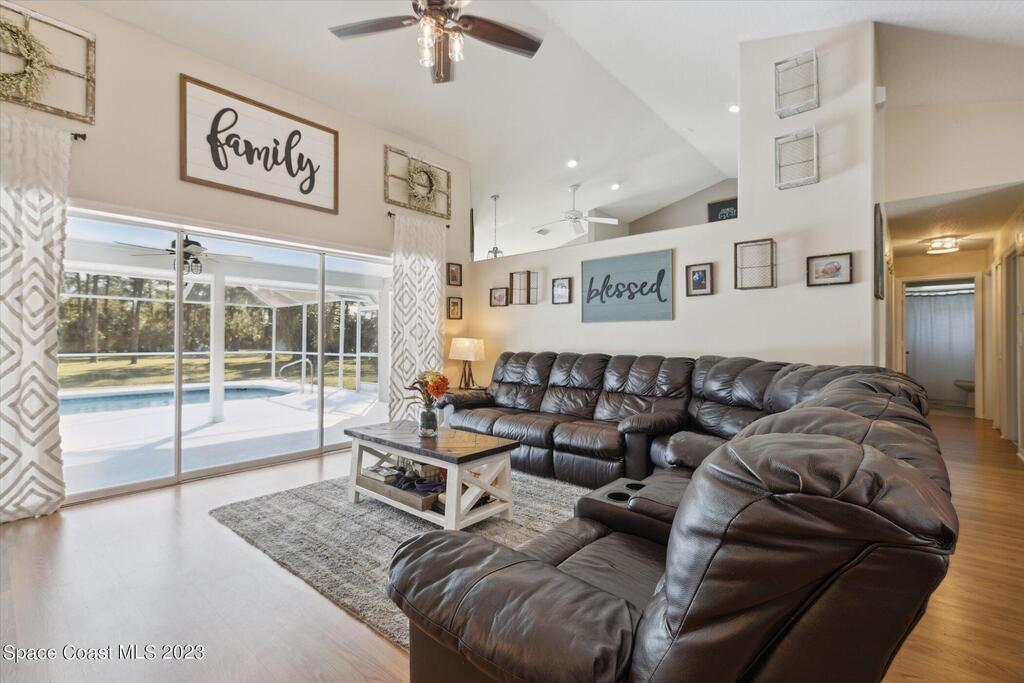 Price Reduced. Motivated Sellers, Bring Offers! Country living- bring your horses and boat! This 4 bedroom, 3 bathroom house sits on 3 acres in Grant with ample privacy. One mile from the Indian River and a quick drive to I-95. NO HOA! New exterior paint and gutters just completed. New roof in 2019, New AC in 2020, well pump replaced in 2022, and New Water Softener System in 2023.Screened in pool with newly installed tongue & groove ceilings allow for relaxation as you overlook the back 2 acres. Kitchen has plenty of storage with a breakfast nook. Separate Formal dining and living room. On the east side of the house is a large Master Suite or Mother-in-Law Suite. This has a separate entrance for convenience. Built-in garage shelving. Priced to sell this house will not last!