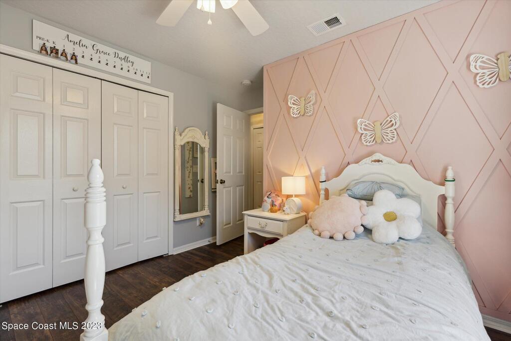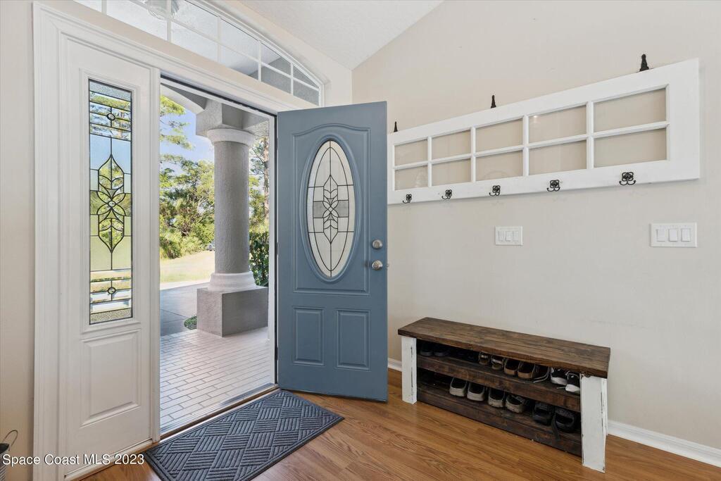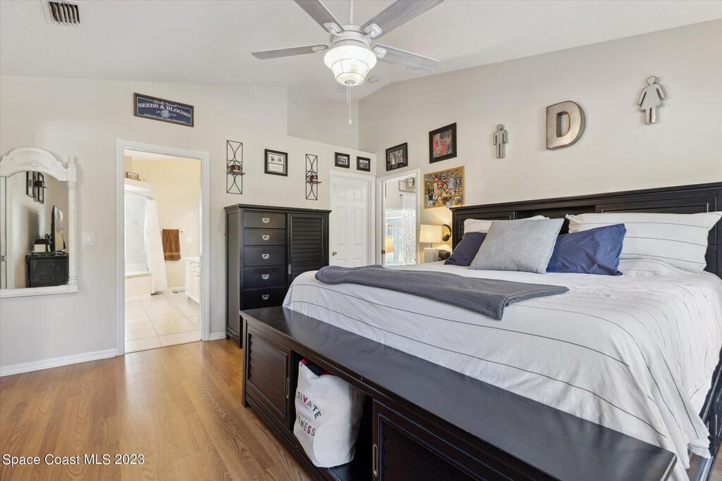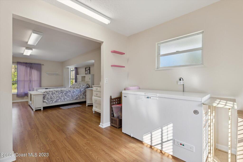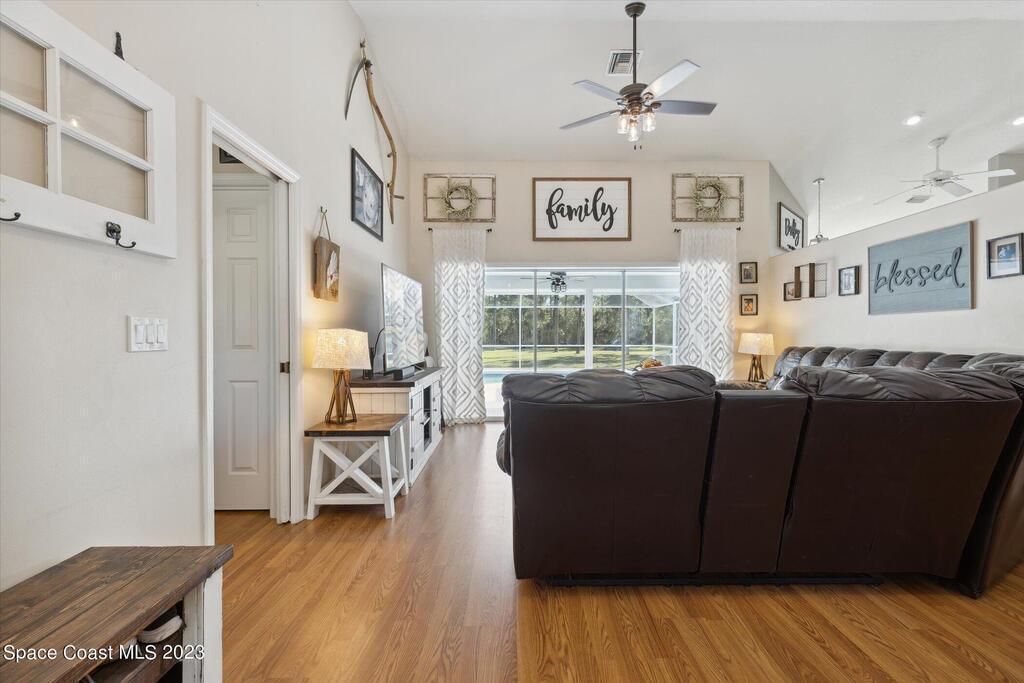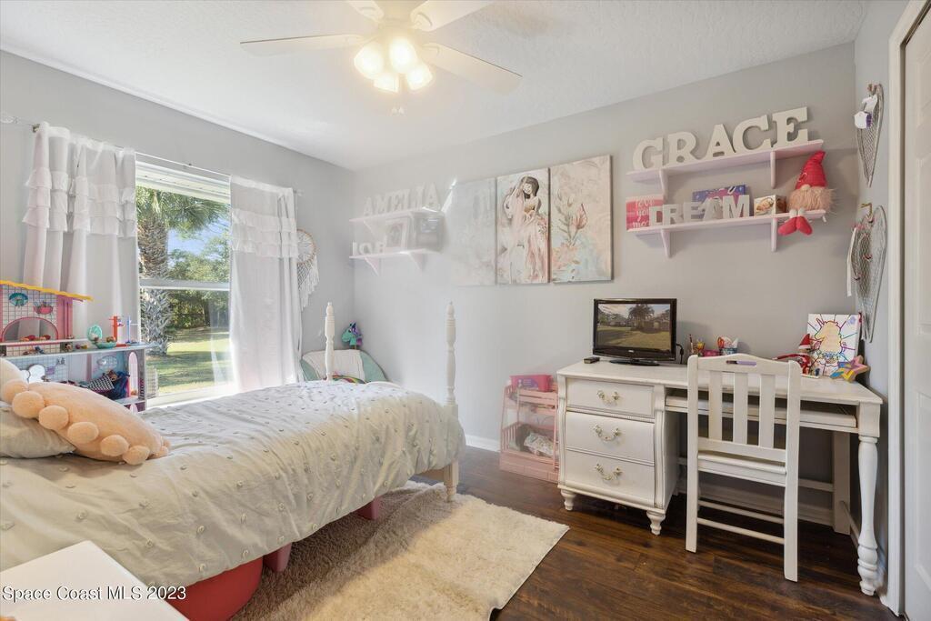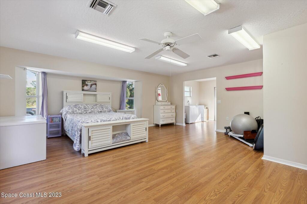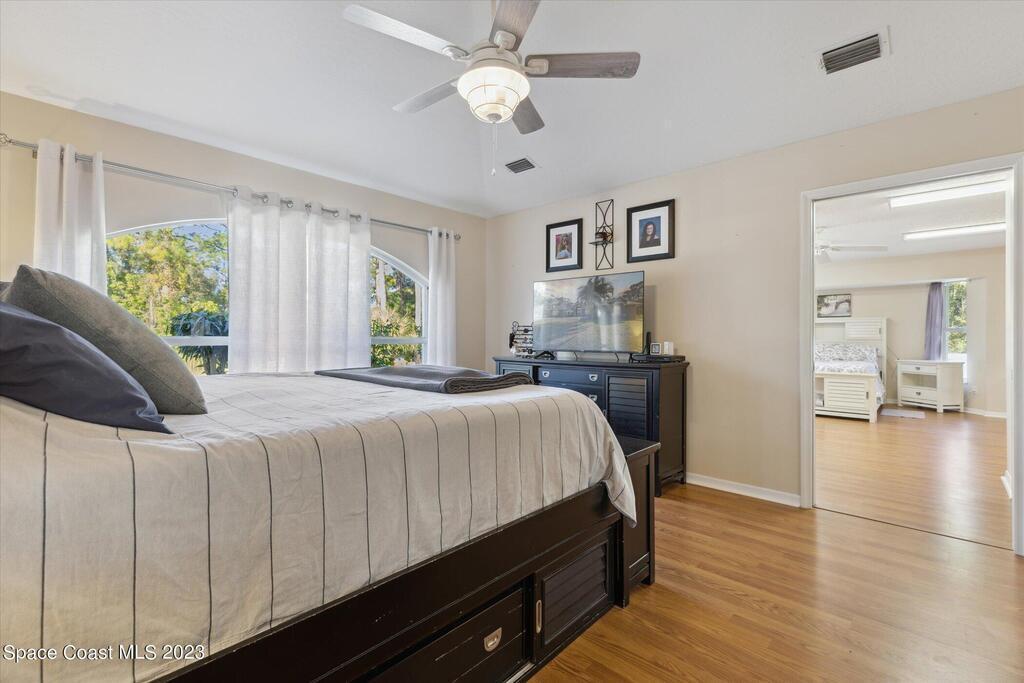 Price Reduced. Motivated Sellers, Bring Offers! Country living- bring your horses and boat! This 4 bedroom, 3 bathroom house sits on 3 acres in Grant with ample privacy. One mile from the Indian River and a quick drive to I-95. NO HOA! New exterior paint and gutters just completed. New roof in 2019, New AC in 2020, well pump replaced in 2022, and New Water Softener System in 2023.Screened in pool with newly installed tongue & groove ceilings allow for relaxation as you overlook the back 2 acres. Kitchen has plenty of storage with a breakfast nook. Separate Formal dining and living room. On the east side of the house is a large Master Suite or Mother-in-Law Suite. This has a separate entrance for convenience. Built-in garage shelving. Priced to sell this house will not last!