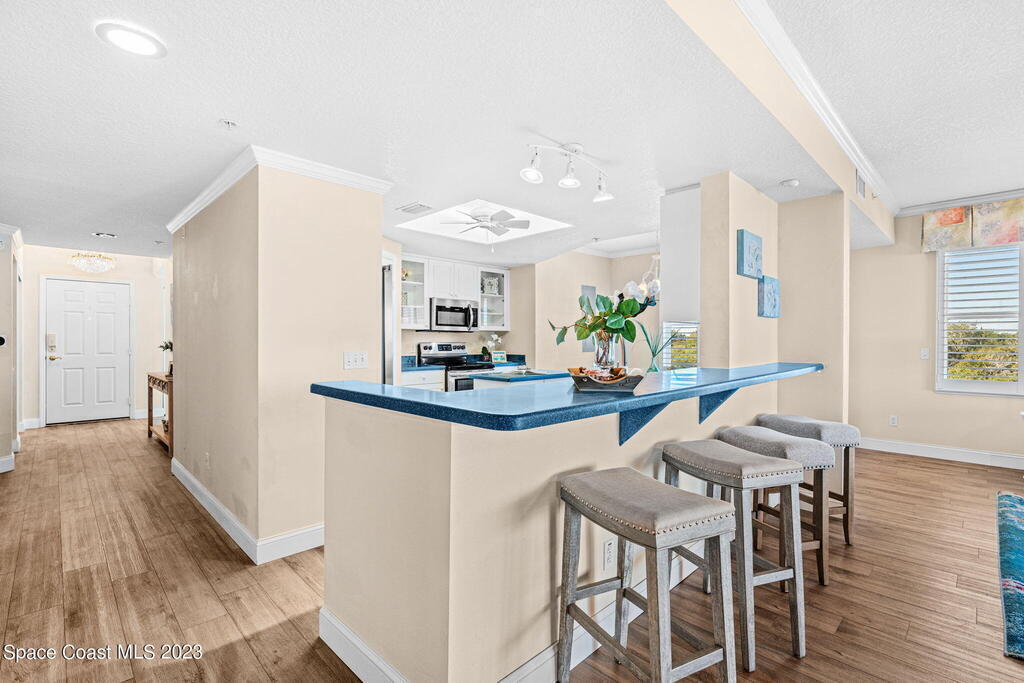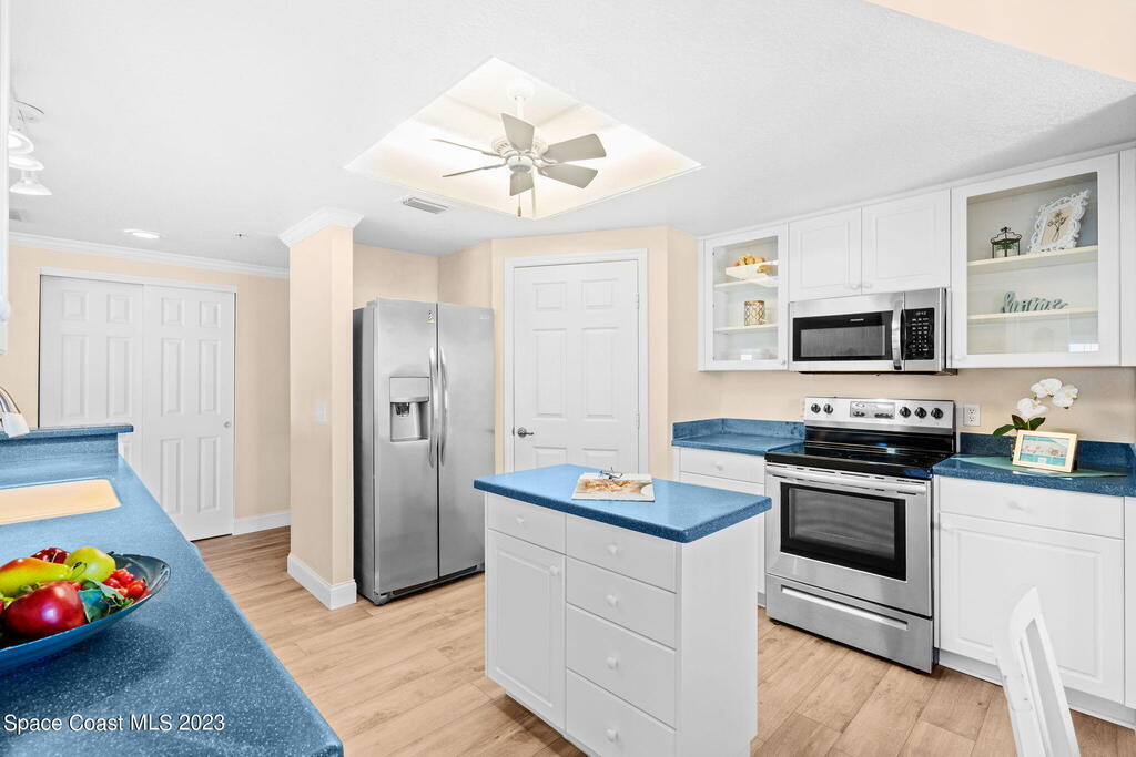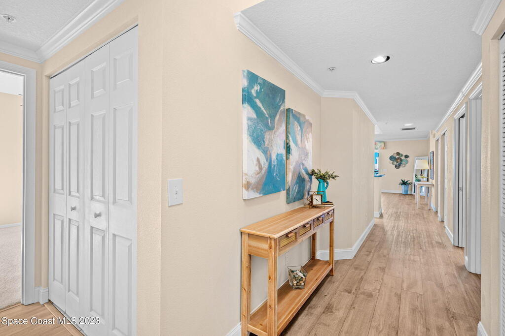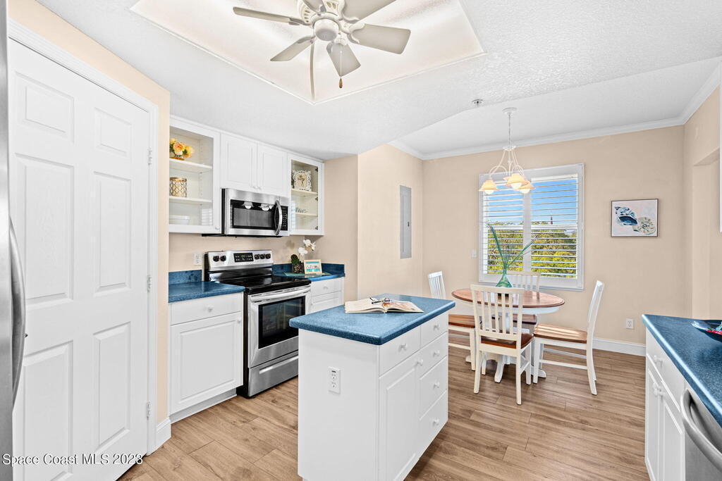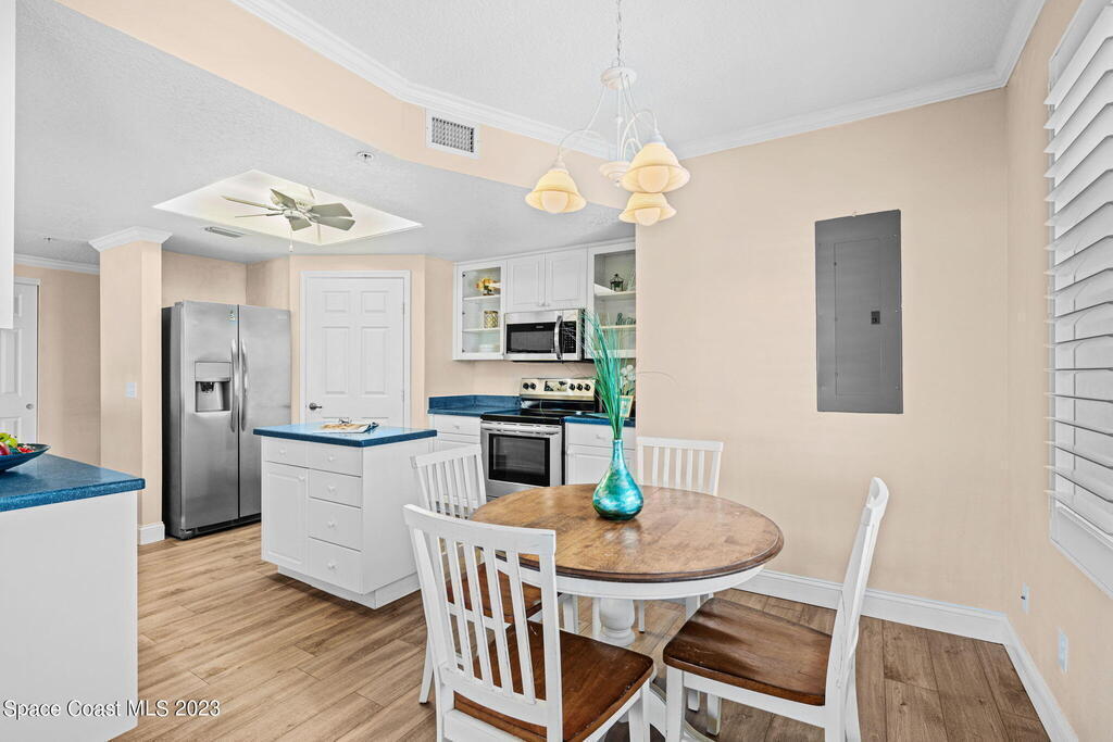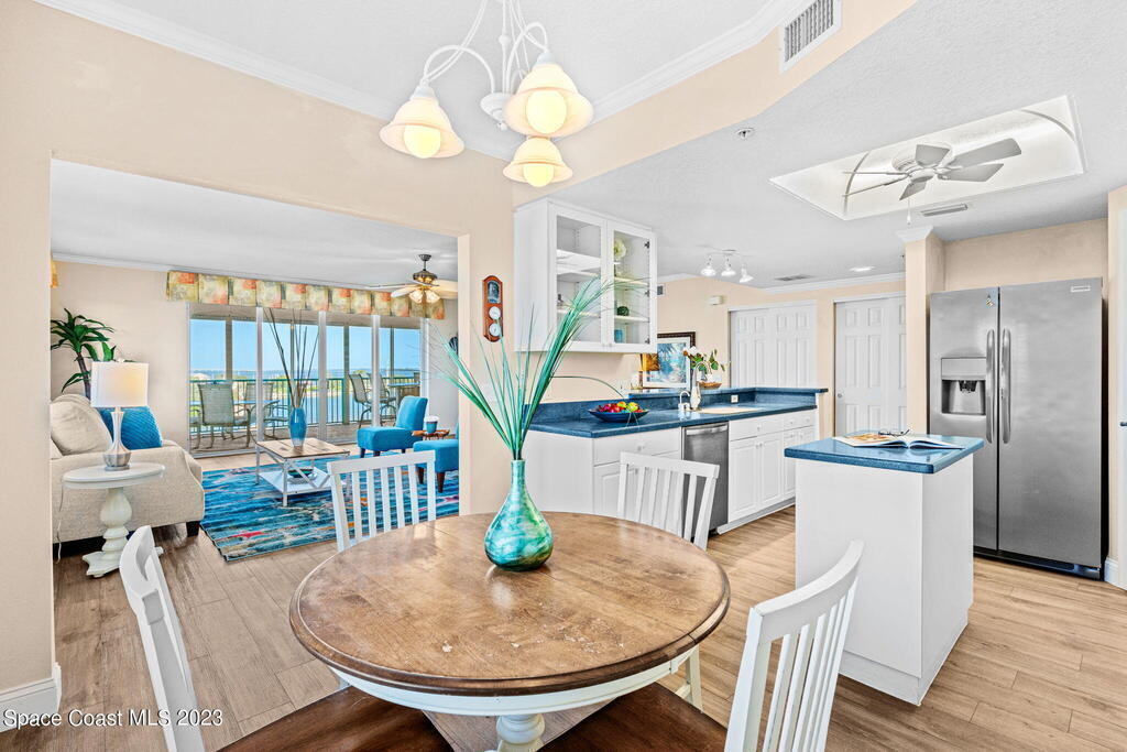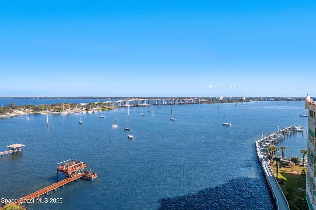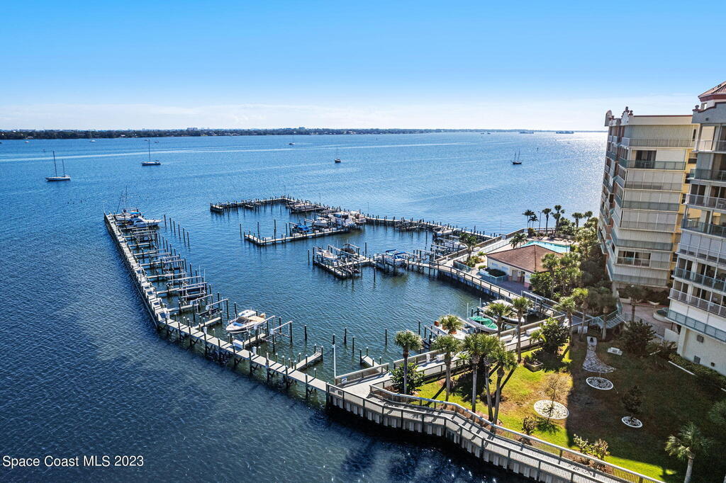 Perfectly positioned on the Indian River and a stone's throw away from Cocoa Village, Oleander Pointe offers luxury condo living. Step inside your end unit condo and enjoy a fabulous floorplan designed for modern living. Stunning views of the Indian River grace your spacious indoor and outdoor living areas. You'll enjoy incredible amenities, including your very own private boat slip. Spend time at the riverfront pool/spa, challenge friends in the game room, or socialize in the clubhouse. Additional amenities include a well-equipped weight room, picturesque riverfront boardwalk, and versatile sports court, perfect for tennis, basketball, shuffleboard, and pickleball. Convenience is paramount with a private garage located beneath the building, and a separate storage room.