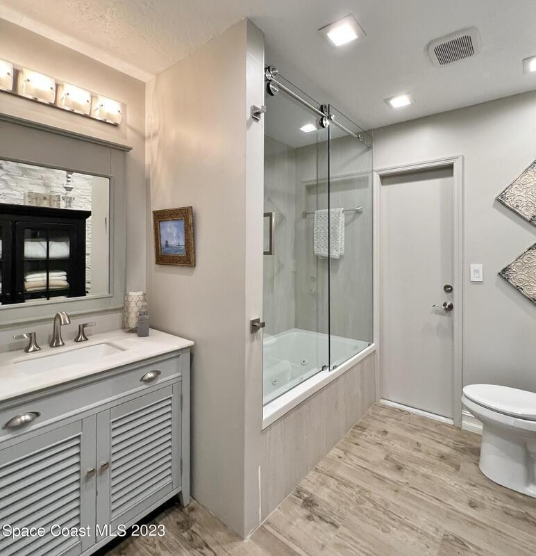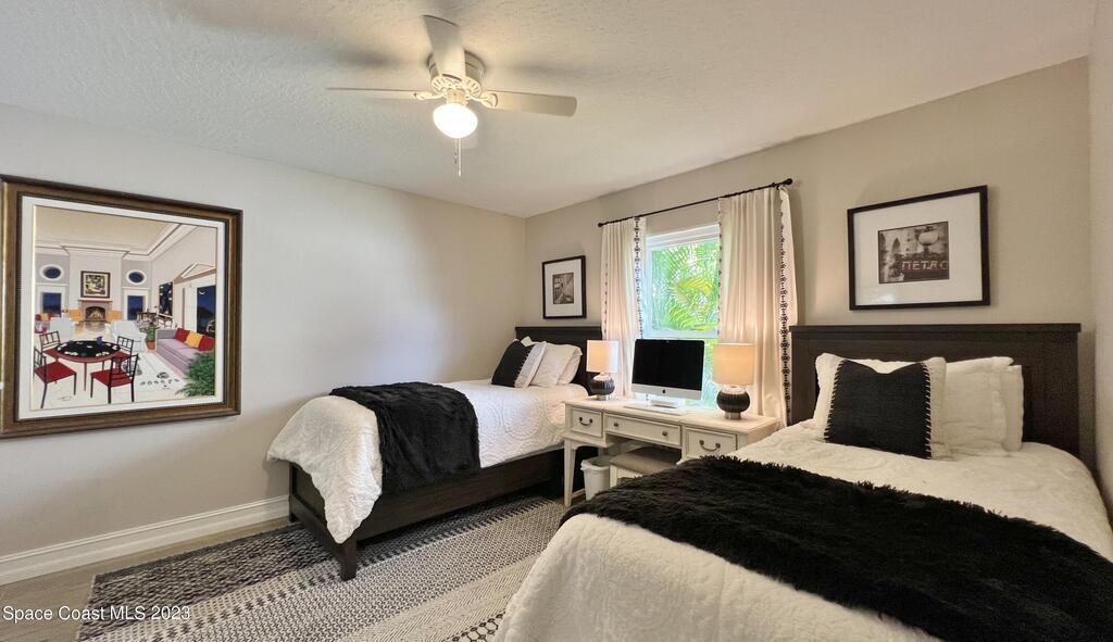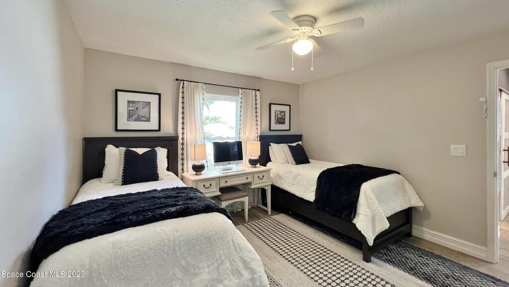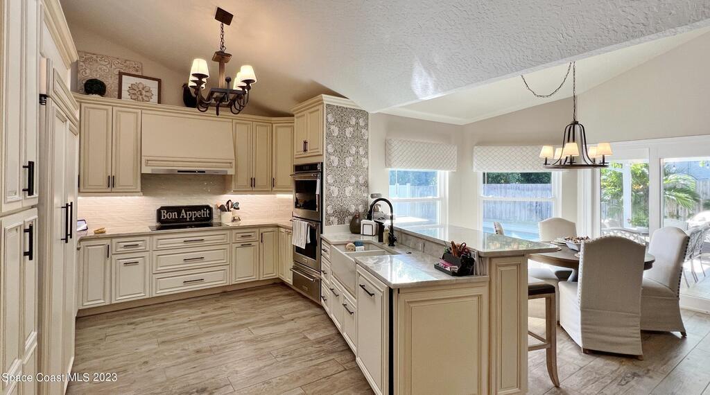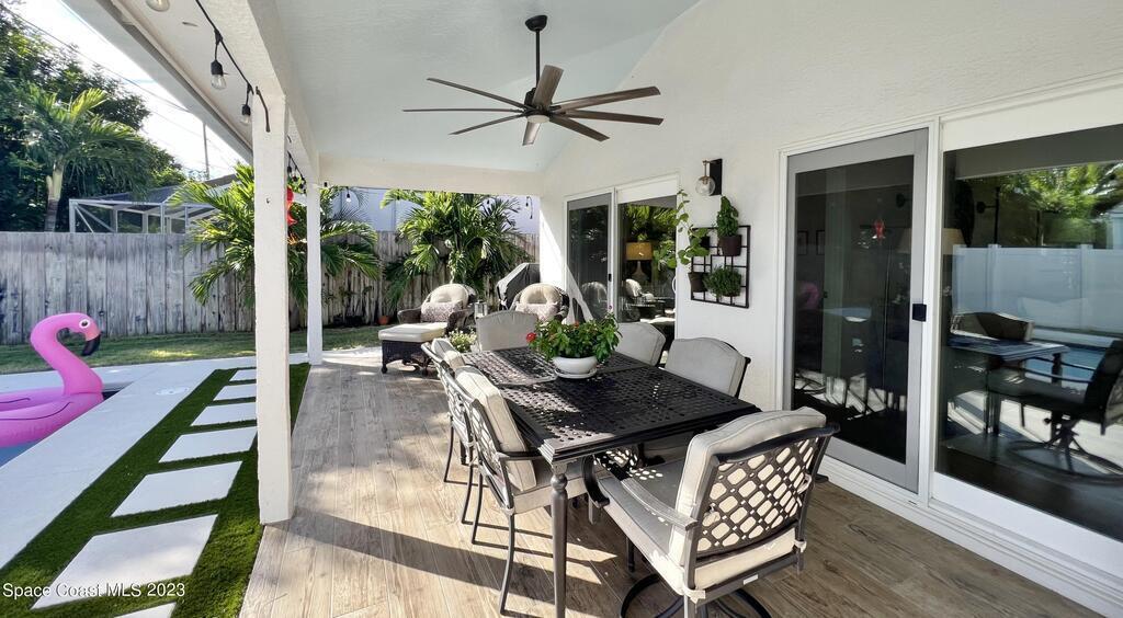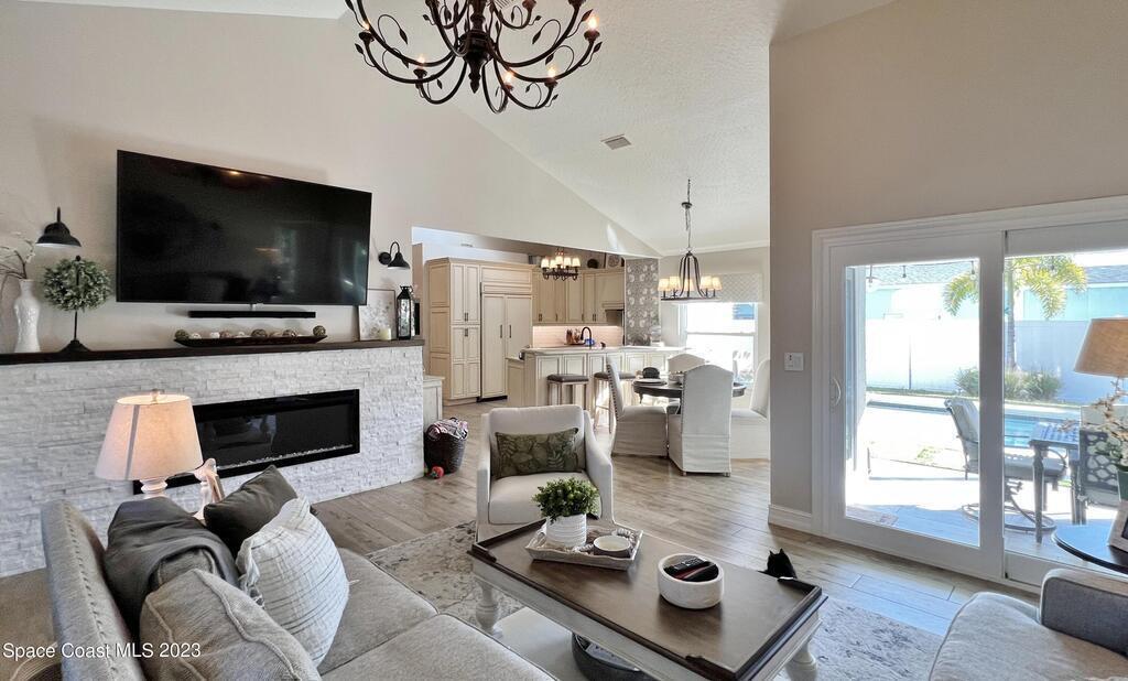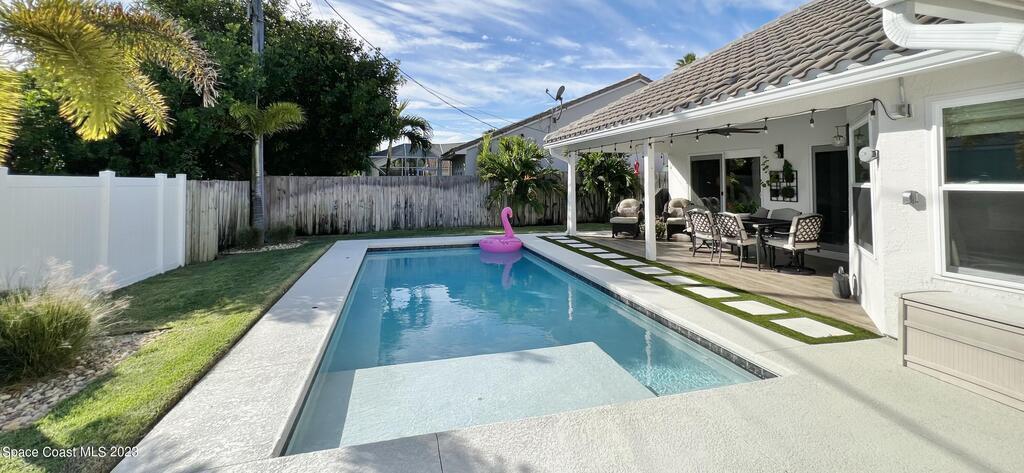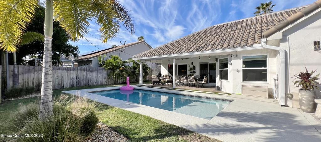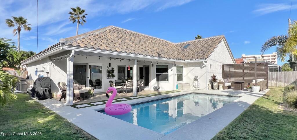Beautiful move in ready home with tons of upgrades and only half a block from the beach with access path right at the end of the street. This home is completely remodeled with 3 bedrooms, 2 baths and an office. Upgrades include new pool with fountains and heater/chiller 2021, impact windows and sliders 2021, new tile roof 2020, AC 2018, newer custom kitchen with subzero style frig, double oven with warmer, cooktop, built-in cabinet microwave and walk-in pantry. Also has an eat-in kitchen, breakfast bar and electric fireplace that doubles as a heater. Great entertainment spaces inside and out. Master has been updated with double sinks, large shower and his/hers walk in closets all with a view of the pool. All this on a quiet street and low HOA, don't miss out on this great deal!!