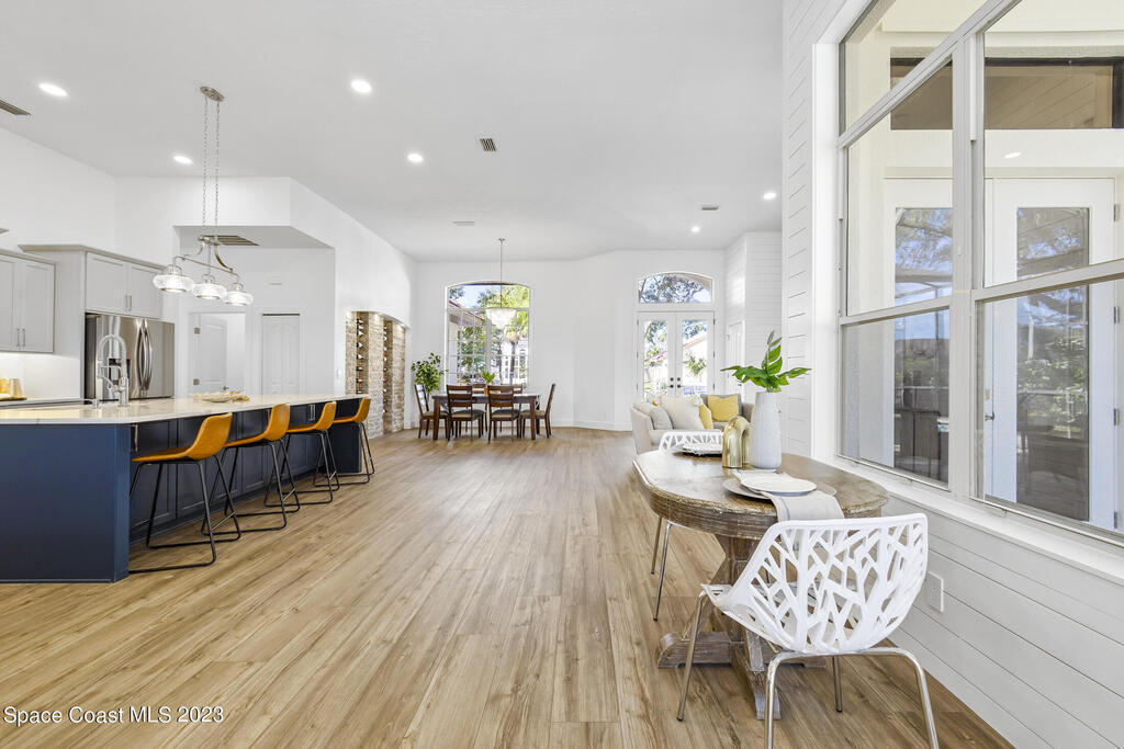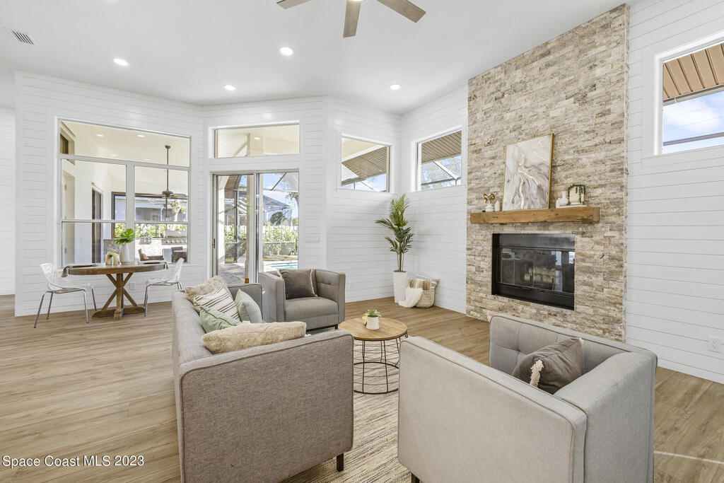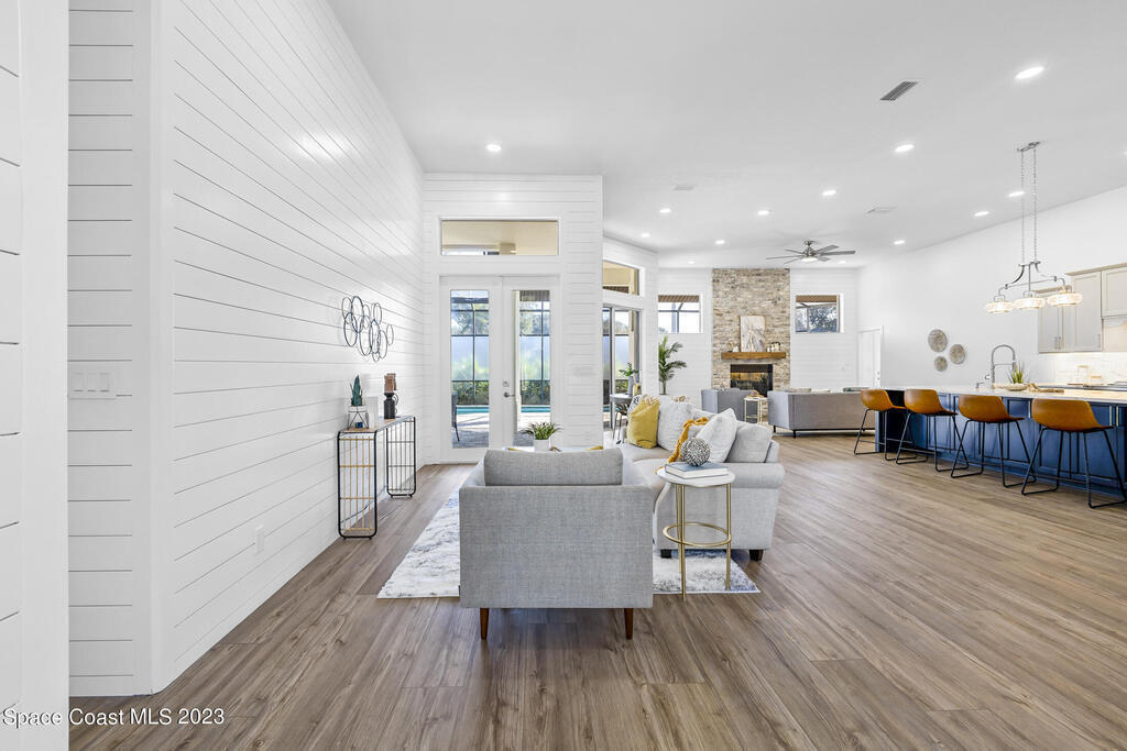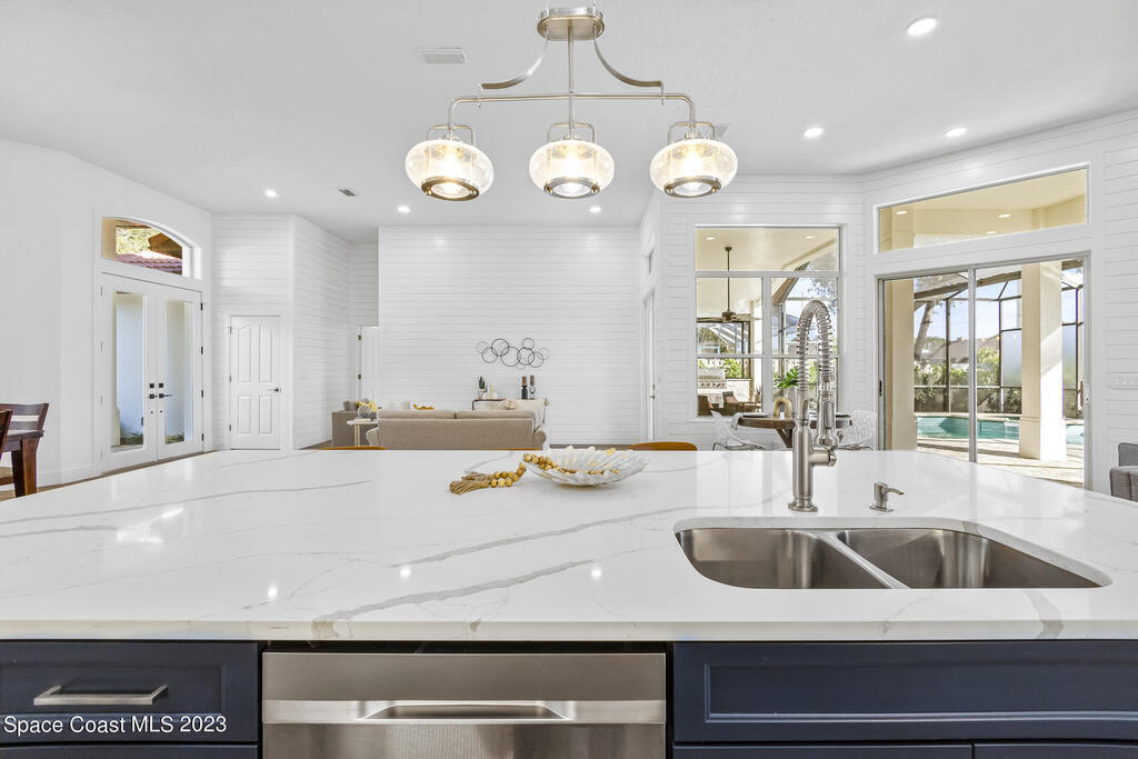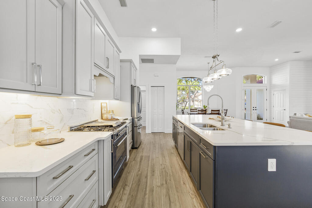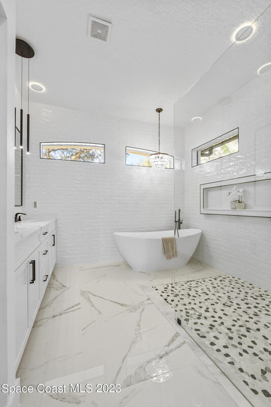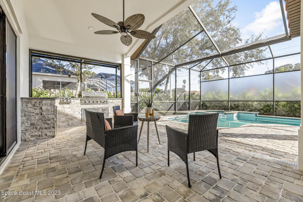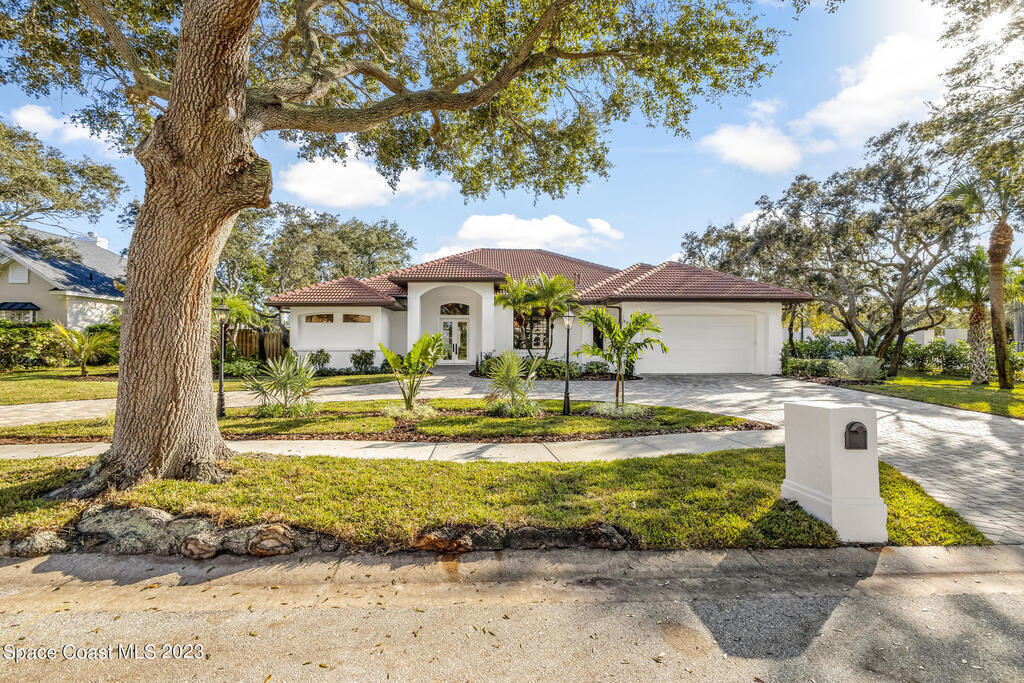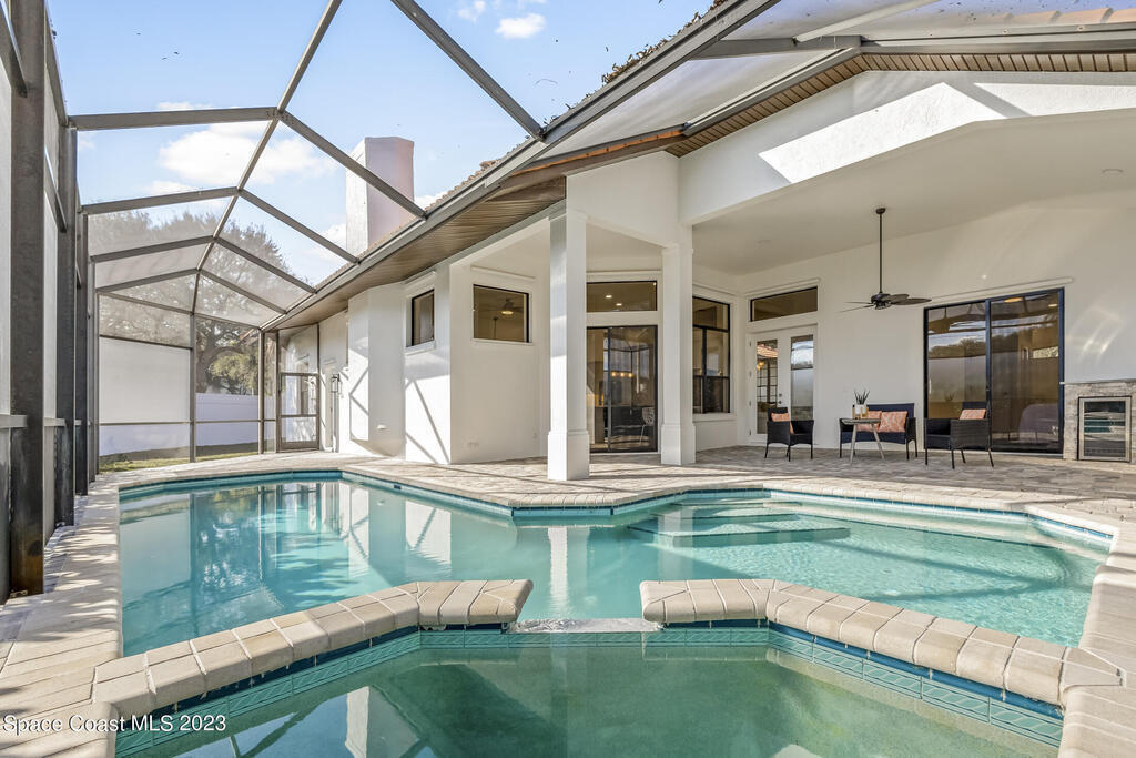 Welcome to this luxurious completely remolded 4 bedroom, 3 bath, pool home nestled in a highly sought after gated/ guarded community in Indialantic. Situated on a OVERSIZED CORNER LOT between the Atlantic Ocean and the Indian River, this residence offers a truly prestigious living experience. From the moment you walk through the double front doors of this elegant home, you are greeted with soaring ceilings throughout and bright open living space. Multiple large windows provide ample natural light from every room, while showcasing the sparkling salt water headed POOL/SPA w/waterfall. This home has the ideal layout w/ private guest suite. Upgrades include 2020 Tile roof, New HVAC, New garage Door, New flooring throughout, New kitchen w/ Quartz, Summer Kitchen, and so much more.