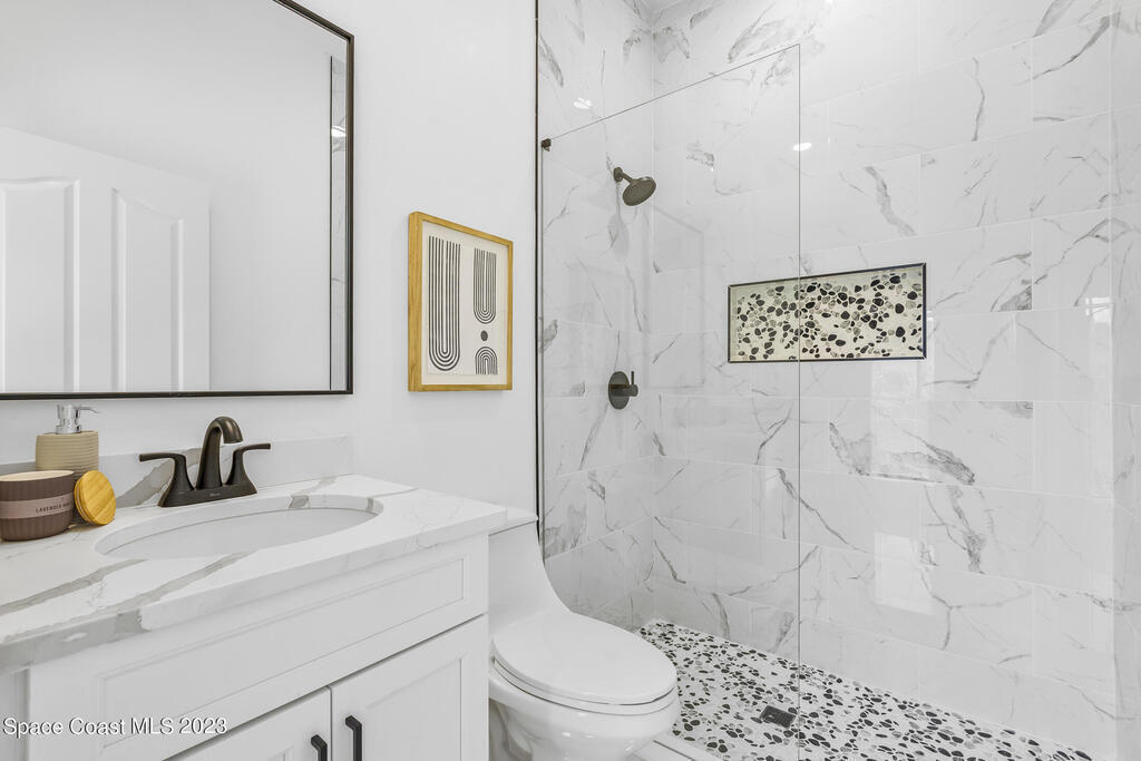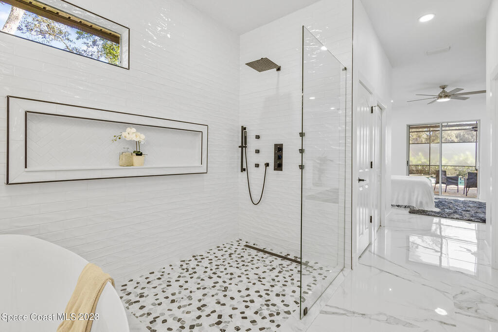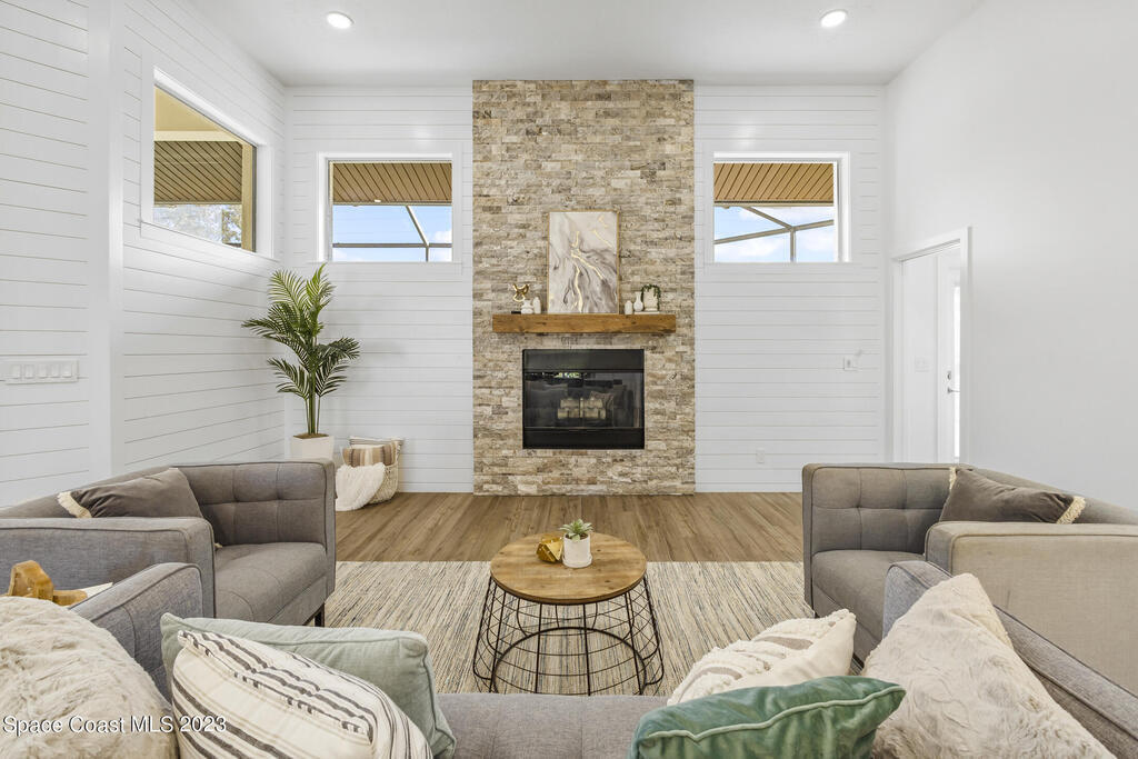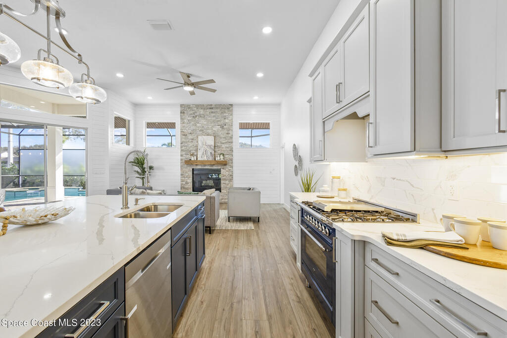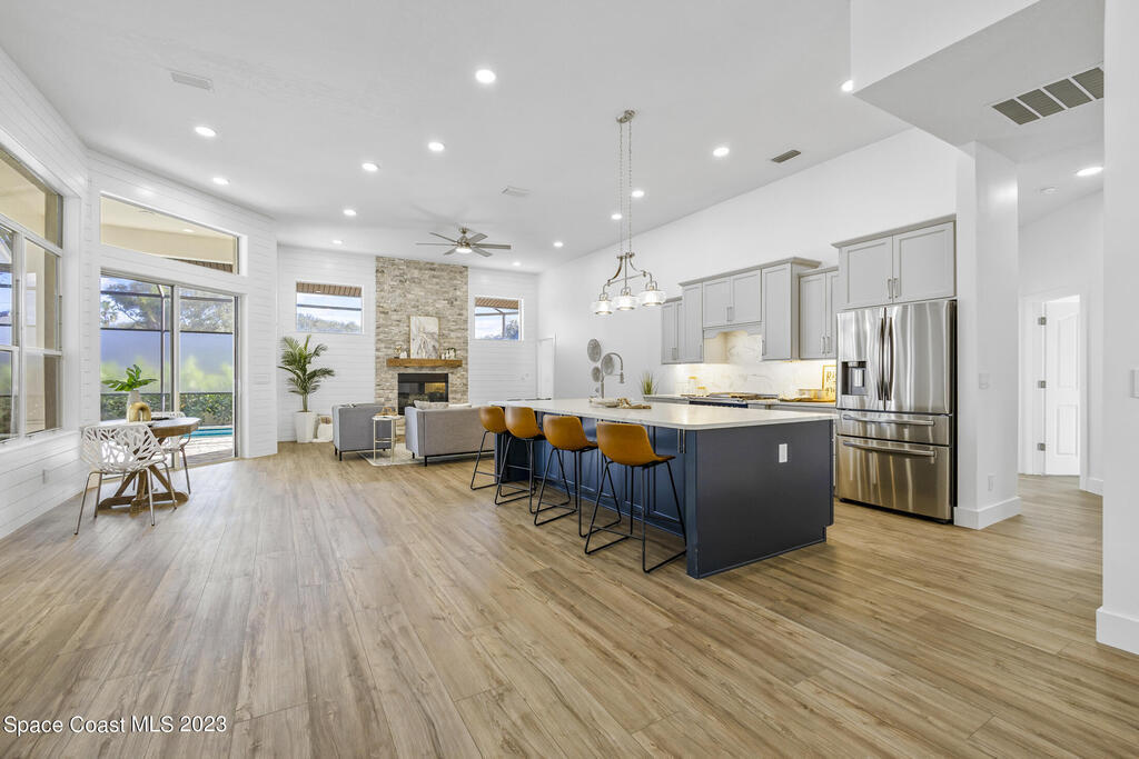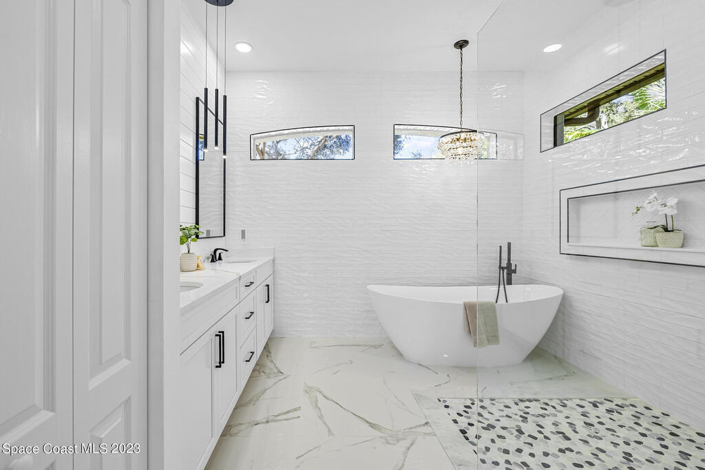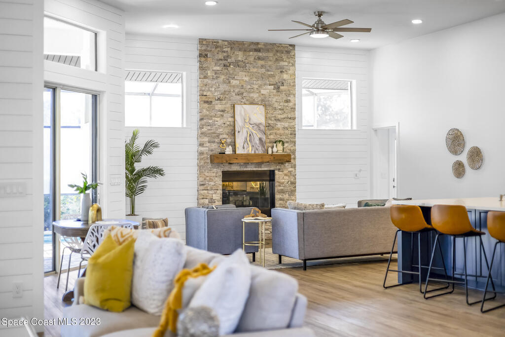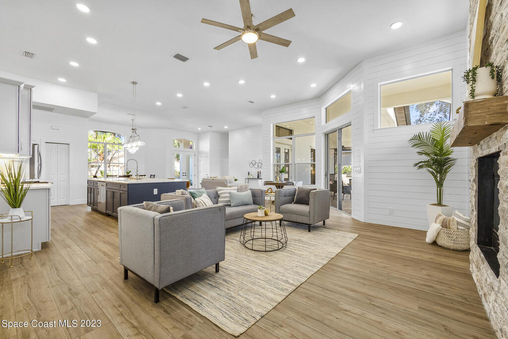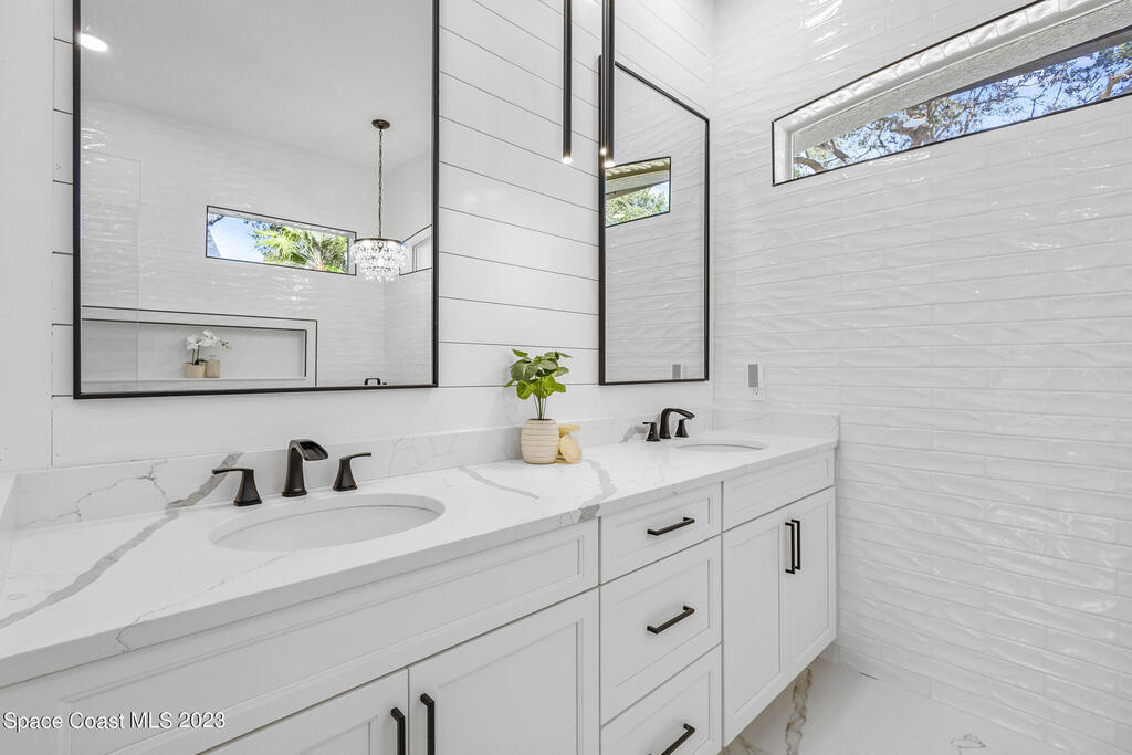 Welcome to this luxurious completely remolded 4 bedroom, 3 bath, pool home nestled in a highly sought after gated/ guarded community in Indialantic. Situated on a OVERSIZED CORNER LOT between the Atlantic Ocean and the Indian River, this residence offers a truly prestigious living experience. From the moment you walk through the double front doors of this elegant home, you are greeted with soaring ceilings throughout and bright open living space. Multiple large windows provide ample natural light from every room, while showcasing the sparkling salt water headed POOL/SPA w/waterfall. This home has the ideal layout w/ private guest suite. Upgrades include 2020 Tile roof, New HVAC, New garage Door, New flooring throughout, New kitchen w/ Quartz, Summer Kitchen, and so much more.