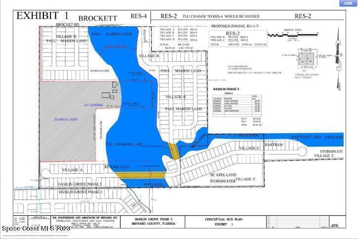 3.78 Acres of property tied into a 197 lot approved subdivision comprised of 74.39 acres of land. Available in the highly desired city of Mims. Soft engineering completed. Binding development completed. Access from two different roads, Old Dixie hwy & Brockett Rd. Proposed subdivision contiguous property to the south consisting of 144 acres.