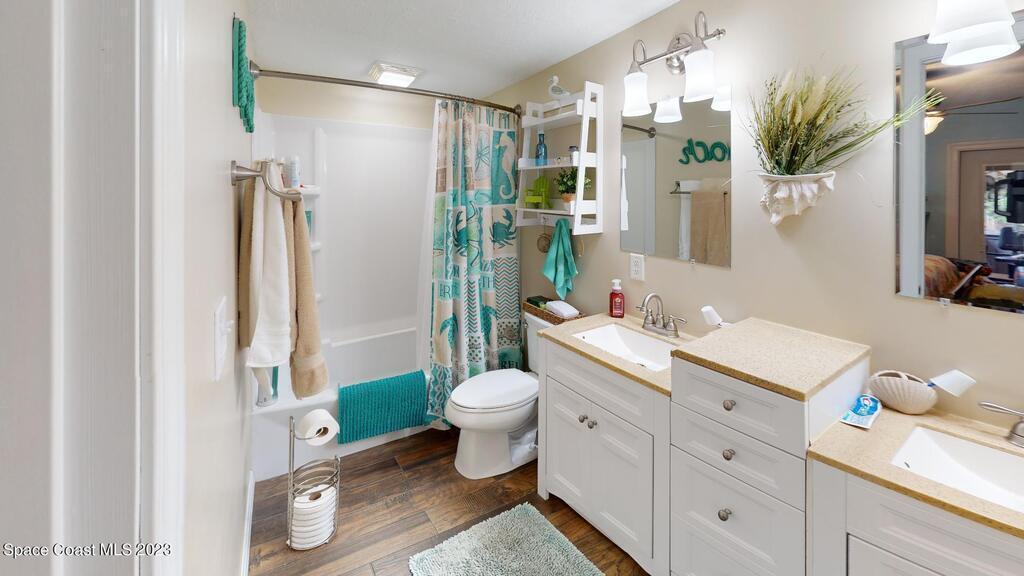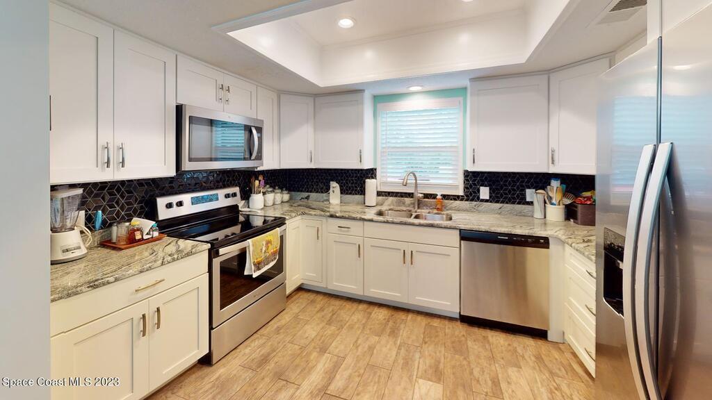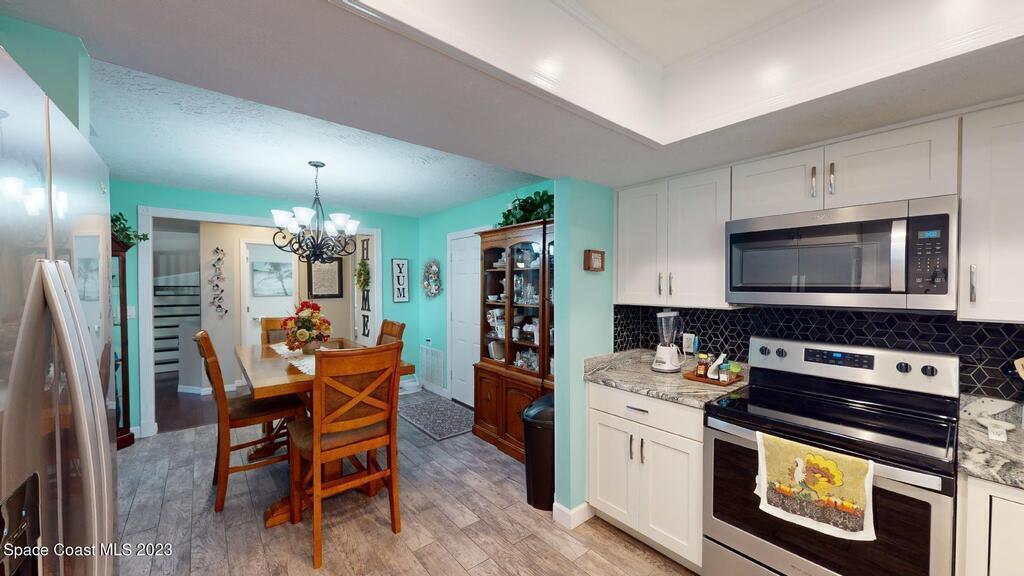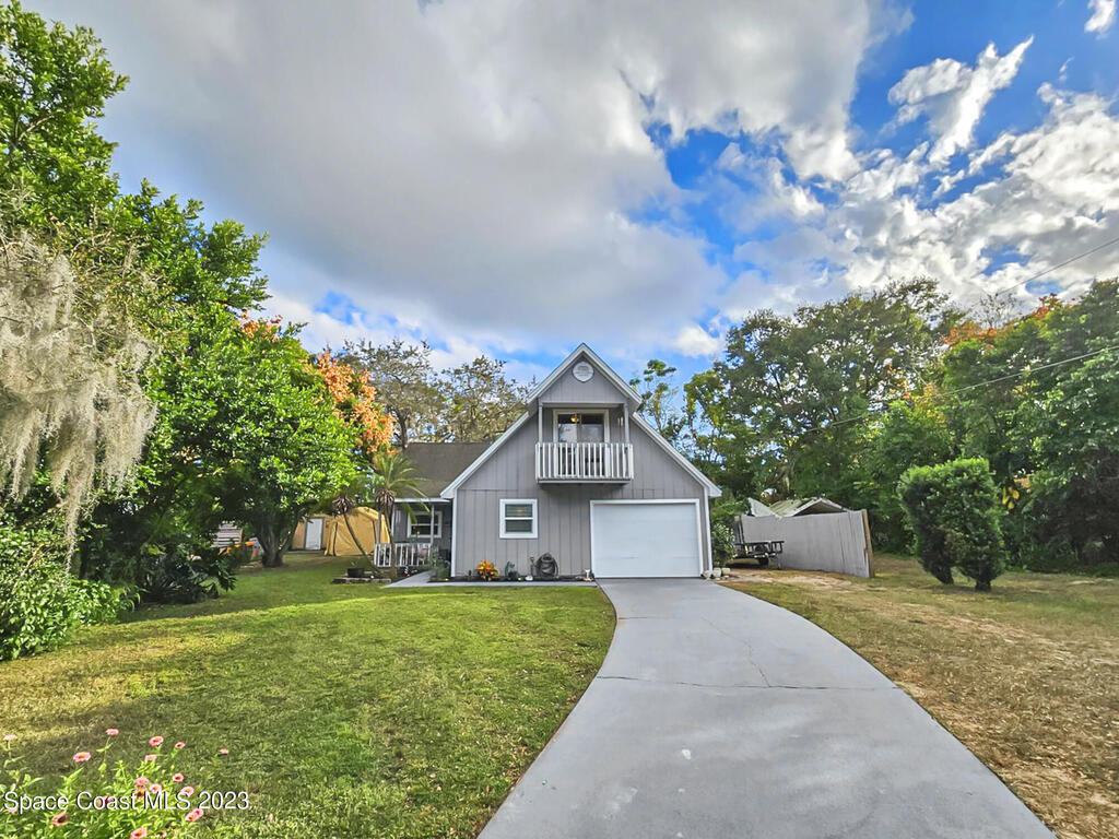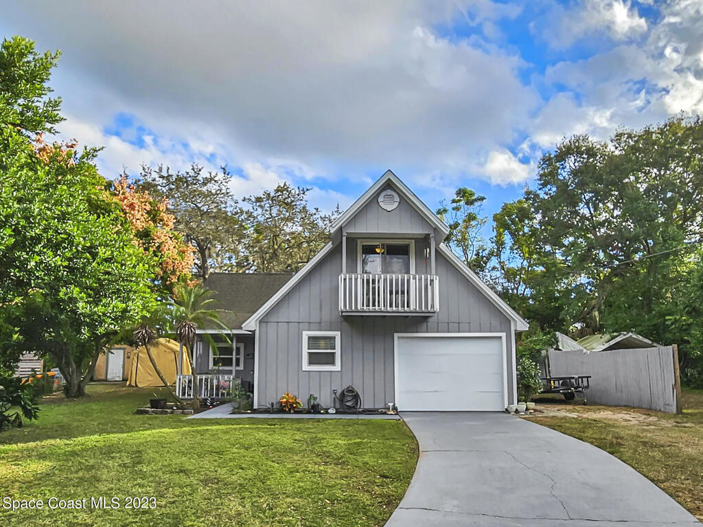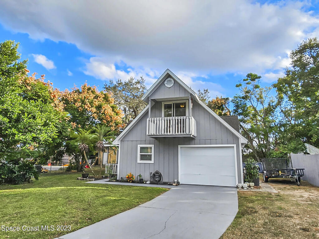 Look no further this is the one! Absolutely stunning A frame completely remodeled, pride in homeownership at it's finest! Located on a quiet cul de sac centrally located in the heart of Titusville! This beautiful 4 bedroom 2 and half bath home has a gorgeous kitchen with granite countertops. Primary bedroom is located downstairs with spacious his and hers closets, beautiful bathroom complete with double vanity, and plenty of storage. Access your charming back porch through french doors! Living room and dining room flow perfectly together, excellent for entertaining. Upstairs boasts 3 spacious bedrooms, bedroom at the far end of the house could double as an additional master, it's huge! New roof to be installed prior to closing with approved offer!!