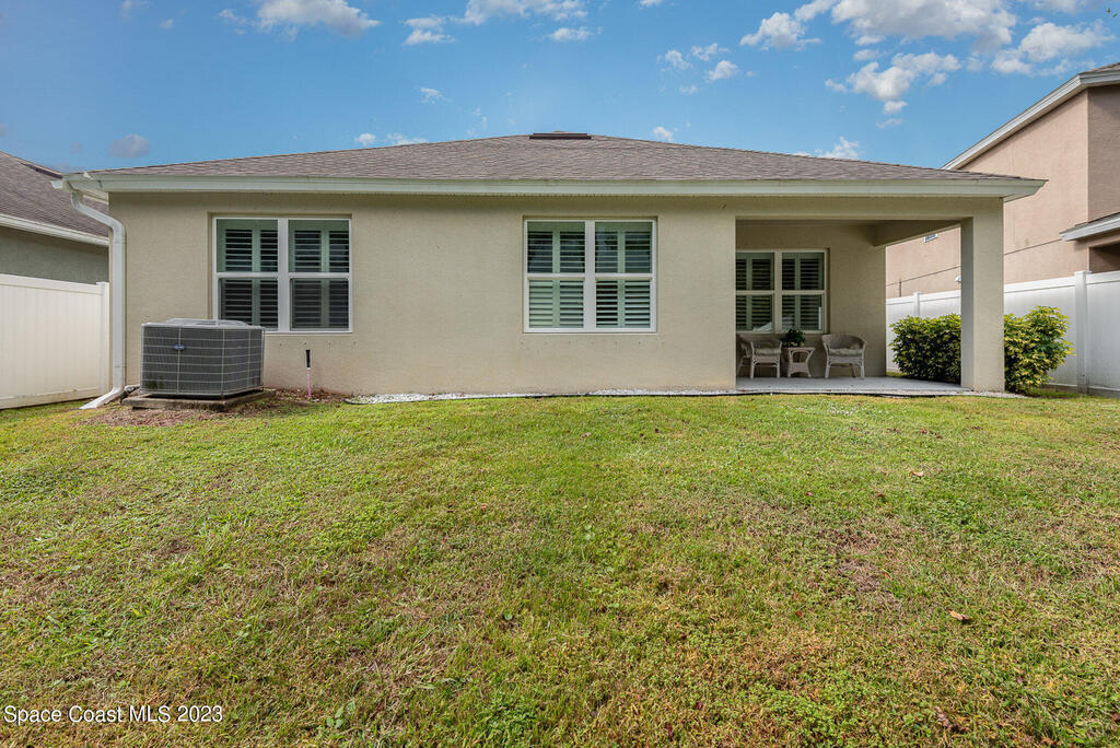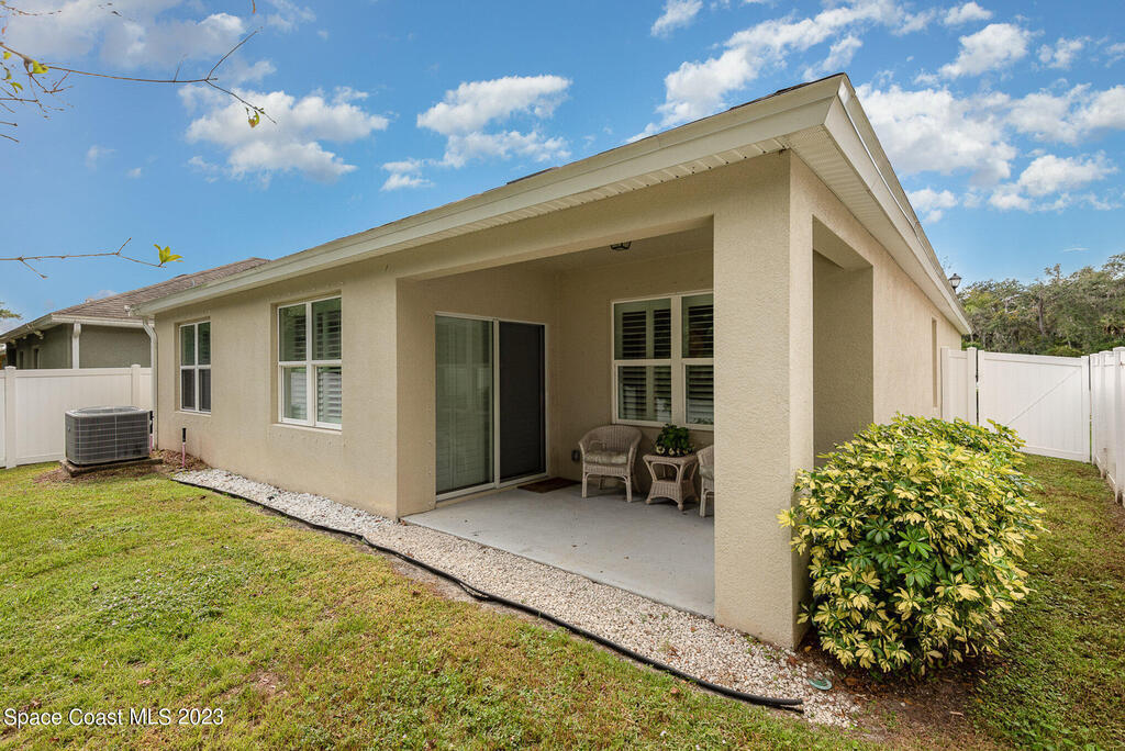 This is a perfectly move in ready home in the lovely golf community of Indian River Preserve. It has been lovingly cared for by these original owners who upgraded the living area flooring with beautiful wood laminate, privacy white fencing and plantation shutters. The home comes with all of the benefits of newer construction since it was only built in 2018! Come see this gorgeous home soon! You won't regret it!